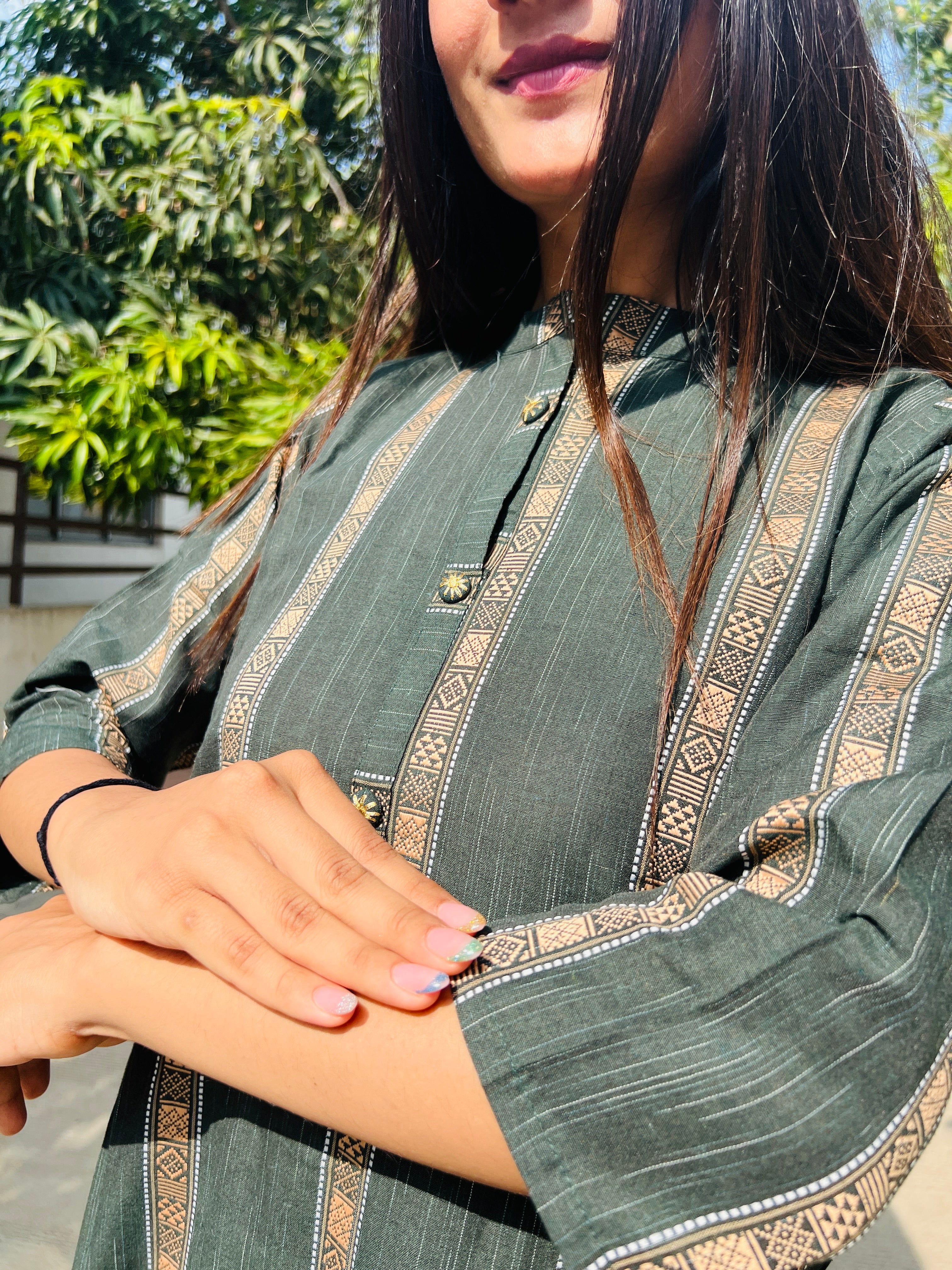 Mahendi Green Geometric Print Straight Cotton Kurta, Palazzo