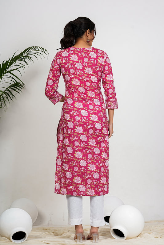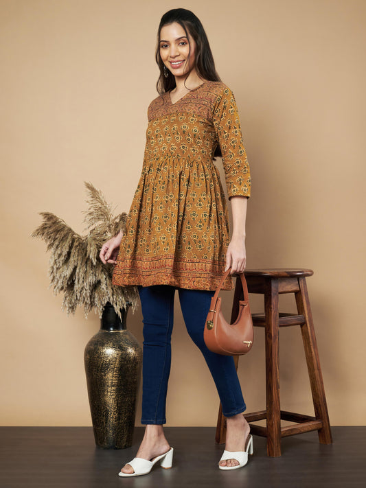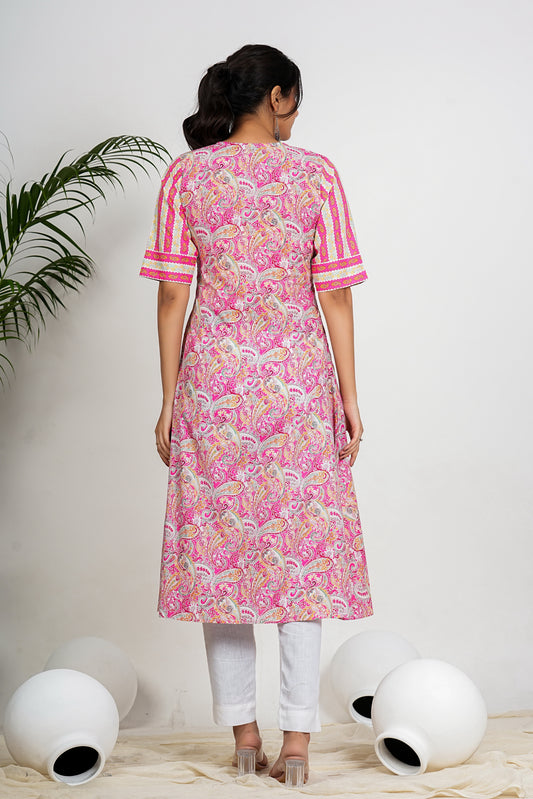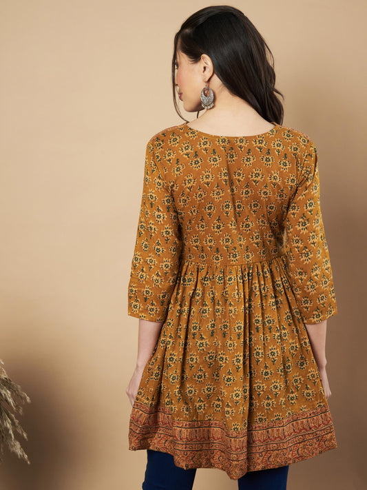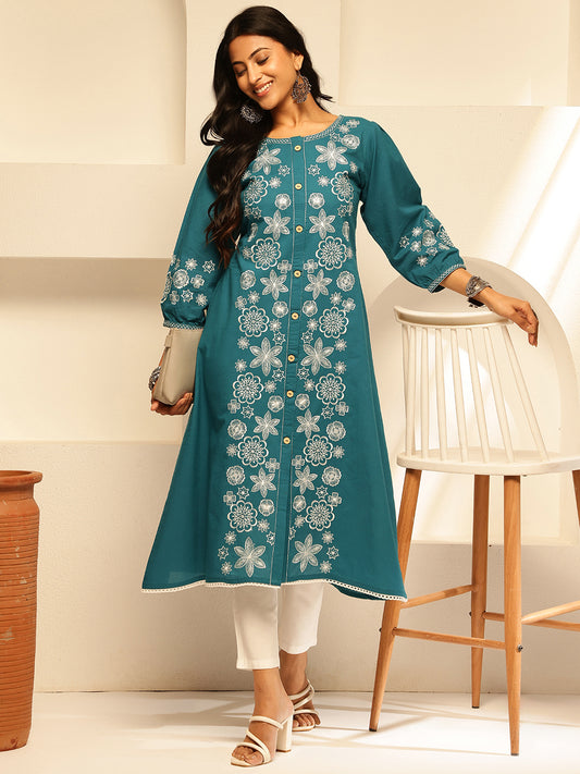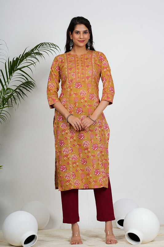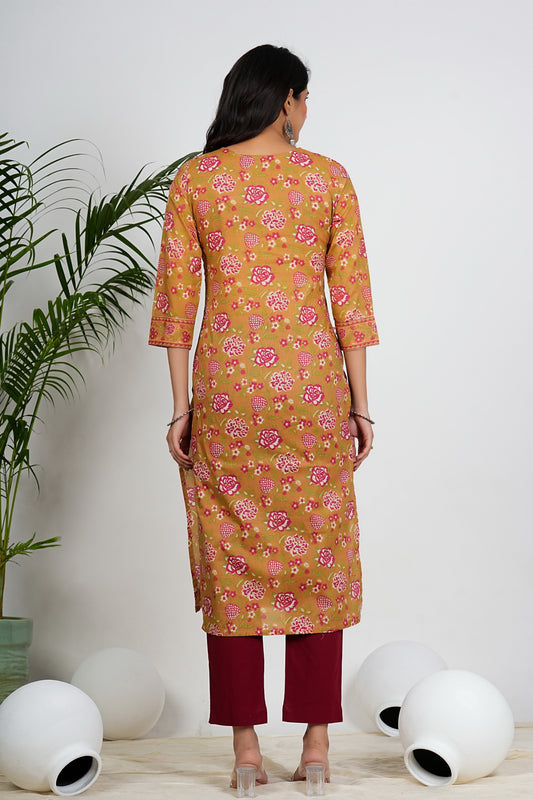 Mehndi Green Geometric Printed Straight Cotton Kurta