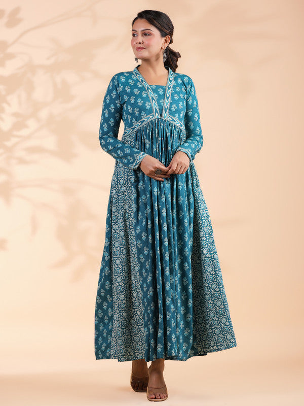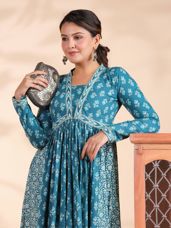 VBUYZ Aqua Blue Alia Cut Cotton Anarkali Dress For Woman | Long Dress | Gown | Ethnics | Full Sleeve Dress