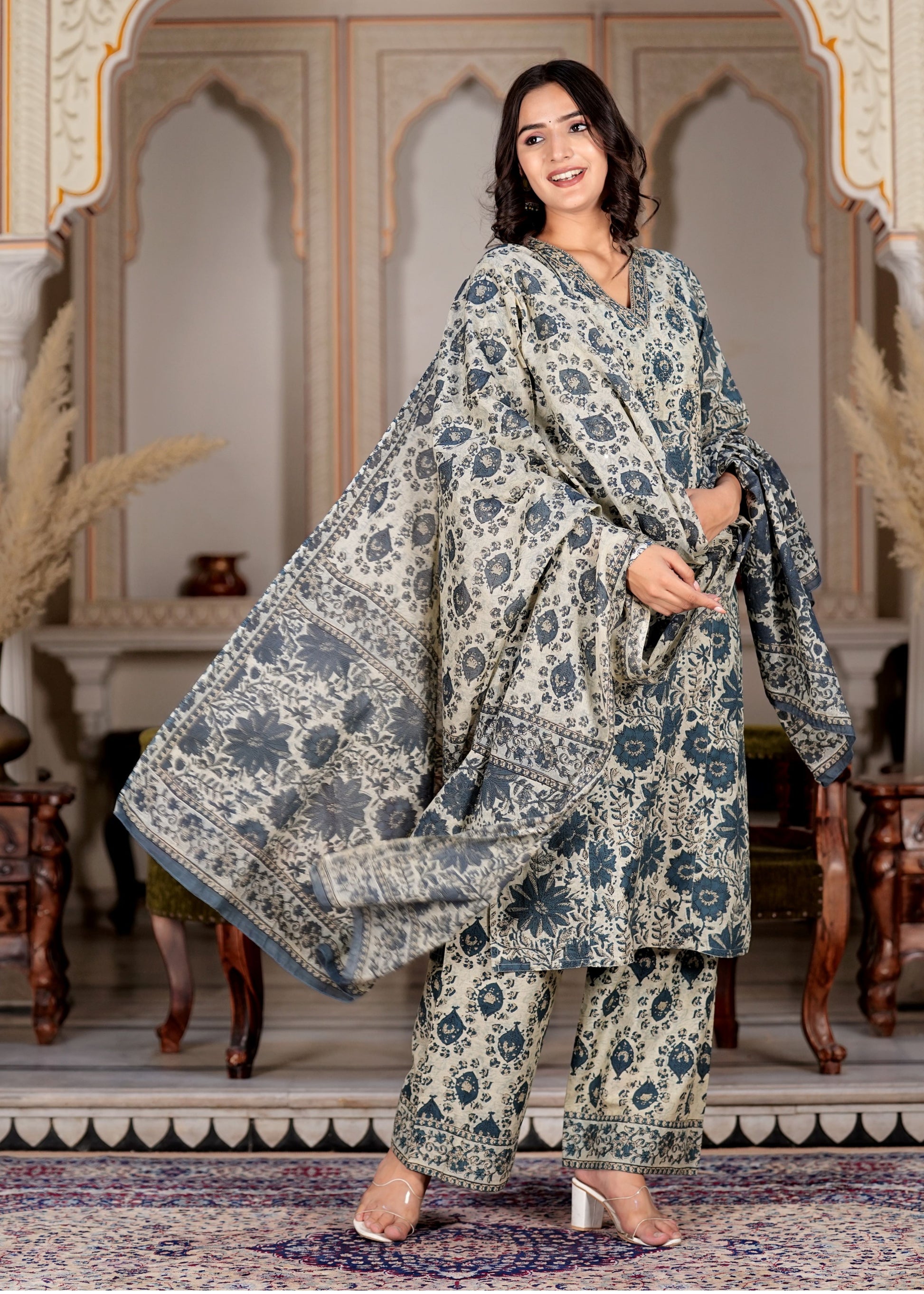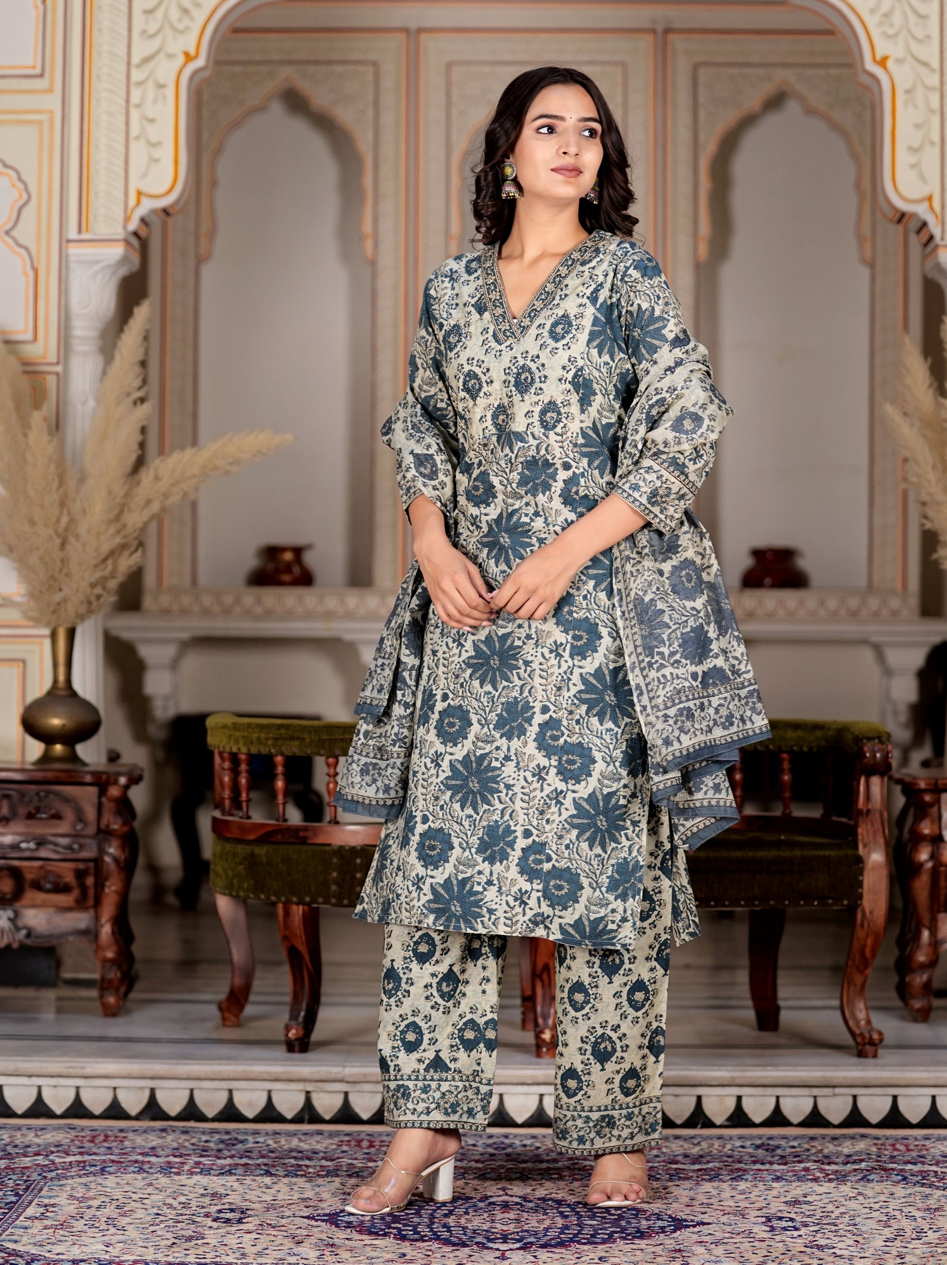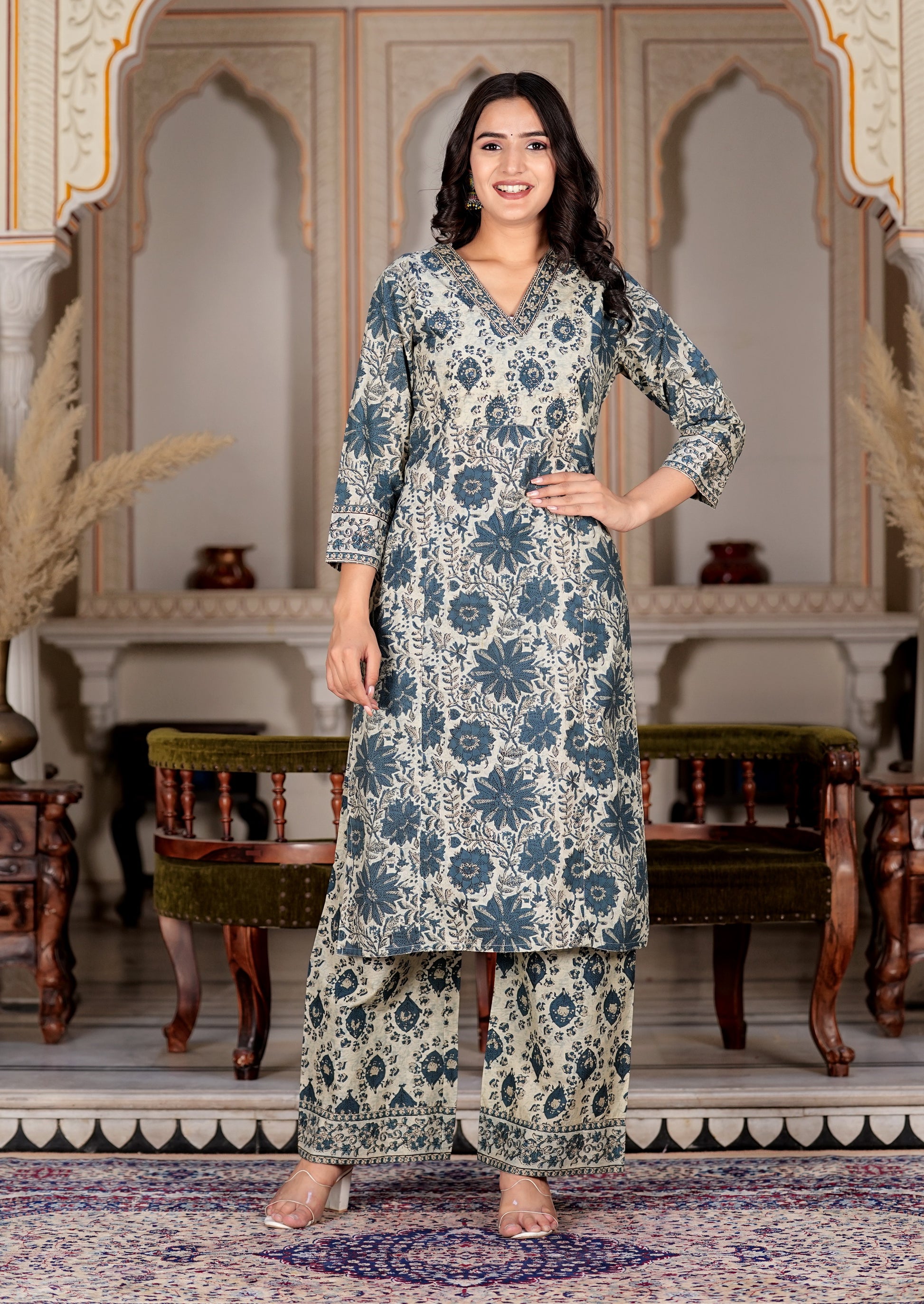 Unleash your playful side with our Aqua Floral Printed Straight Cotton Kurta Set! Made with soft cotton, this set features a unique aqua floral print that is sure to turn heads. This set will keep you comfortable and stylish for any occasion all day. Don't miss out on this quirky and fun addition to your wardrobe!