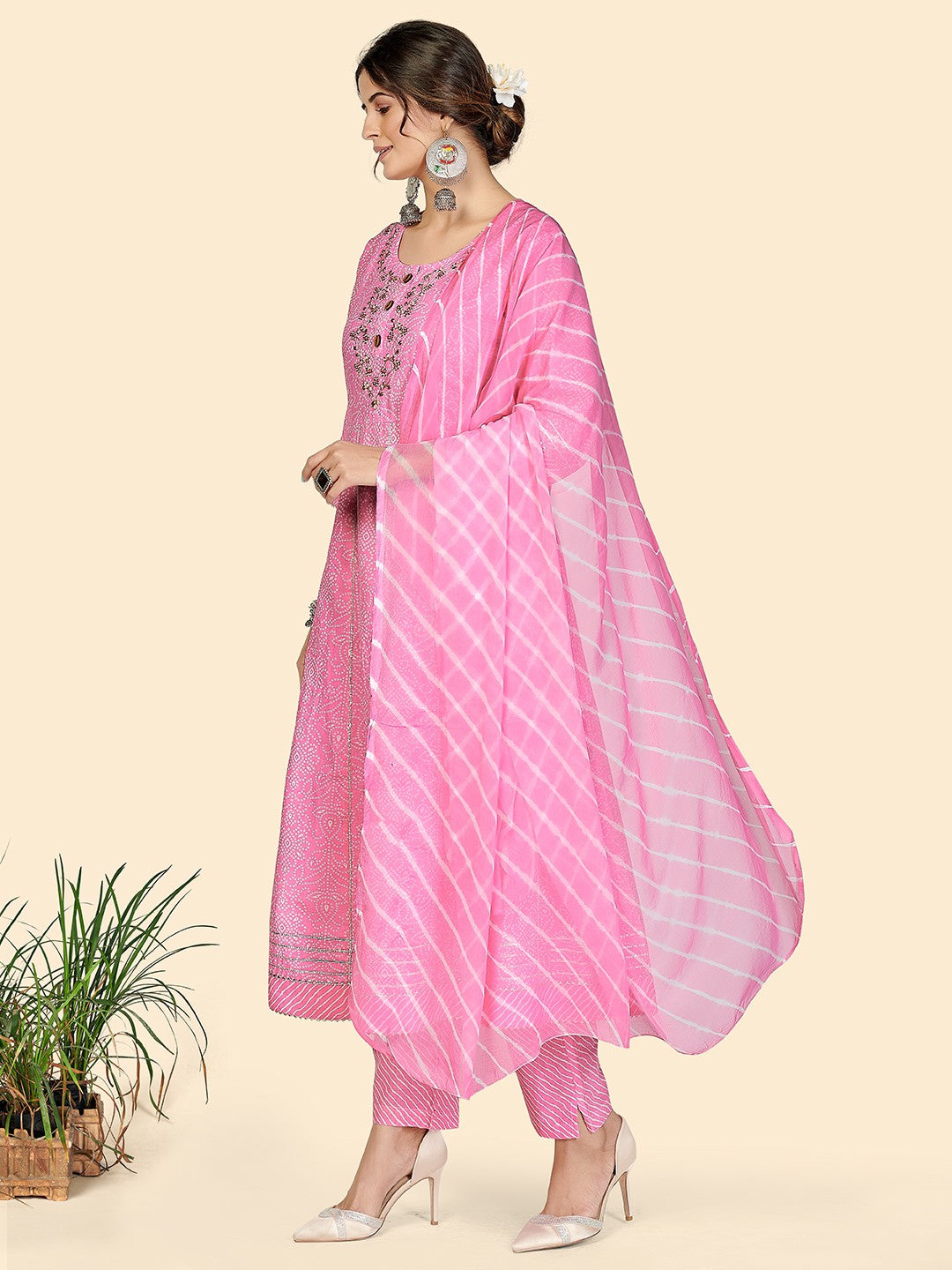 Baby Pink Embroidered Anarkali Cotton Kurta Set