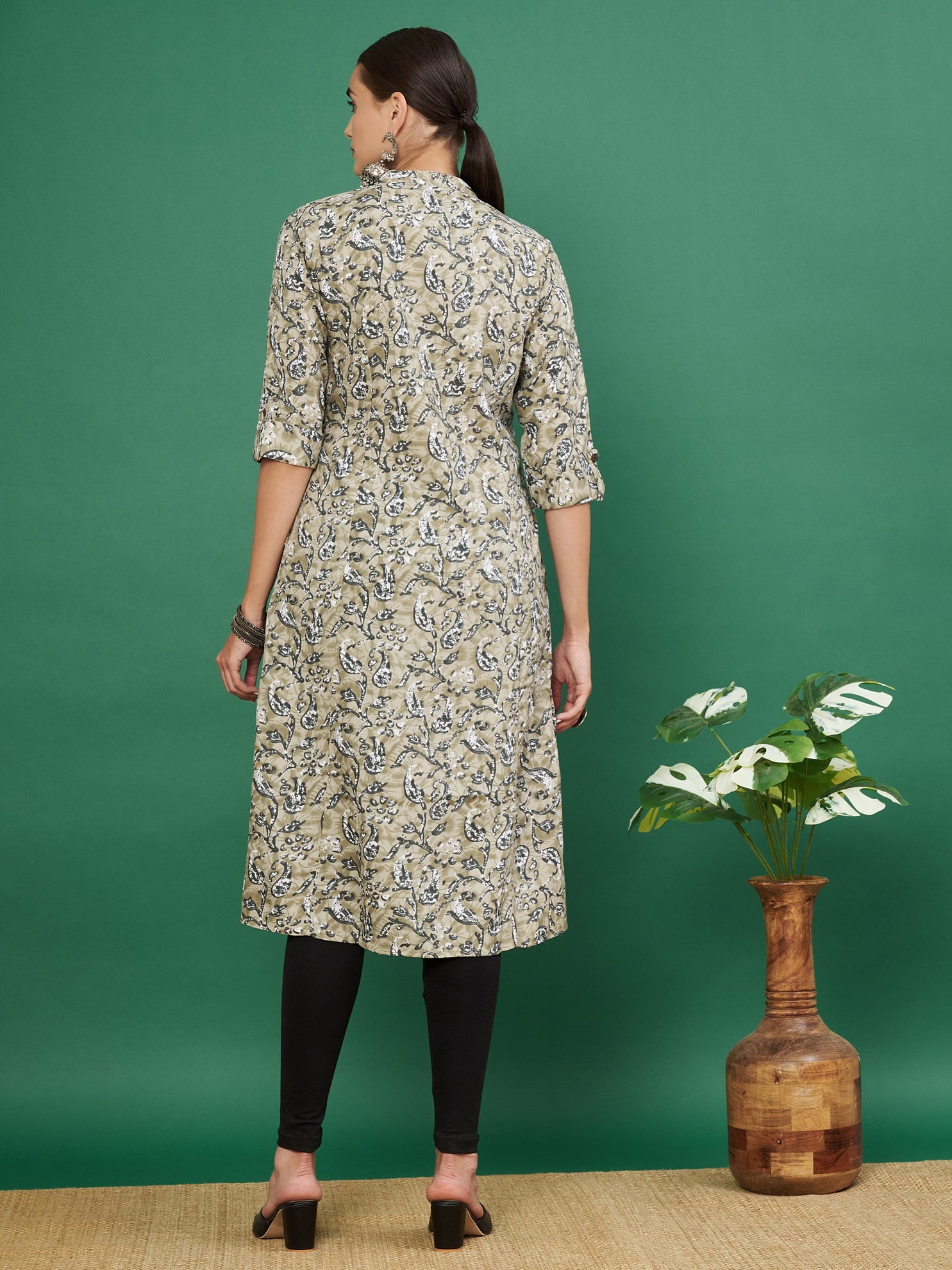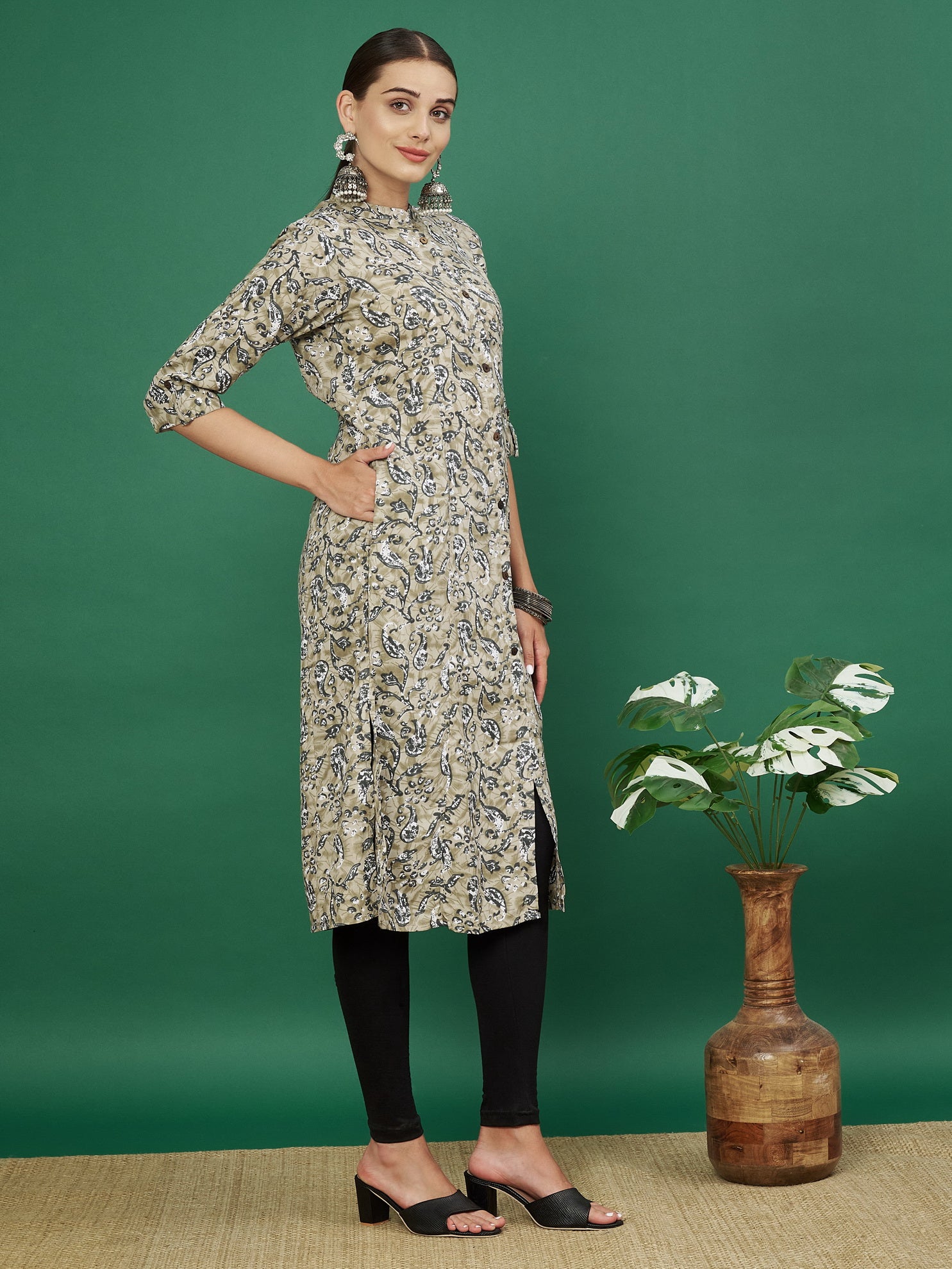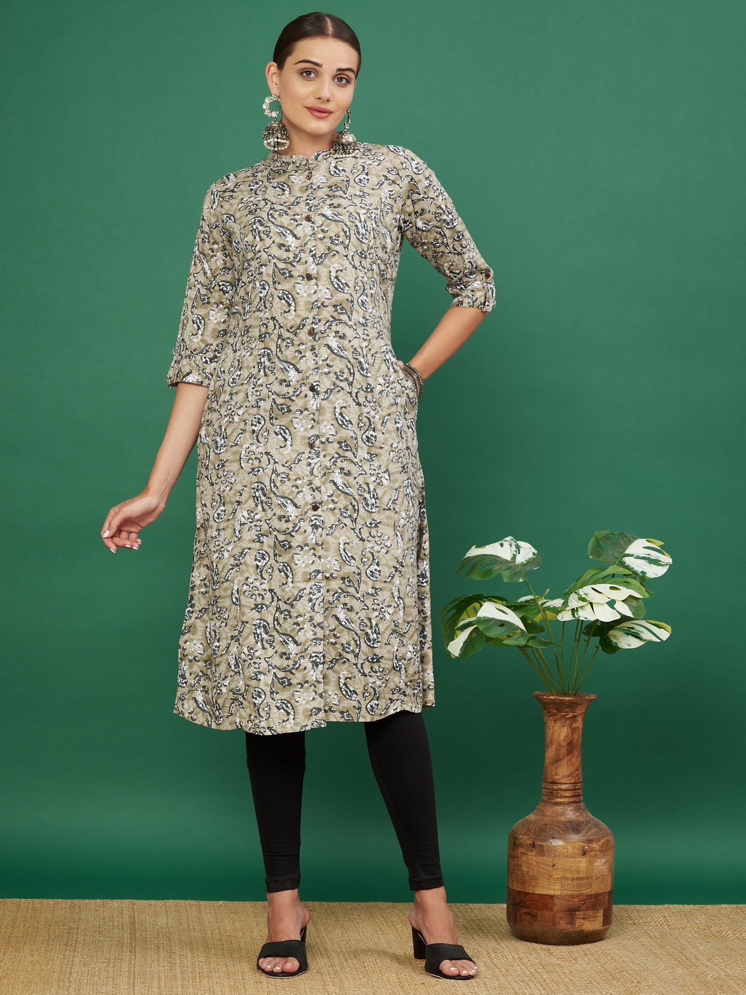 Introducing our playful and quirky Beige Rayon Kalamkari printed Kurta! With its unique kalamkari print and soft rayon fabric, you'll stand out in style and comfort. Perfect for any occasion and a must-have for any fashionista's wardrobe!