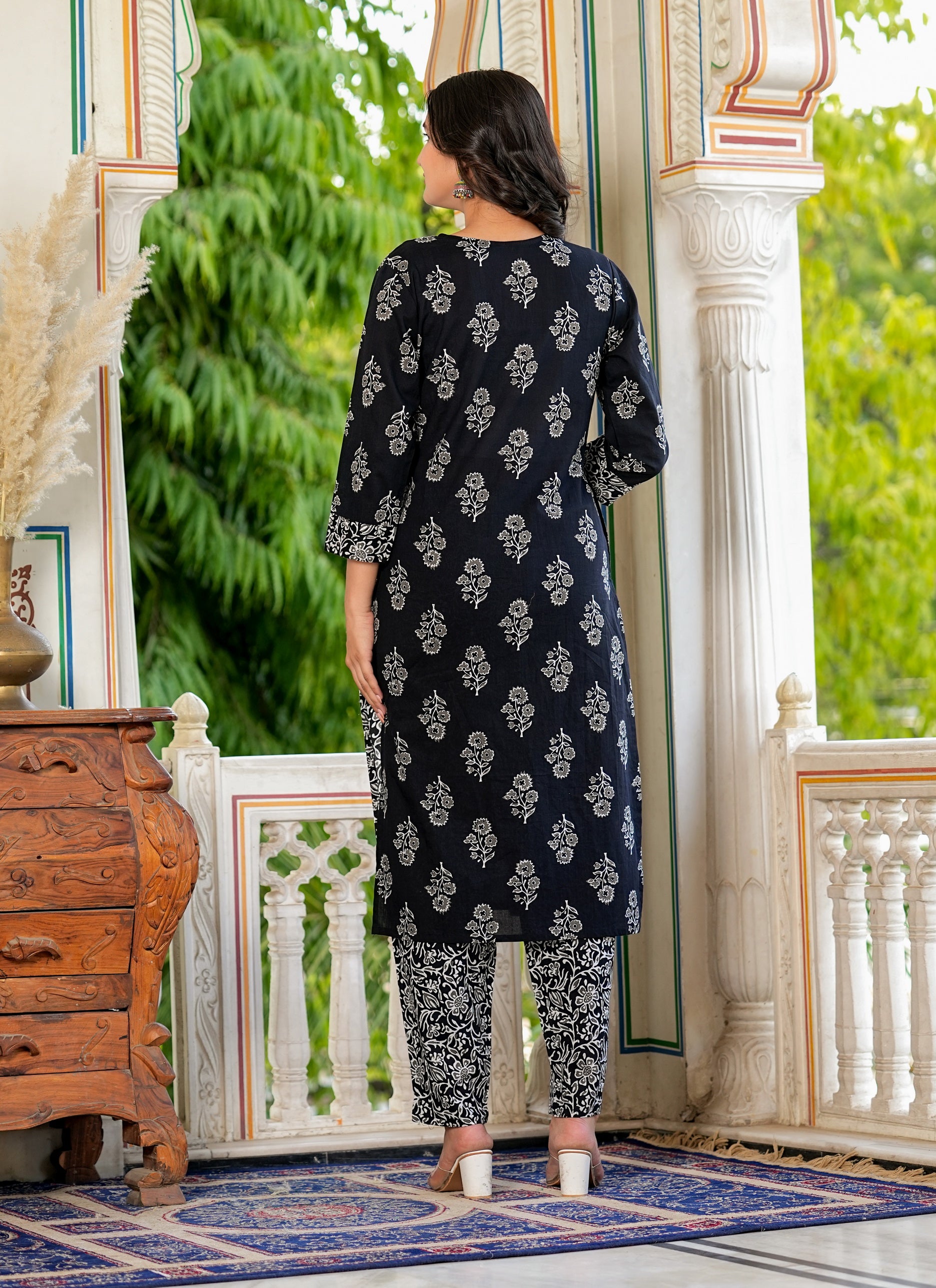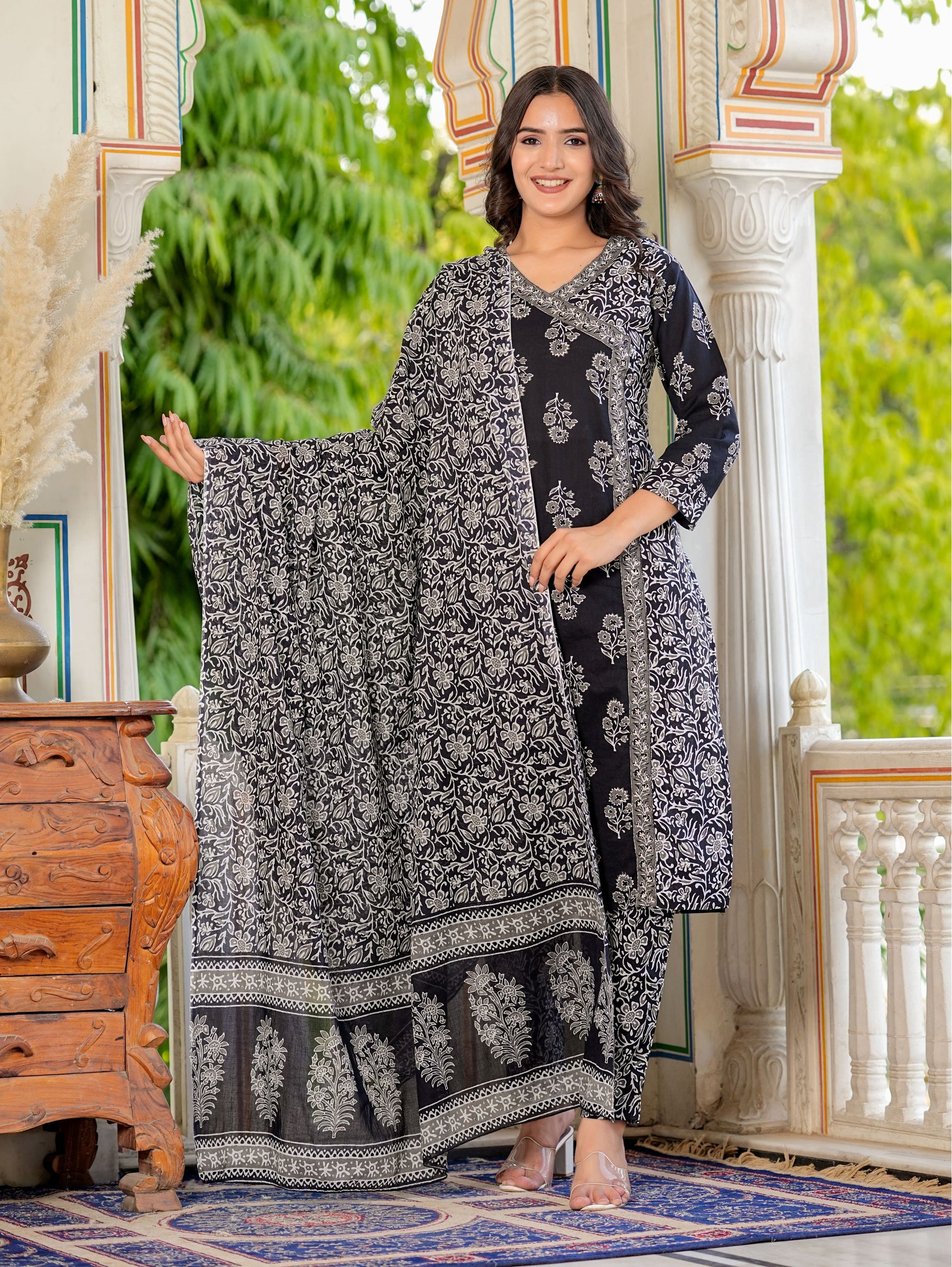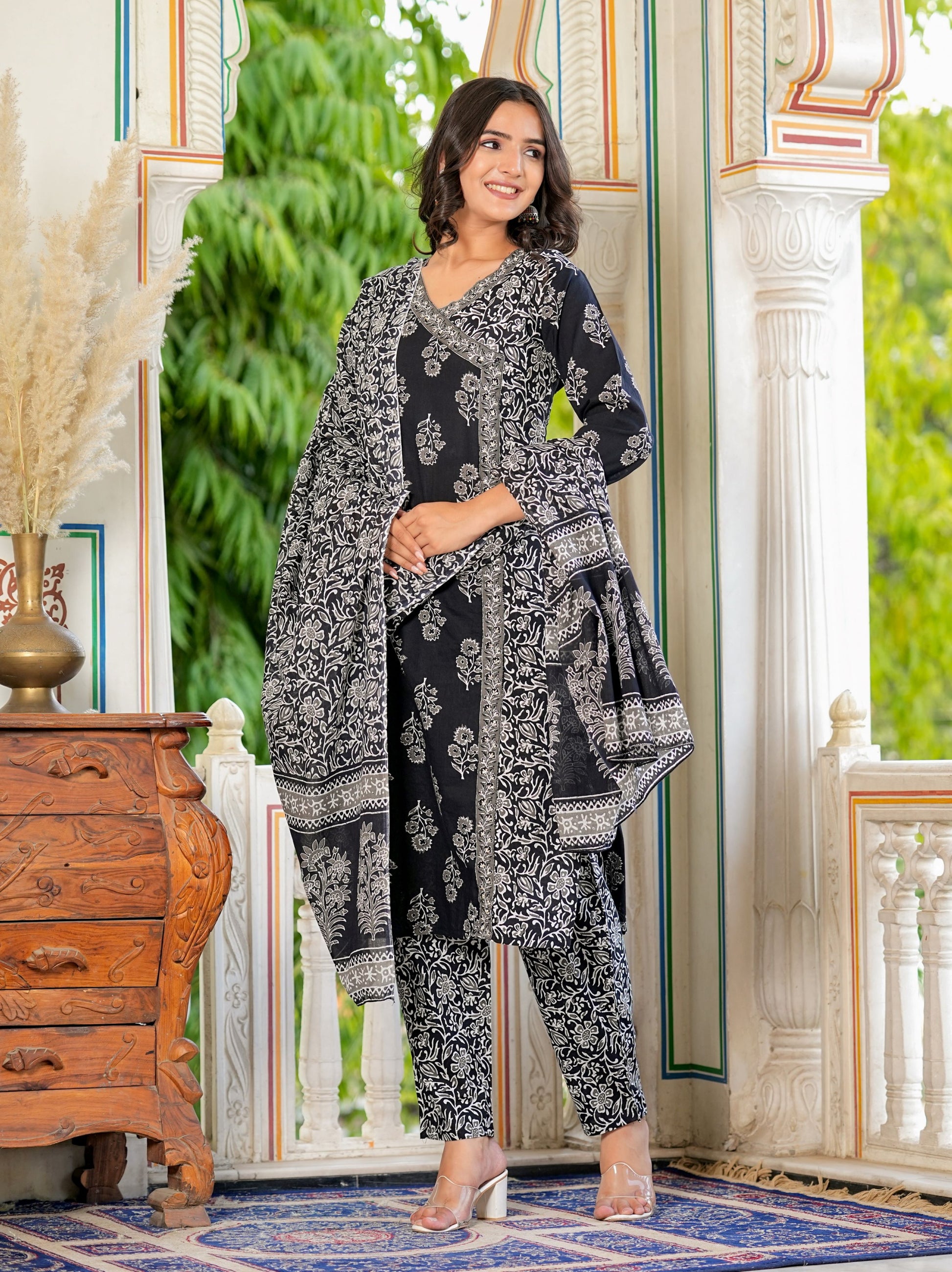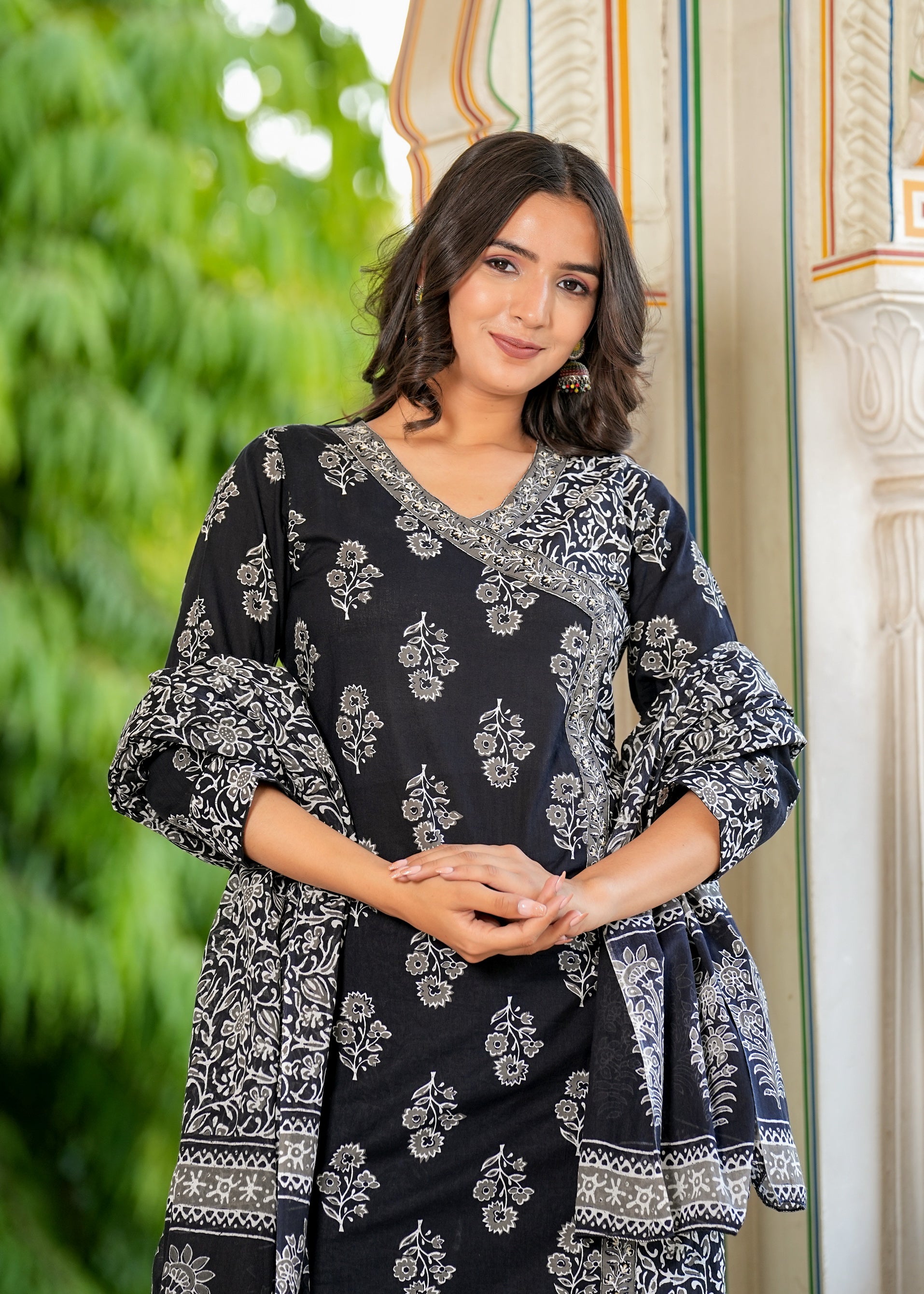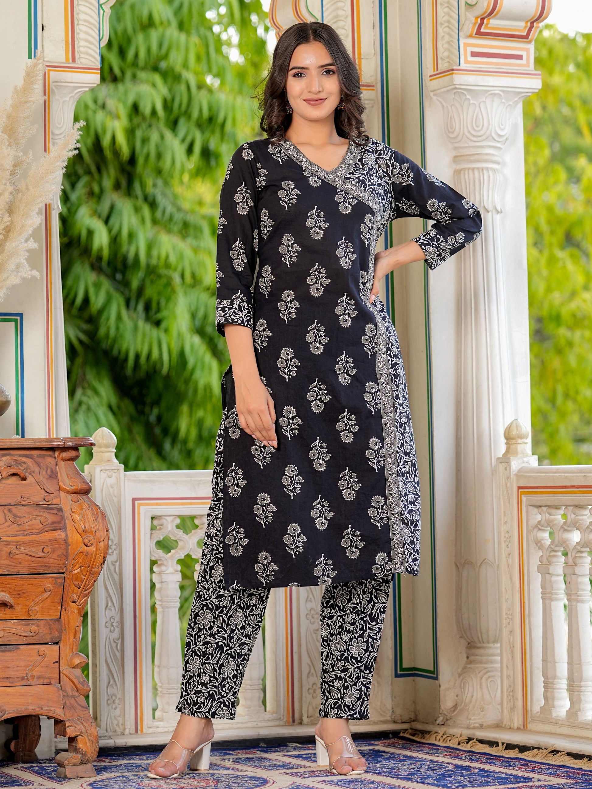 Get ready to turn heads with our Black Angrakha Straight Cotton Kurta Set! This unique and playful set features a black kurta with angrakha design, giving it a modern twist. Made with soft and comfortable cotton, it's perfect for any occasion. Dress it up or down for a look that's effortlessly chic.