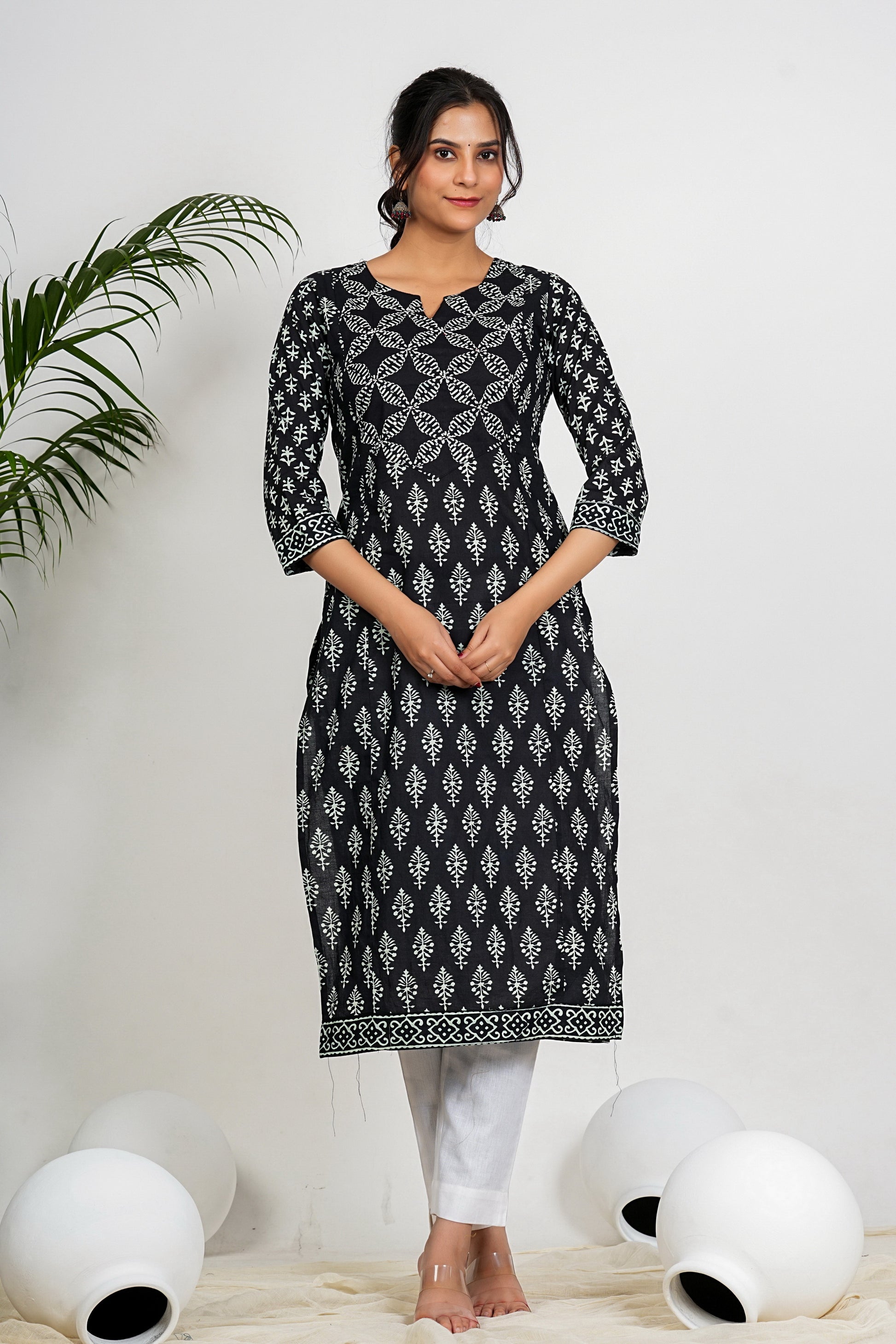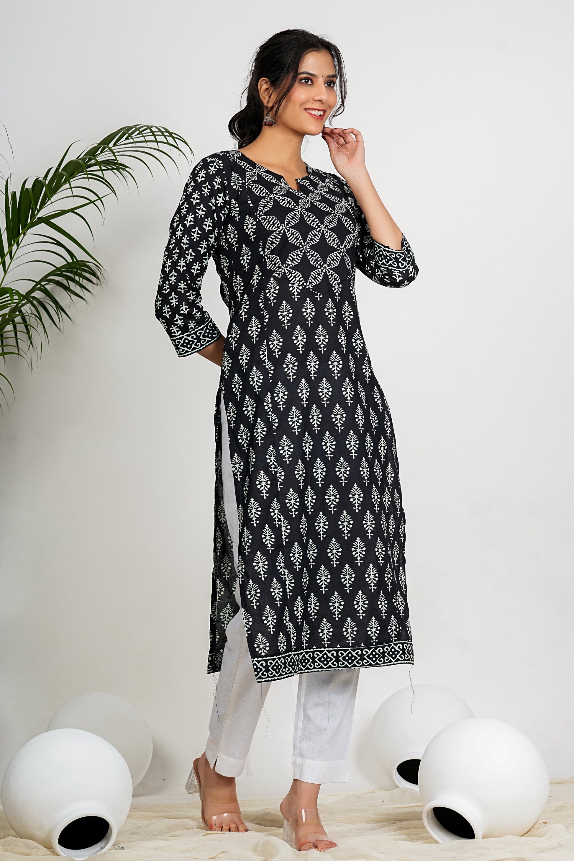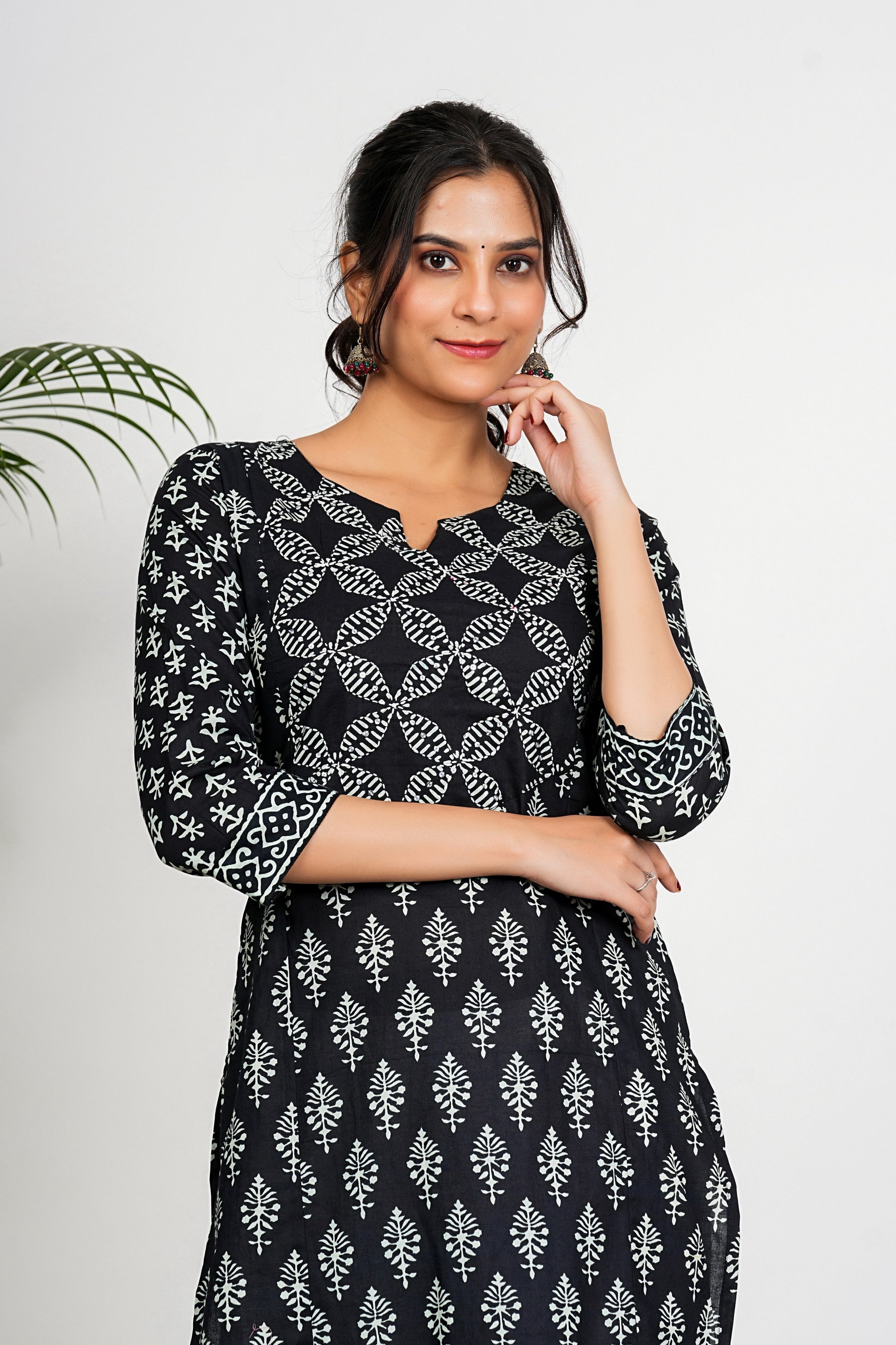 This kurta is the perfect blend of style and comfort, with its black floral print and straight cut in soft cotton fabric. It's a versatile piece that can be dressed up or down for any occasion. Stay chic and comfortable in this quirky, fun kurta!