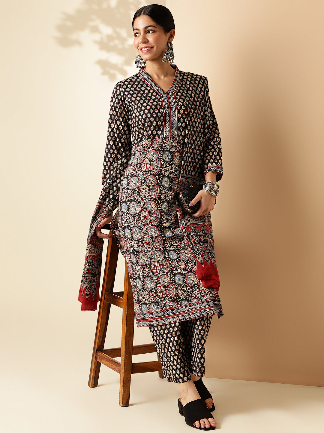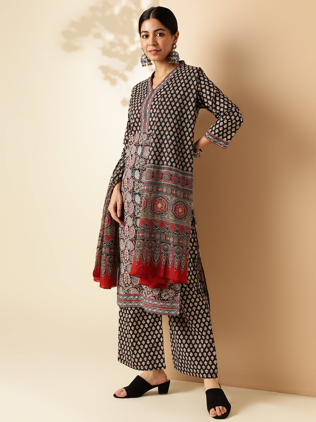Get your floral groove on with this Black Floral Print Straight Cotton Kurta Set! Made from high-quality cotton, this set features a bold black floral print that will make you stand out from the crowd. Perfect for any occasion, this set is comfortable and stylish. Upgrade your wardrobe now!