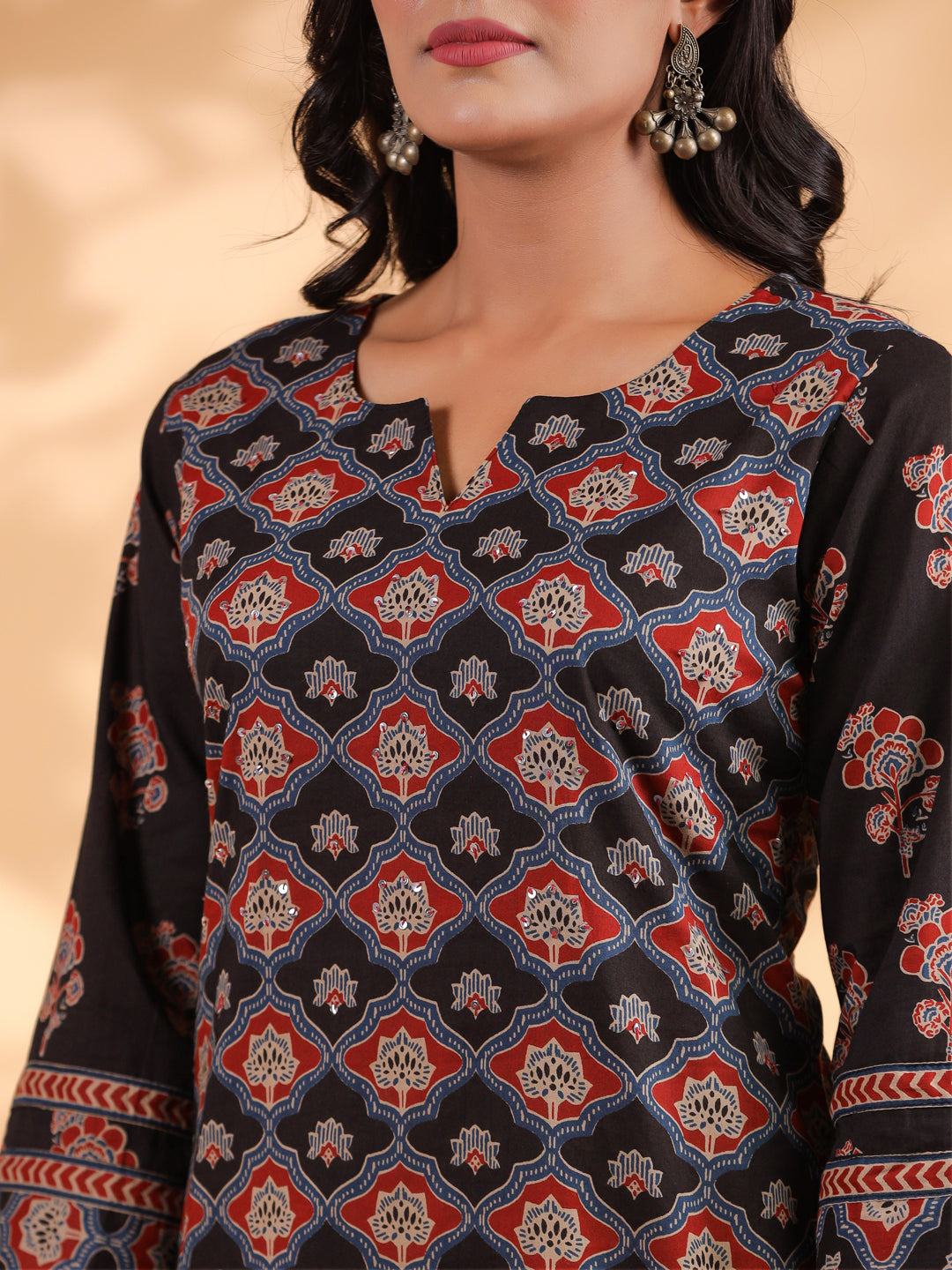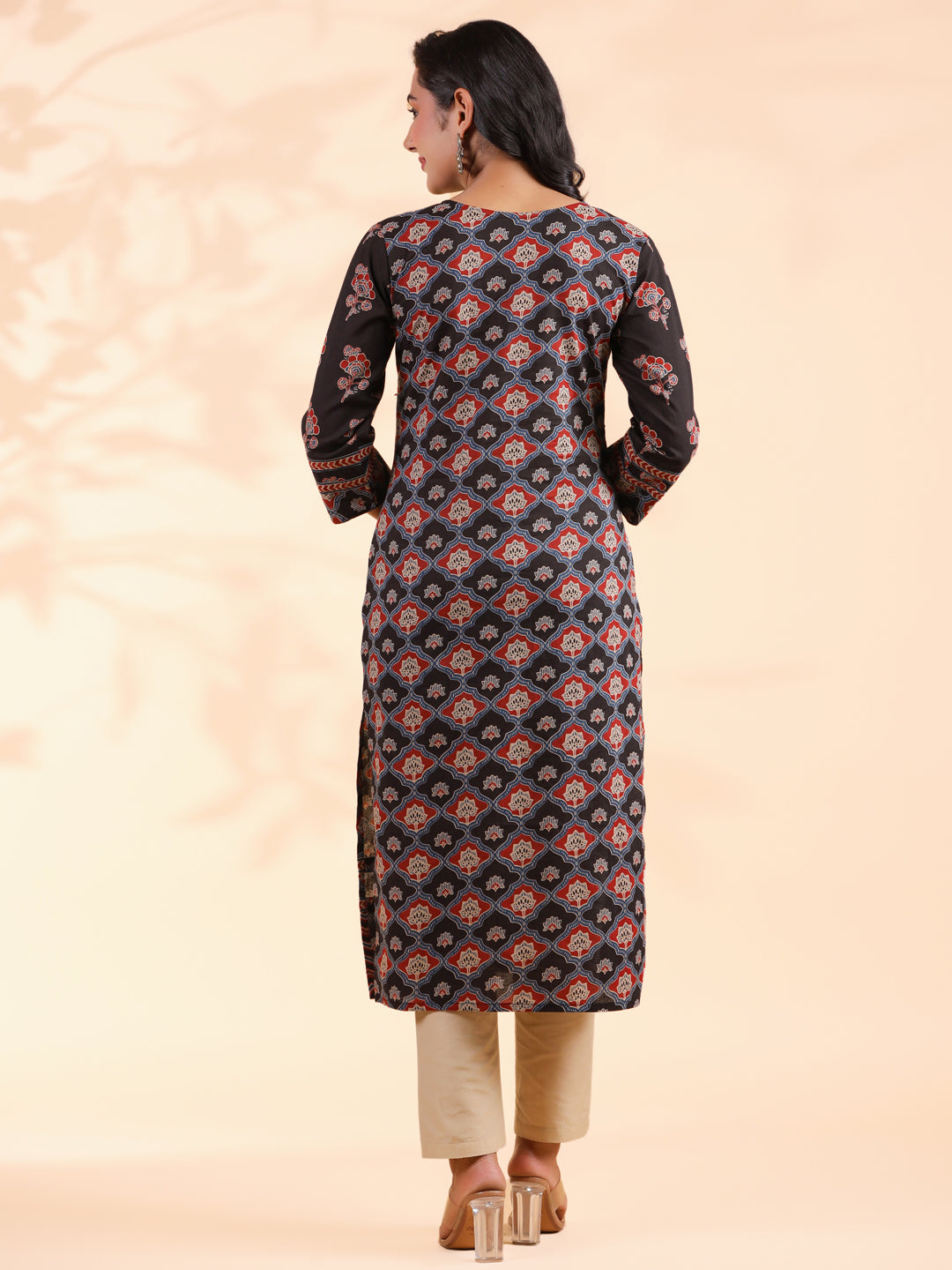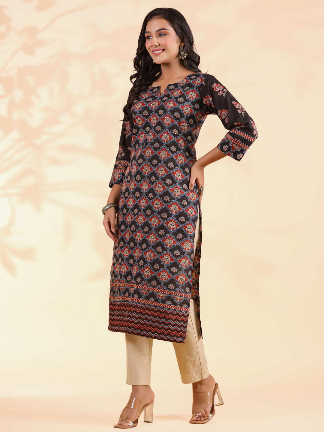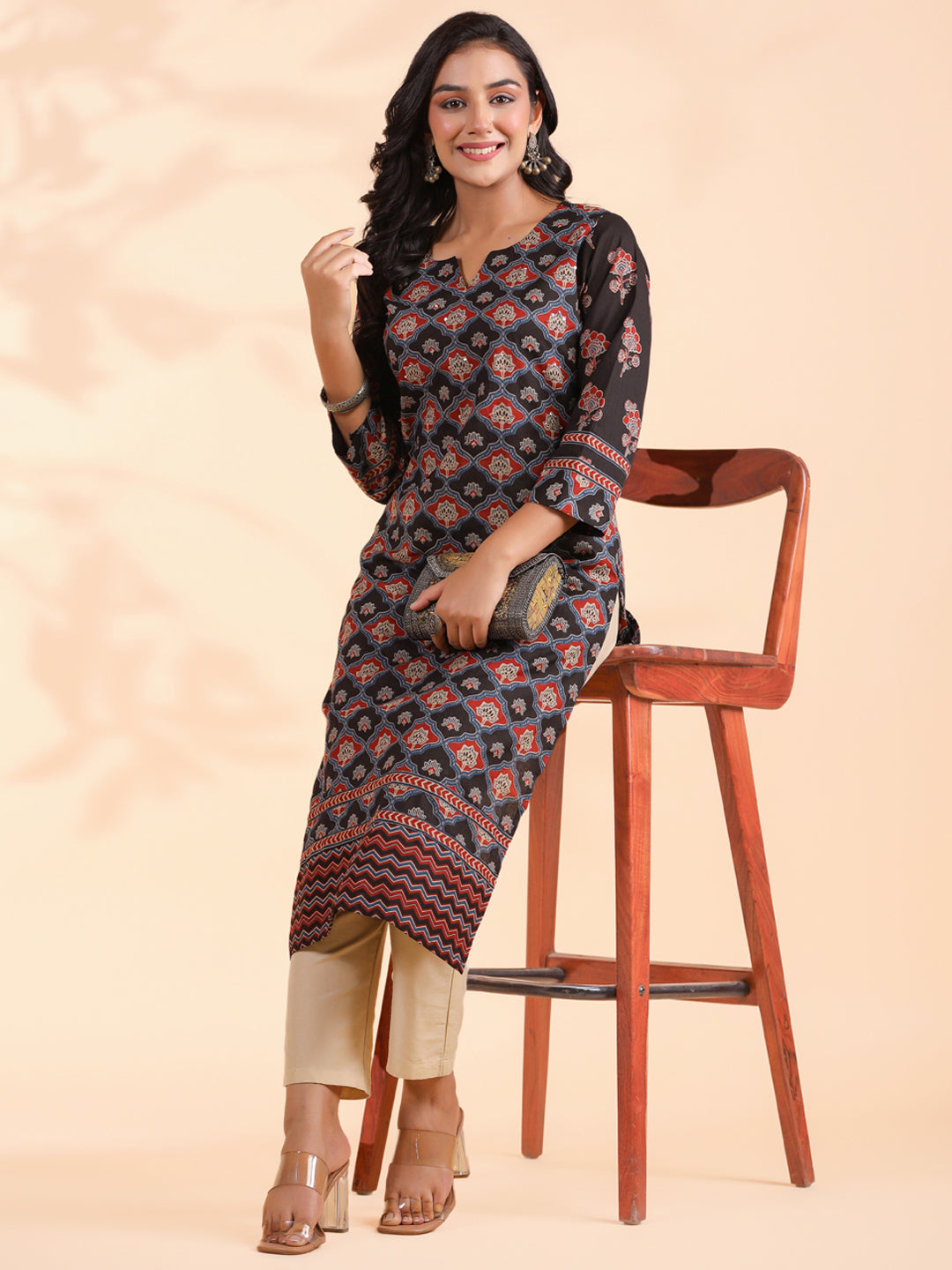 This Black Floral Print Straight Cotton Kurta is perfect for adding a touch of whimsy to your wardrobe. Made with high quality cotton, this kurta features a playful floral print that will add a pop of color to your ensemble. The straight silhouette ensures a comfortable and flattering fit. Embrace your playful side with this quirky kurta.