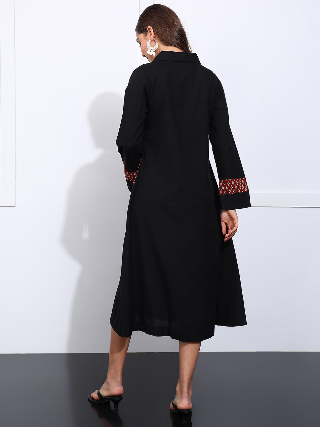 Black Solid Fit & Flare Cotton Stitched Dress