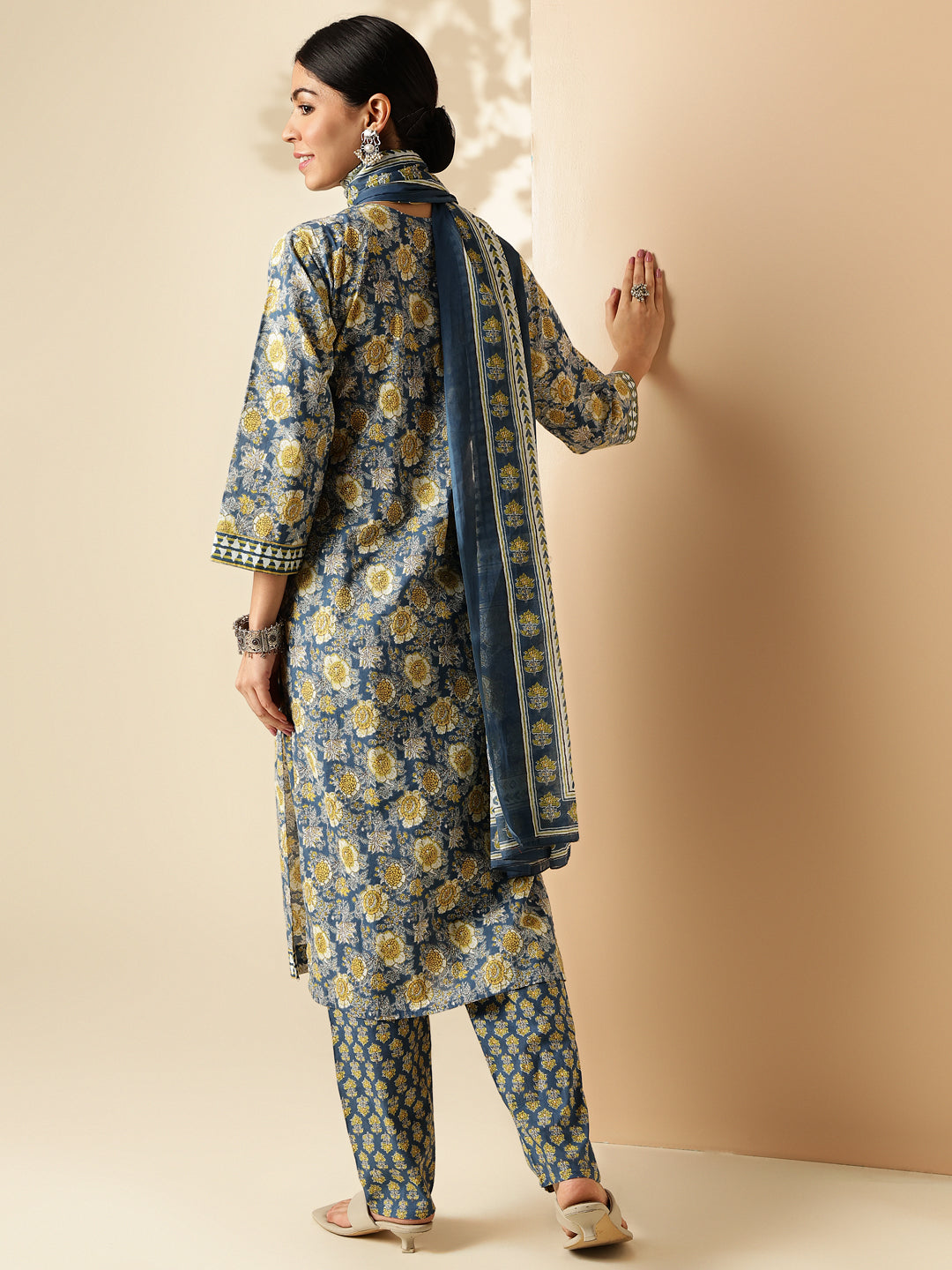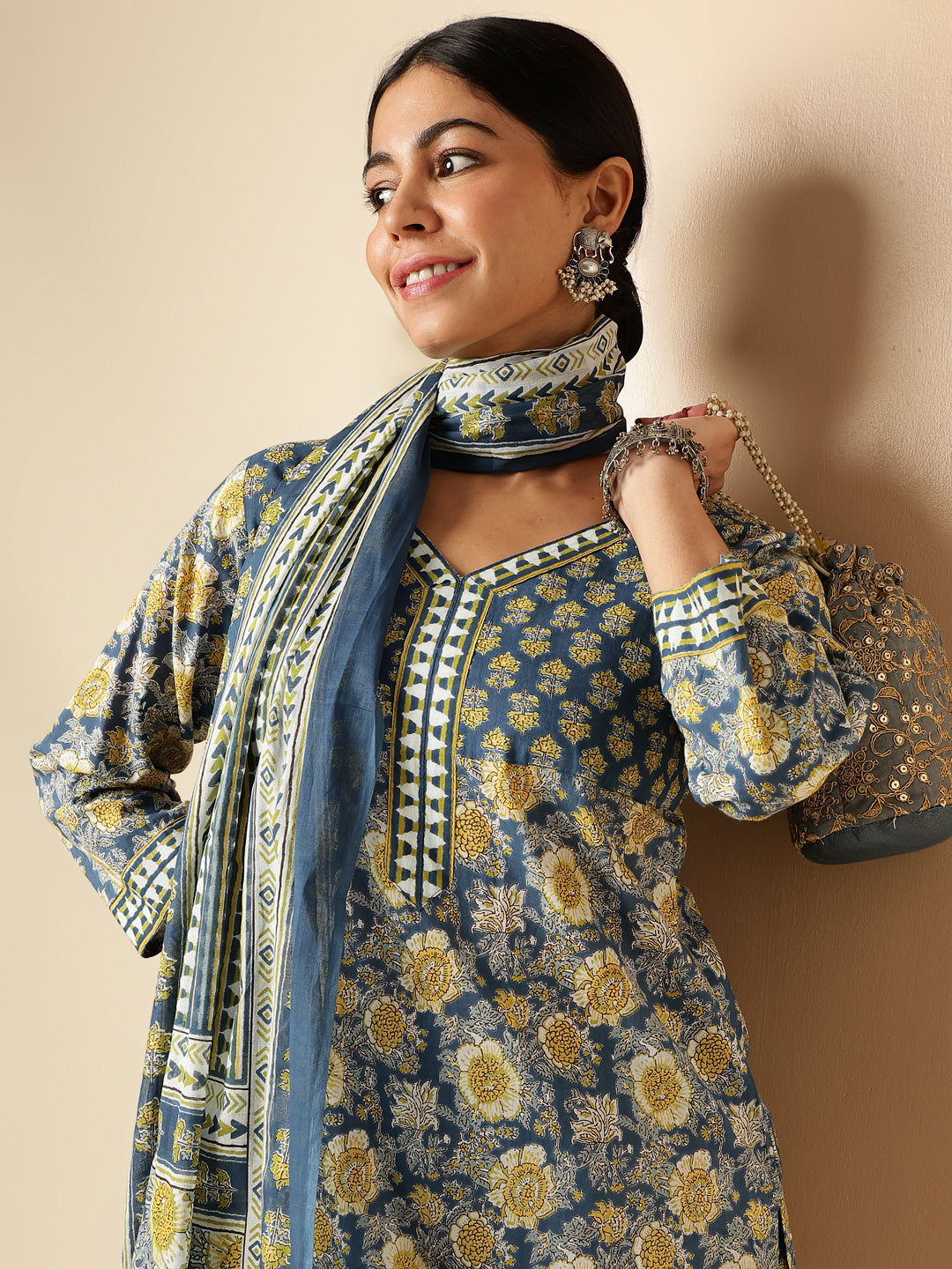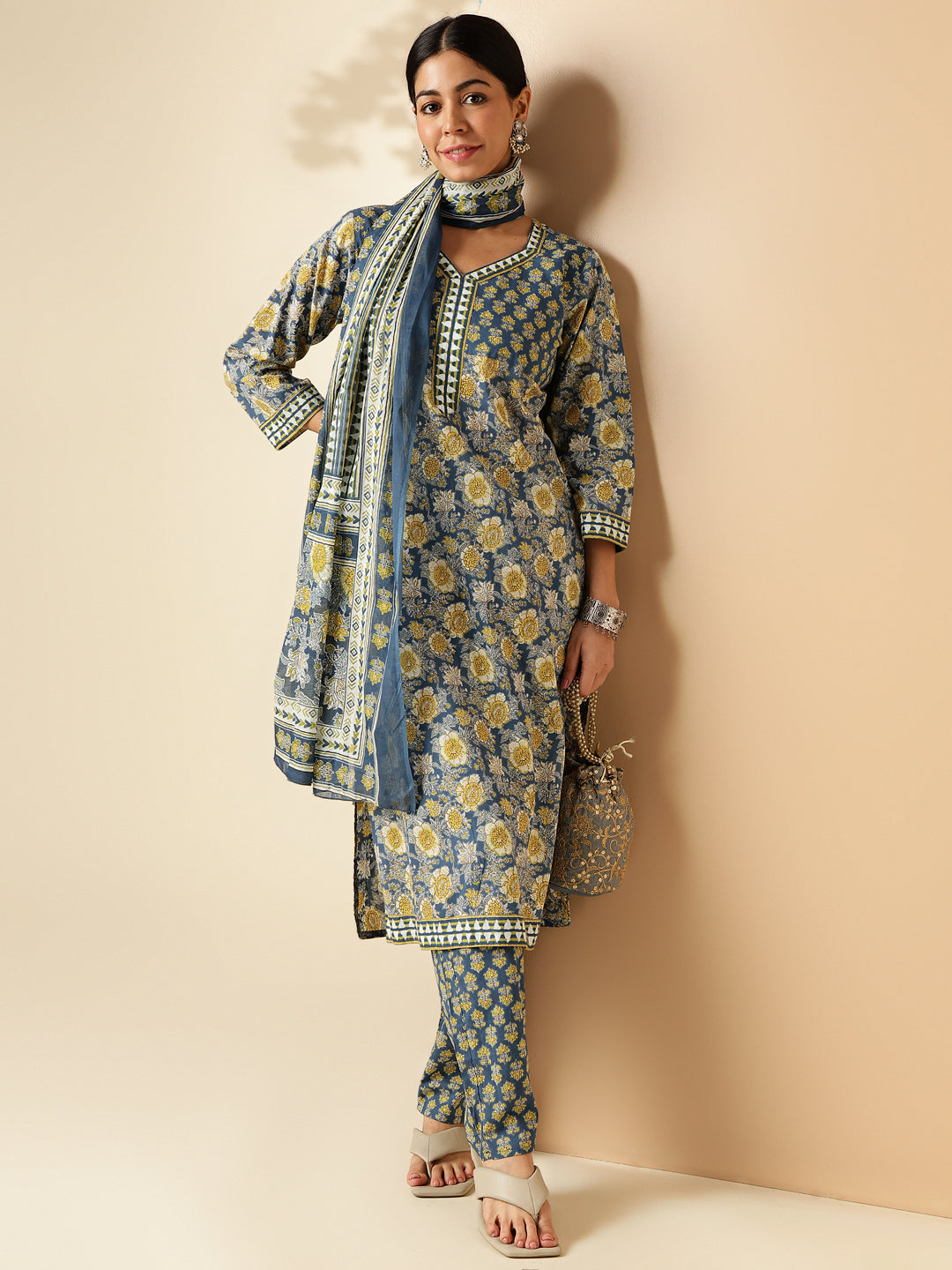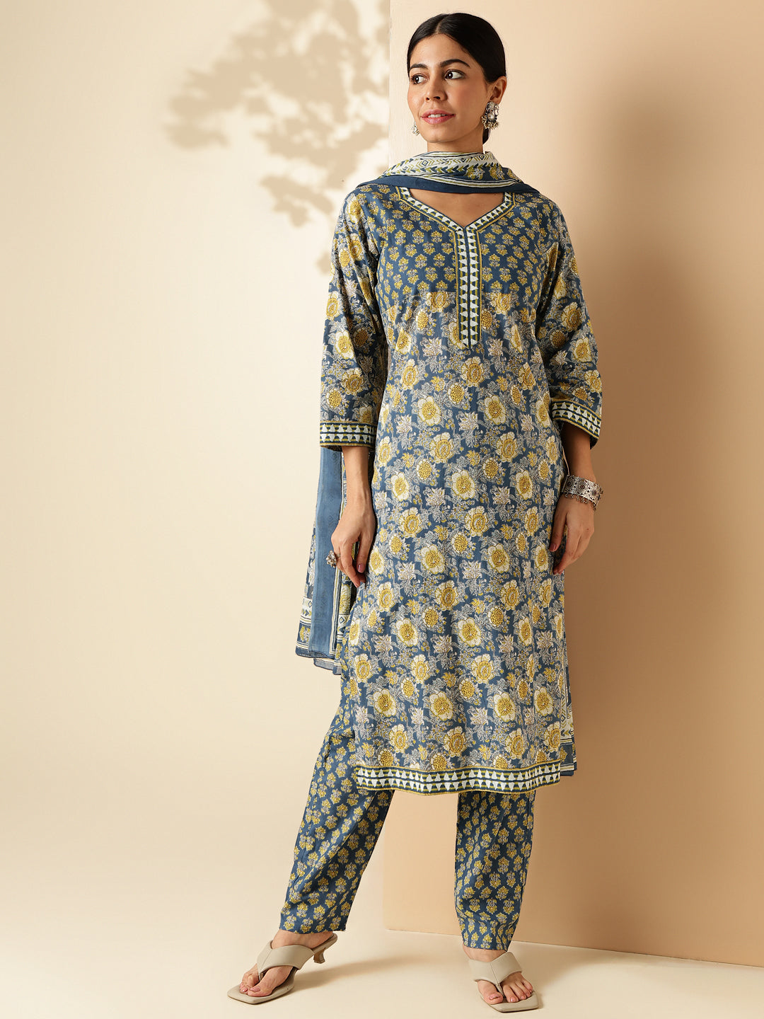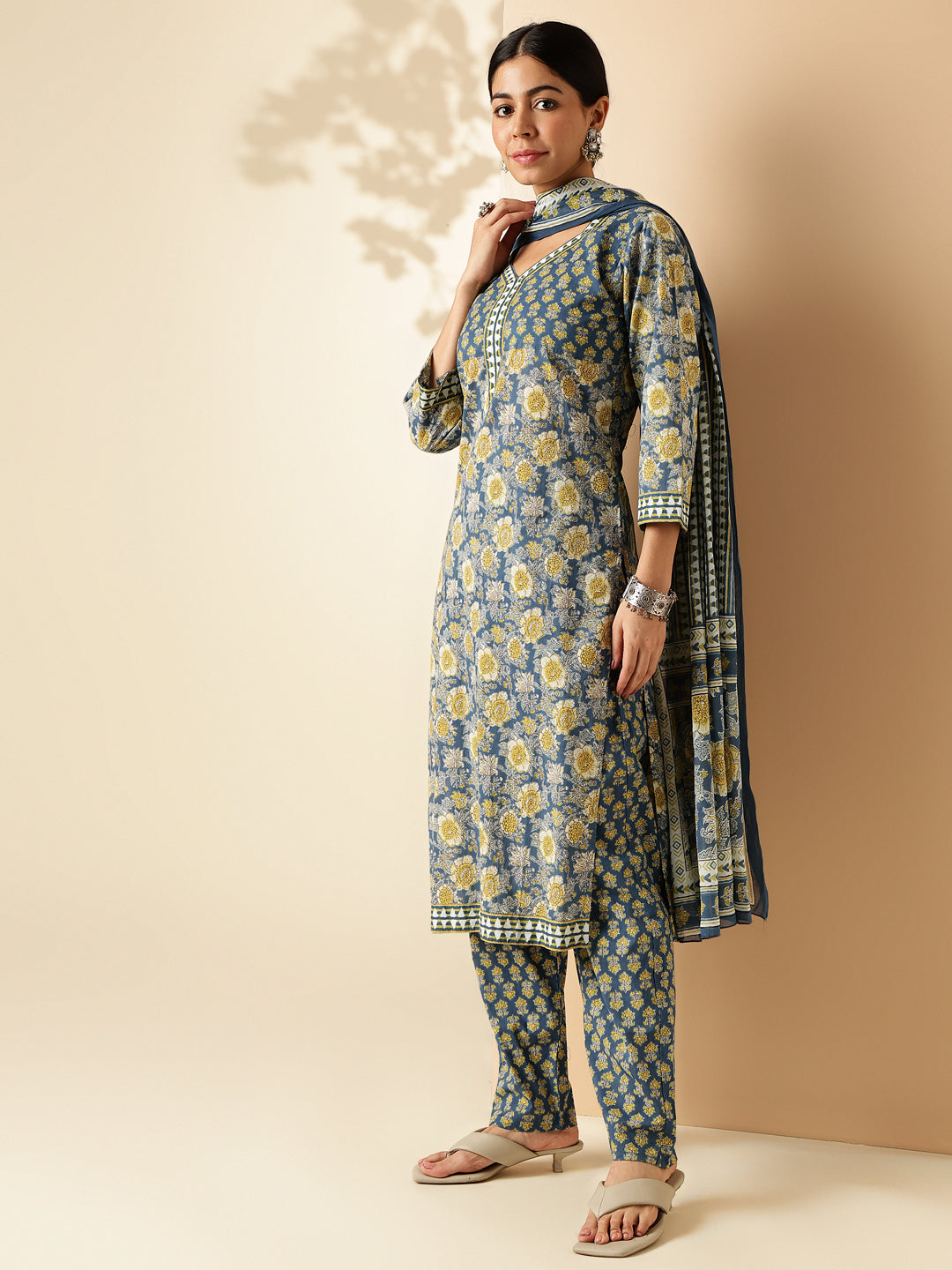 Unleash your inner fashionista with this Blue Floral Print Straight Cotton Kurta Set. Made from high-quality cotton, this set offers both comfort and style. Perfect for any occasion, the beautiful blue floral print will make you stand out in the crowd. Elevate your wardrobe with this must-have piece!