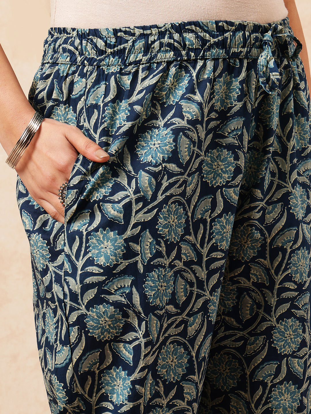 Master the art of ethnic styling with this professionally crafted blue floral kurta collection. Constructed from pure cotton, this straight-cut ensemble delivers exceptional comfort without compromising on sophistication. The botanical floral pattern in serene blue tones reflects contemporary design sensibilities while honoring traditional Indian aesthetics. This comprehensive three-piece set—featuring a kurta, palazzo pants, and dupatta—provides endless styling flexibility for weddings, festivals, or refined casual occasions. Meticulous stitching demonstrates superior garment construction, guaranteeing longevity and consistent fit. Ideal for those who value quality craftsmanship and seek versatile ethnic wear that seamlessly transitions between different settings and seasons.