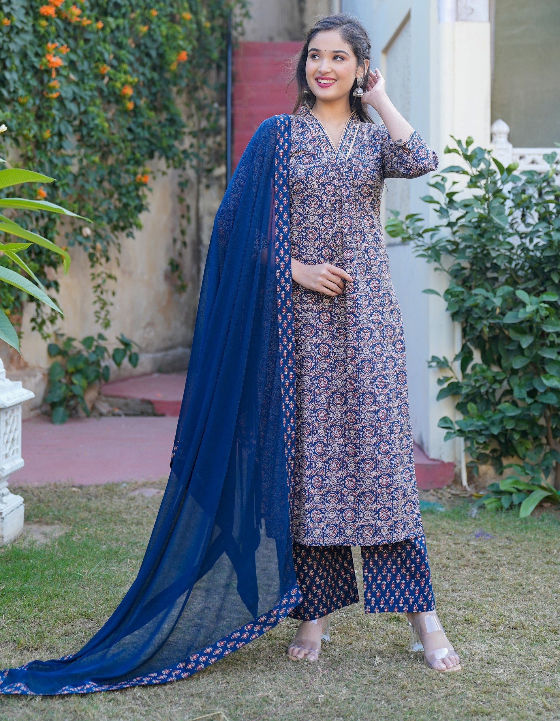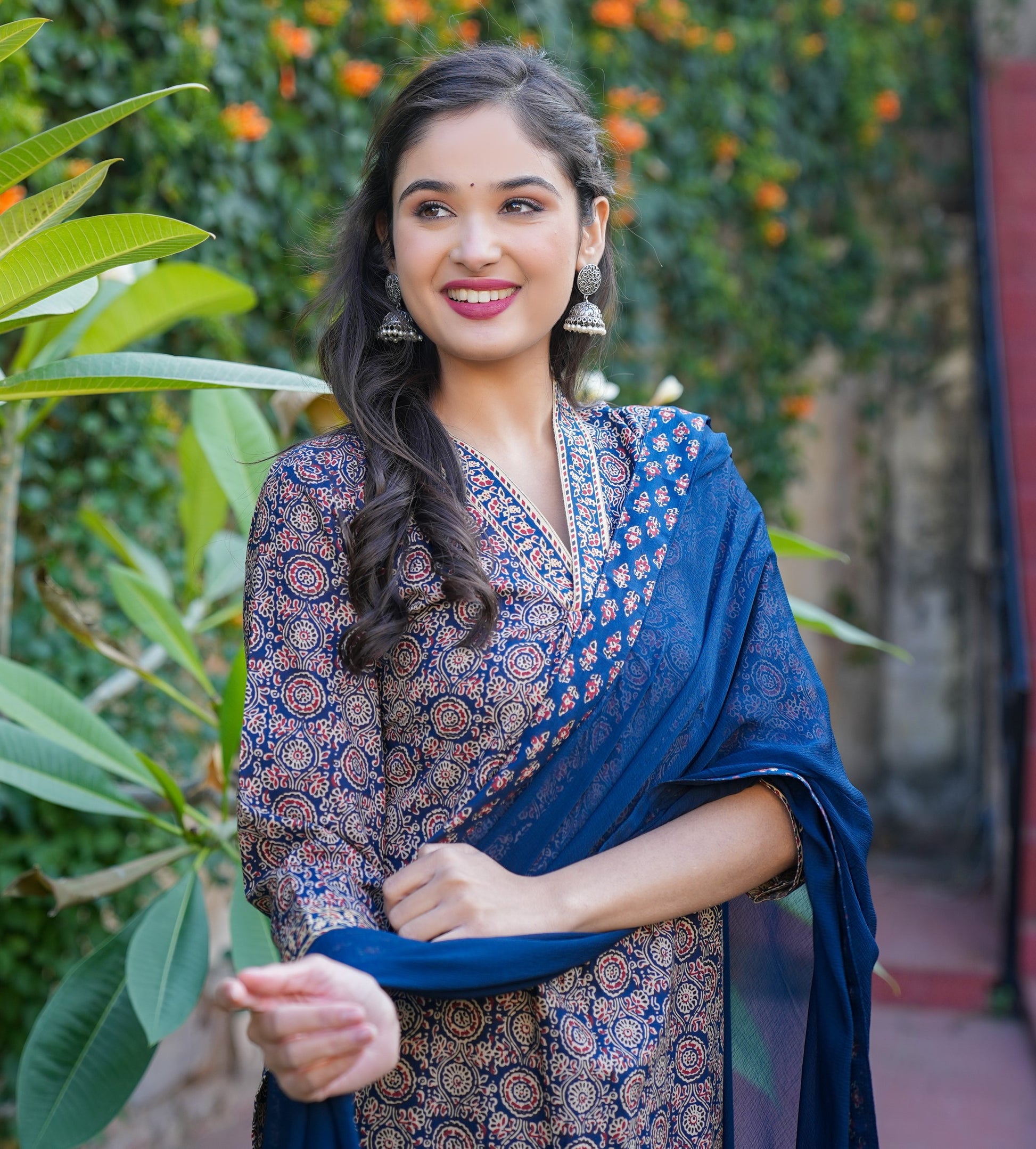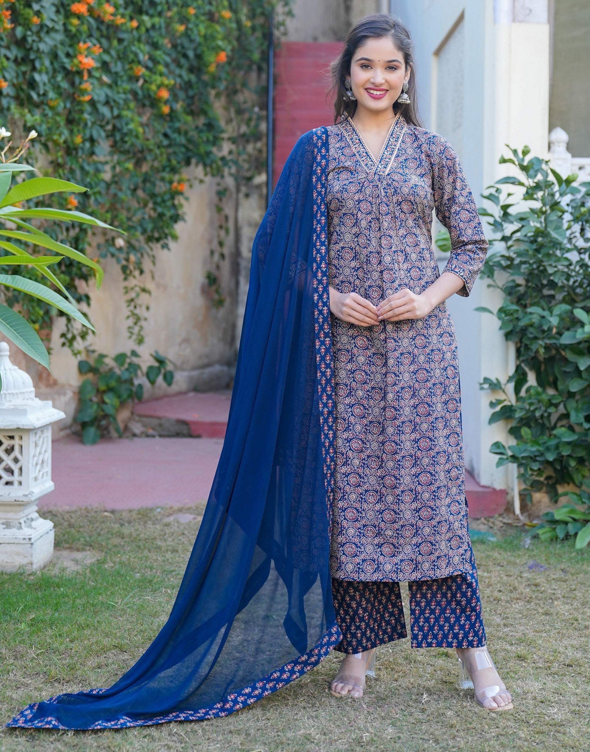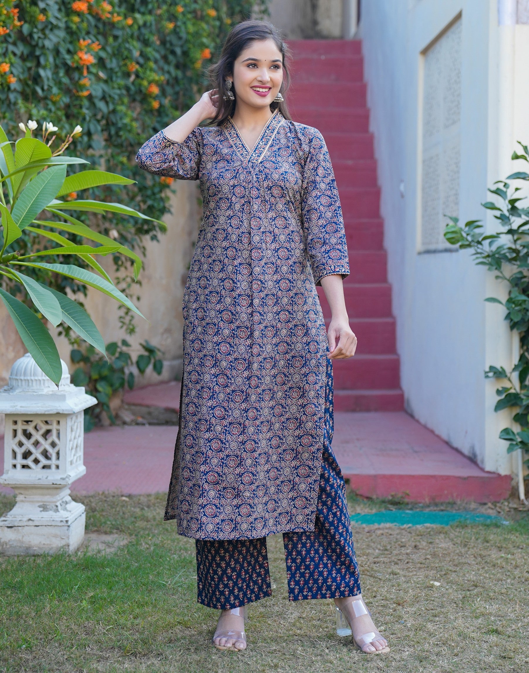 Get ready to make a statement with our Blue Print Straight Cotton Stitched Kurta Set! With its bold blue print and stylish straight cut, this kurta set is perfect for adding some fun and flair to your wardrobe. Made with high-quality cotton, it's also comfortable and durable. Stand out from the crowd with this quirky and playful ensemble.