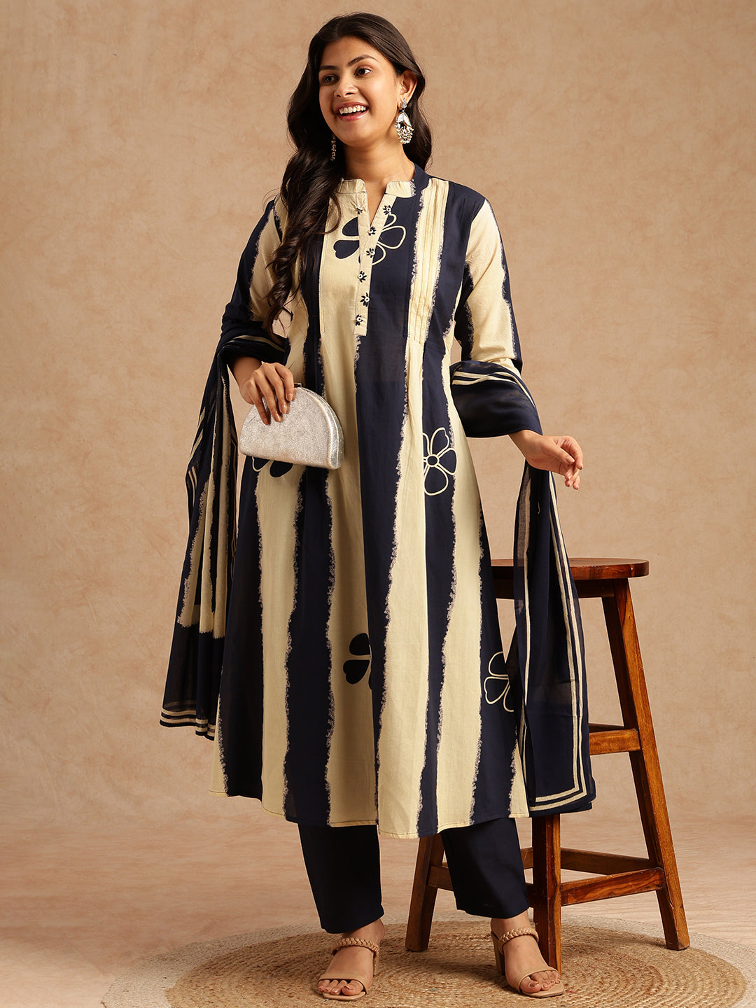 This Blue Tie and Dye A-Line Cotton Kurta Set combines traditional craftsmanship with comfort. Crafted from breathable cotton, its a-line silhouette offers a flattering fit and ease of movement. The tie and dye pattern adds a unique, handcrafted touch, making it ideal for both casual and semi-formal occasions. Designed for durability and style, this stitched kurta set ensures lasting wear and effortless elegance.
