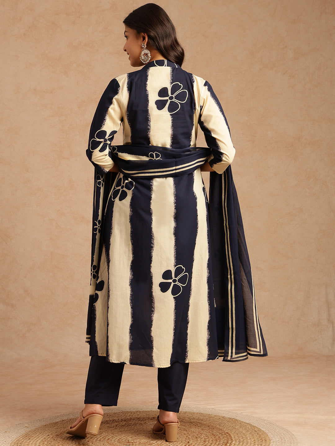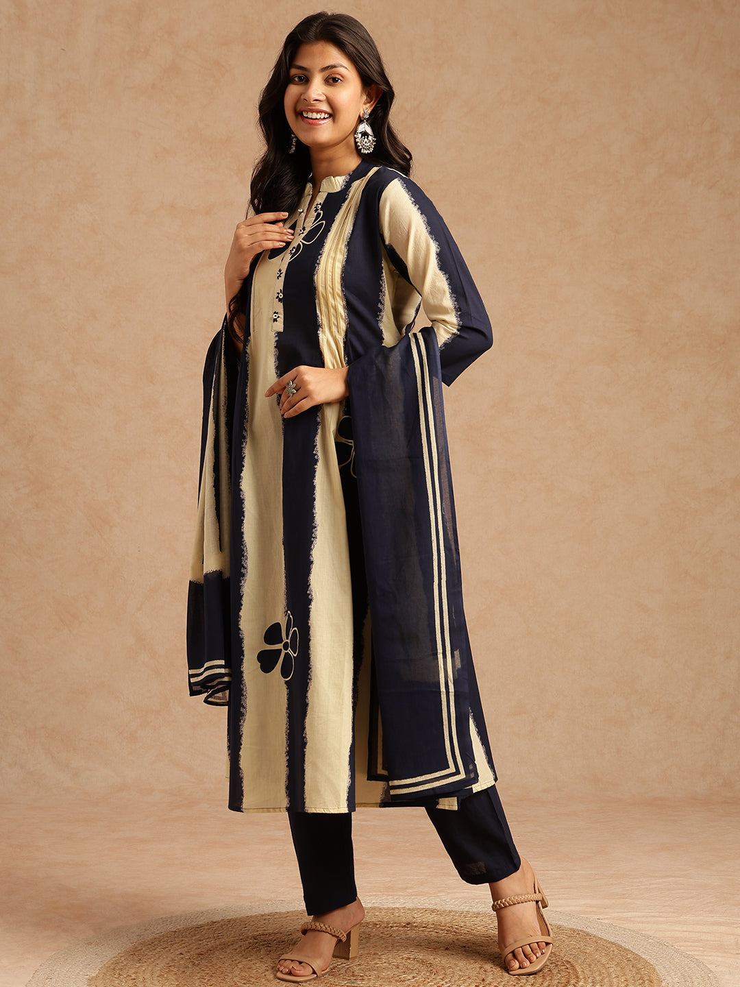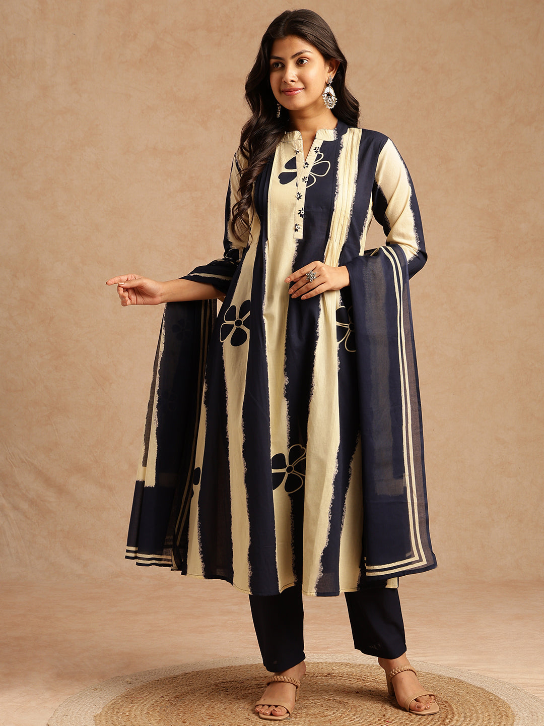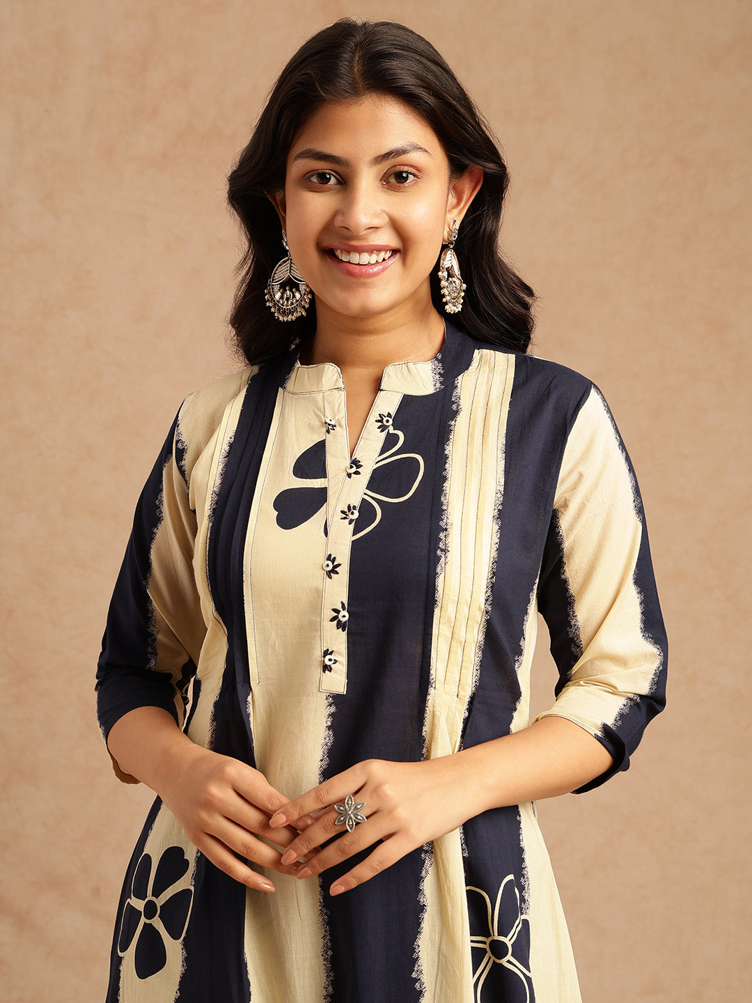 Blue Tie And Dye A-Line Cotton Stitched Kurta Set