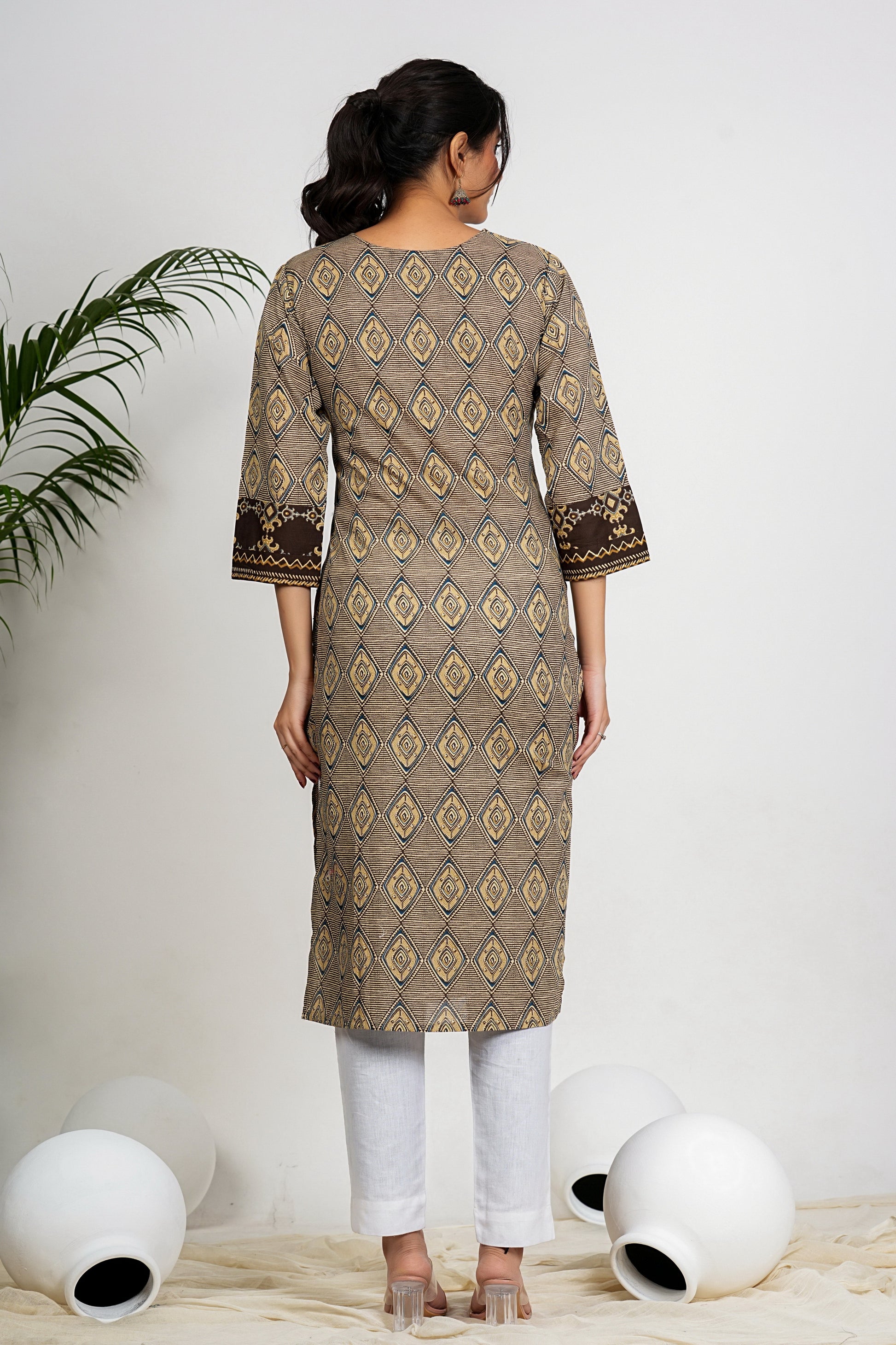 Beige Color Cotton A-Line Kurti
