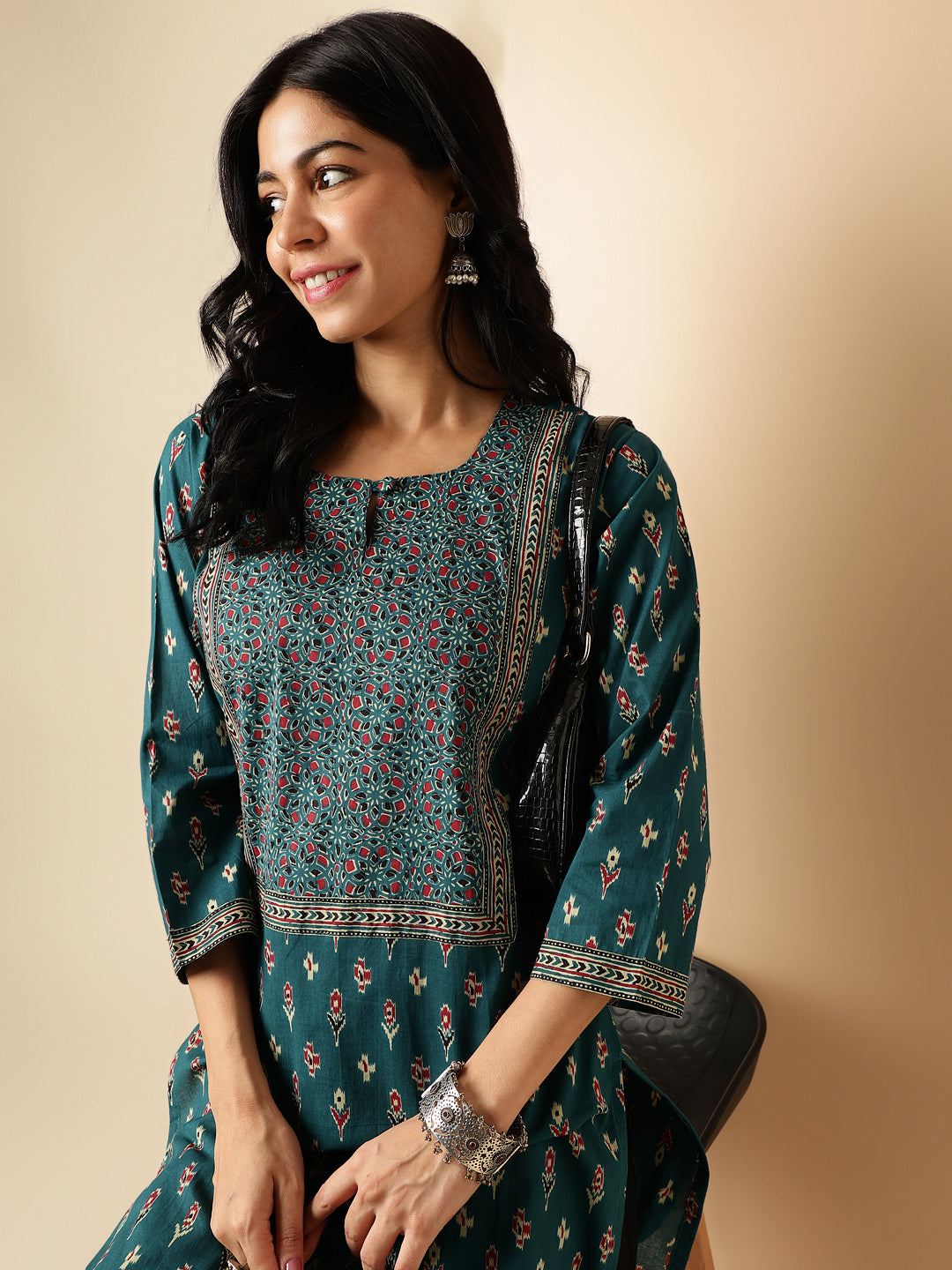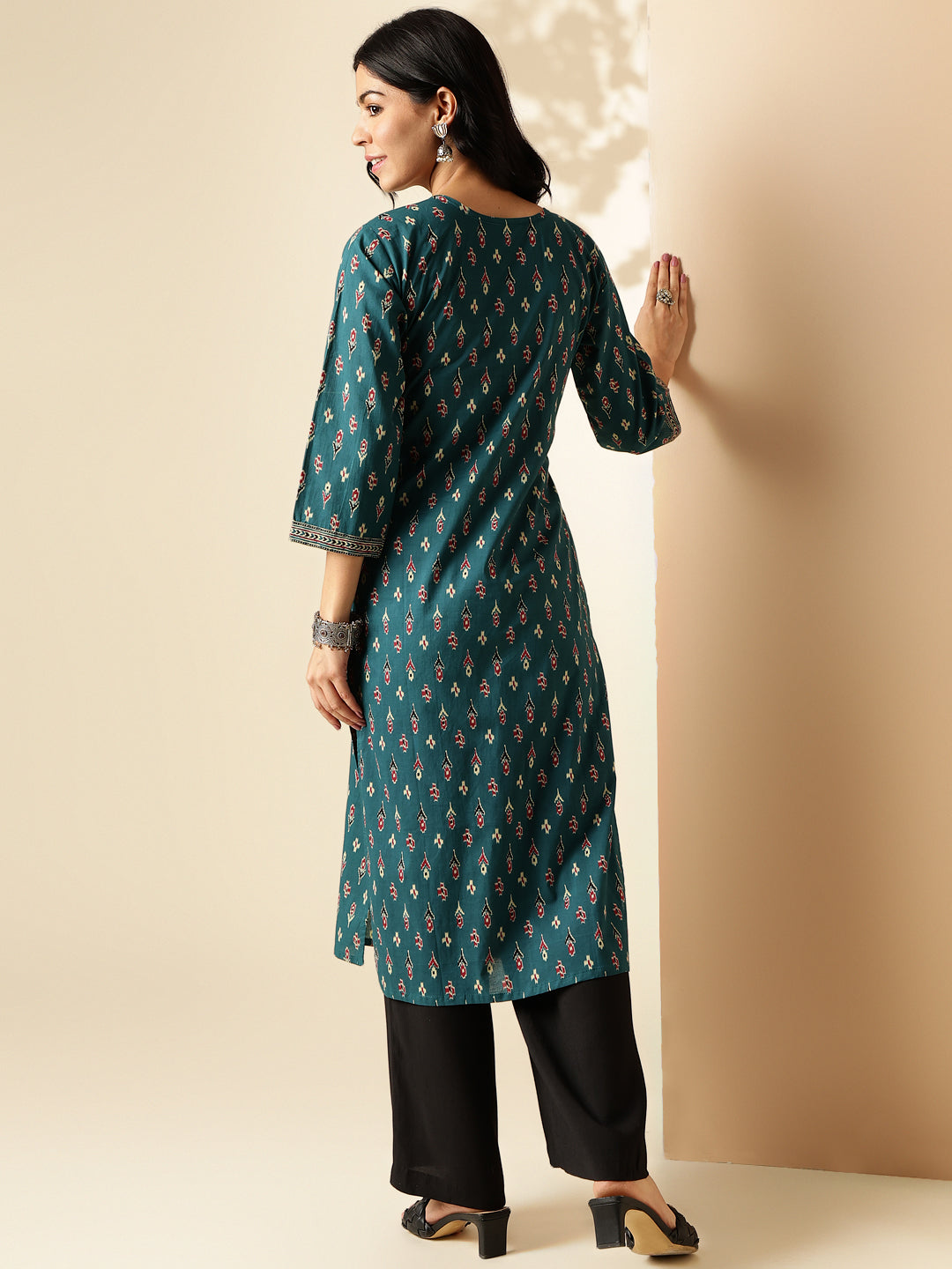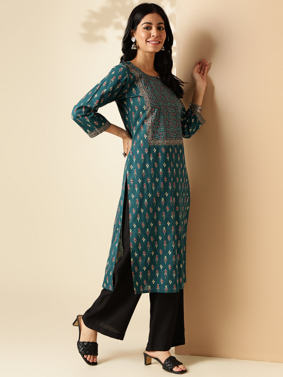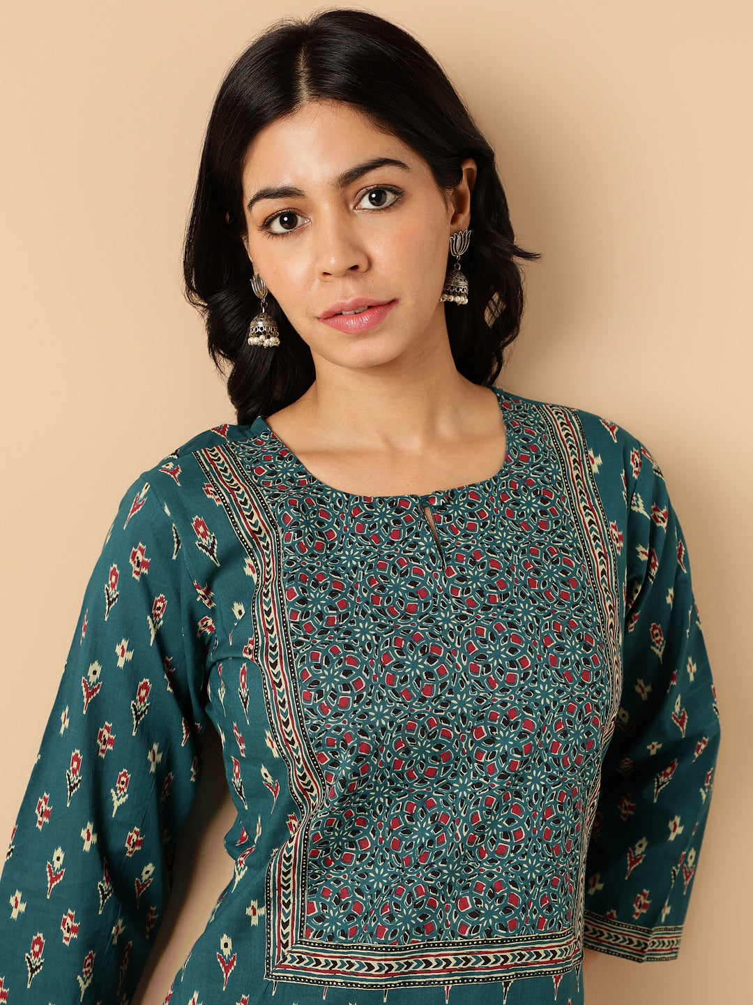 Get ready to rock your style with our Dark Rama Block Print Straight Cotton Kurta. Crafted cotton, this kurta boasts a unique dark Rama block print. Its straight design adds a modern touch, while the breathable fabric keeps you cool and comfortable. Perfect for any occasion, this kurta is a must-have for any fashion-forward individual.