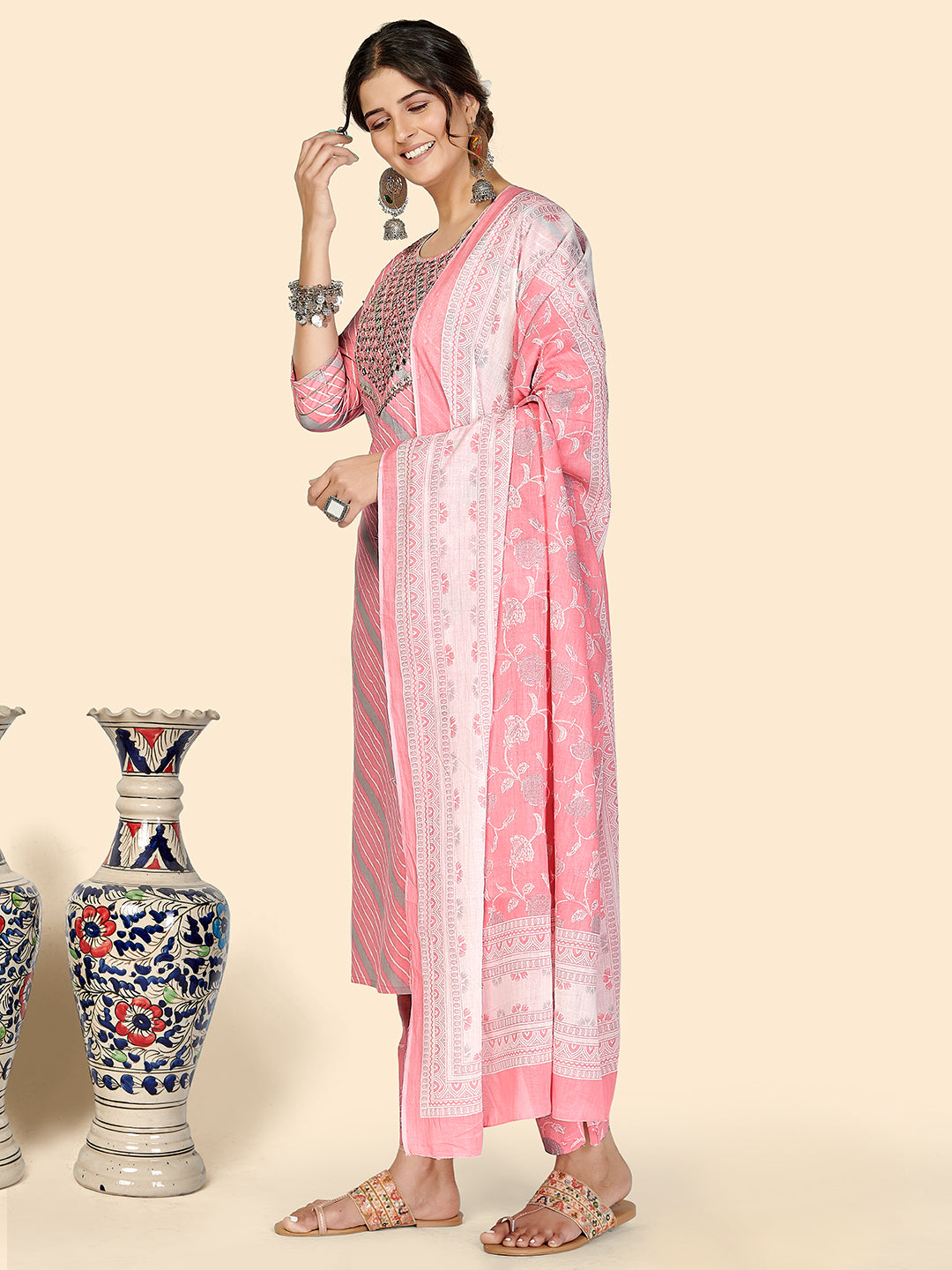 Light Pink Embroidered Straight Cotton Kurta Set