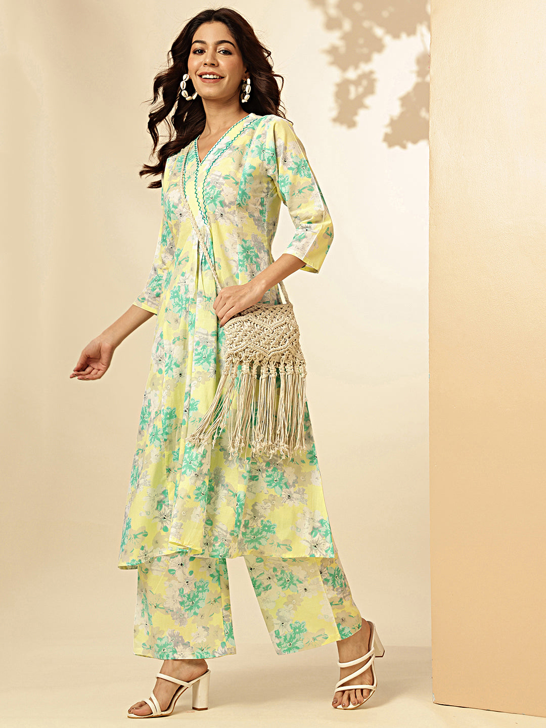 Introducing our Aqua Blue Floral Printed Kurta with Palazzo. Made from soft cotton, this kurta features a vibrant floral print that will make you stand out in any crowd. The flattering fit and flare design will highlight your curves, while the palazzo offers comfort and style. Get ready to turn heads!