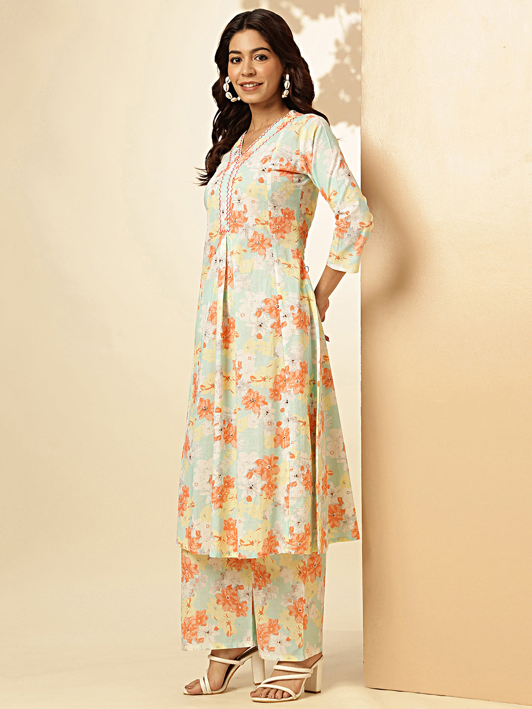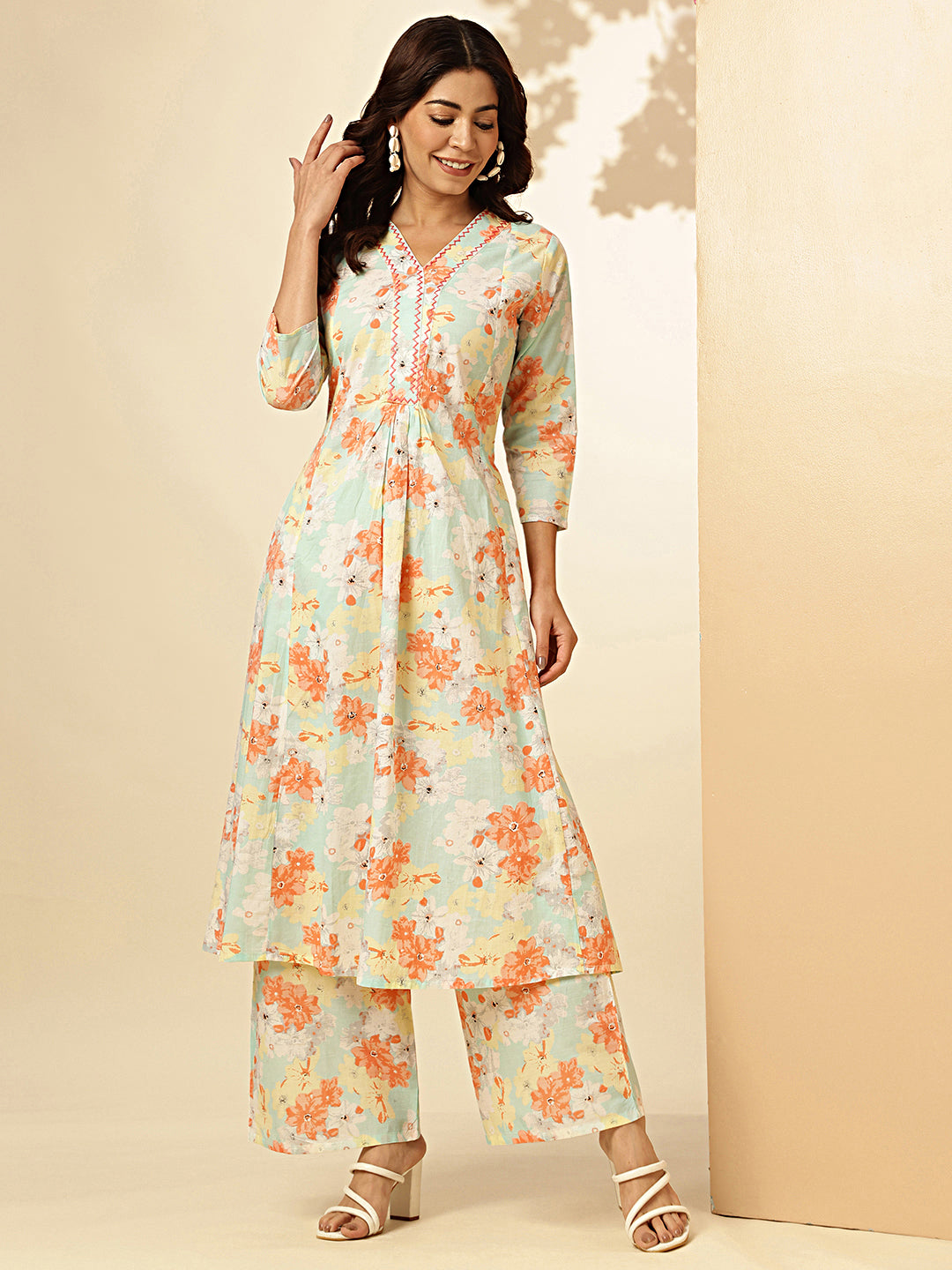 Get ready to bloom in style with our Orange Floral Printed Fit And Flare Cotton Stitched Kurta With Palazzo! This unique kurta features a vibrant floral print, adding a pop of color to your wardrobe. The fit and flare design flatters your figure while the soft cotton material keeps you comfortable all day long. Pair it with the matching palazzo for a complete and chic look.