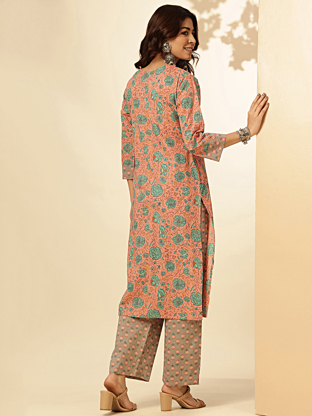 Elevate your style with our Dark Rama Floral Print Straight Cotton Stitched Kurta With Palazzo. Made with high-quality cotton, this set features a trendy dark rama floral print. The straight kurta and palazzo combination offers both comfort and style. Upgrade your wardrobe with this quirky and fun outfit!