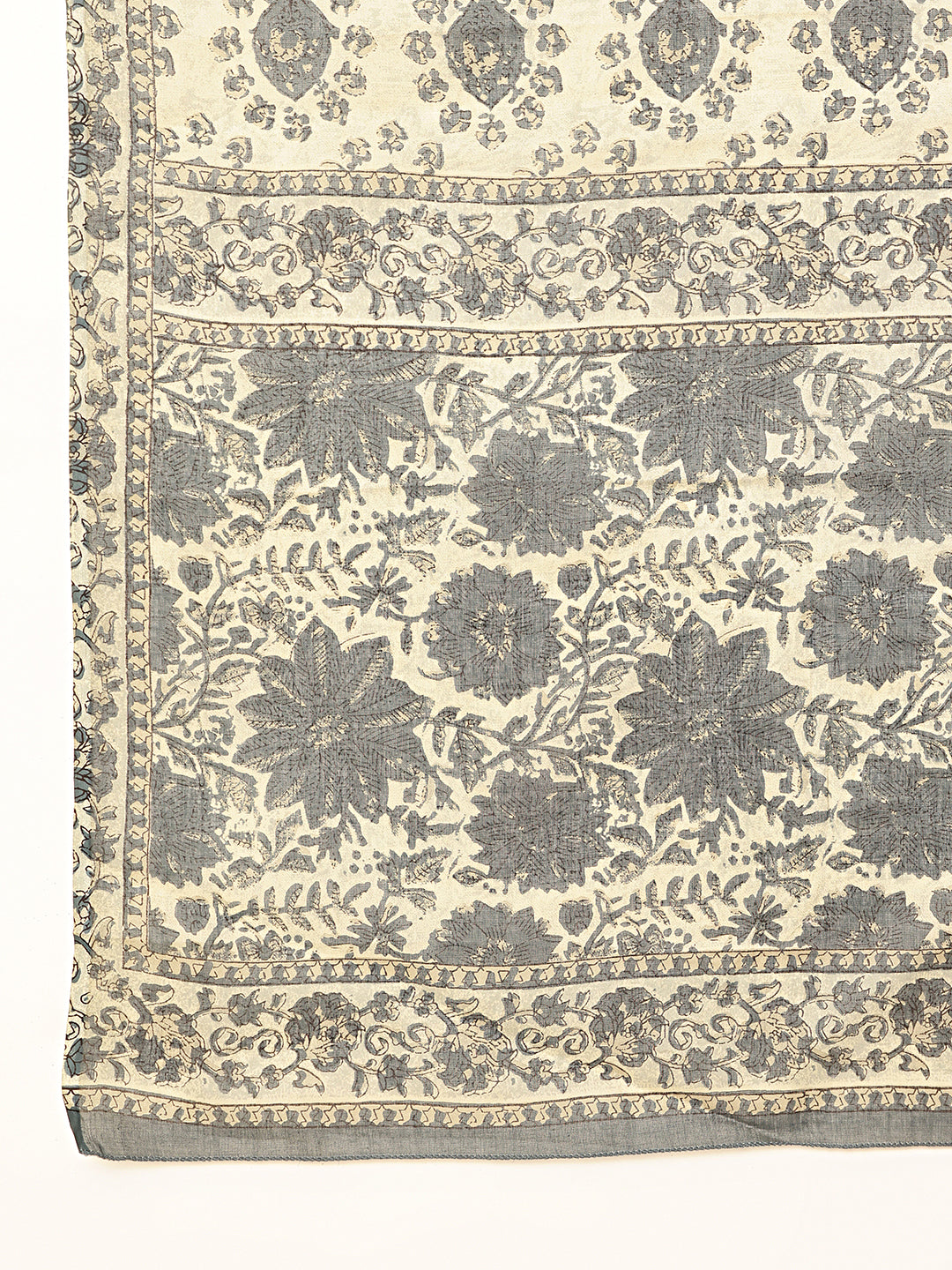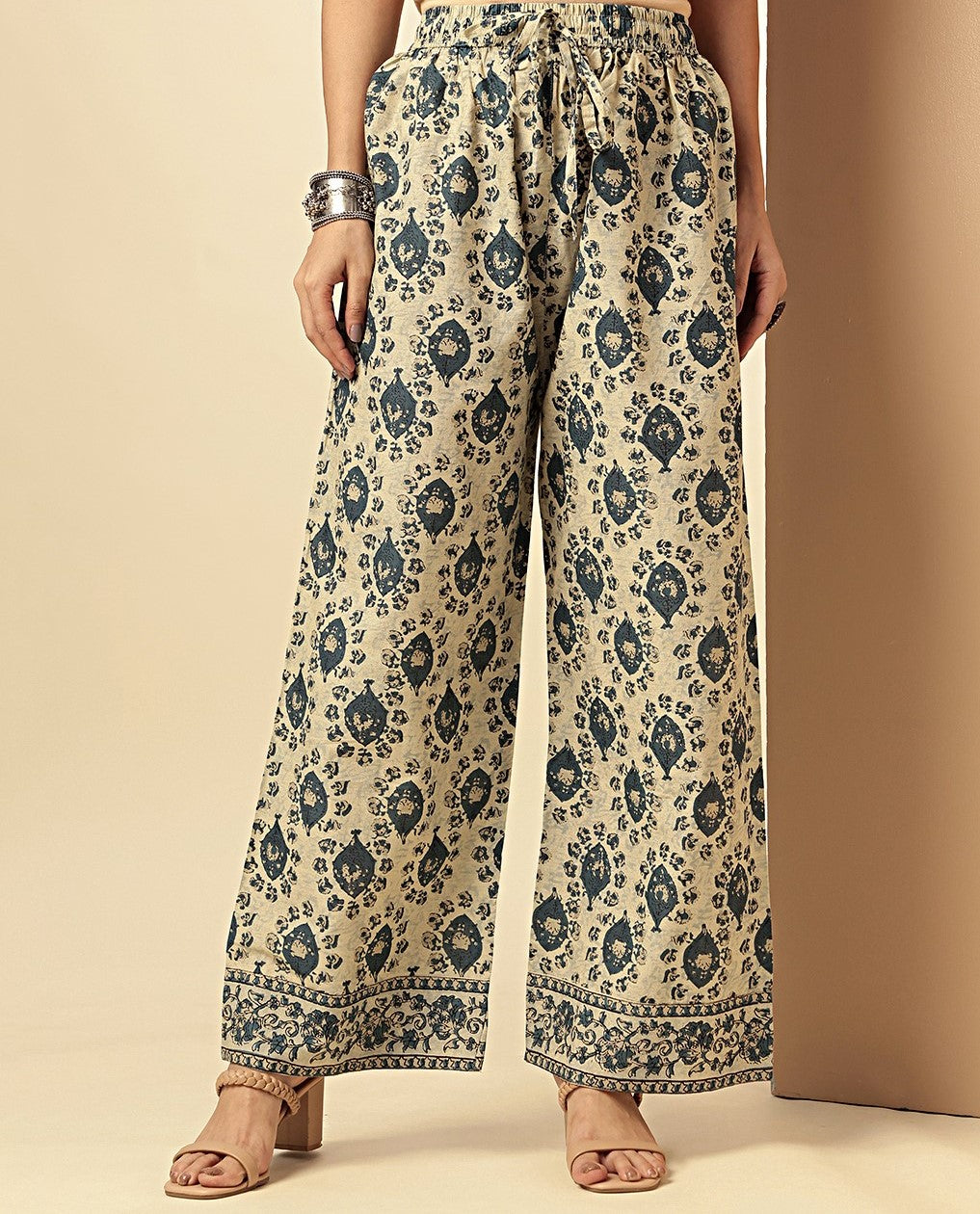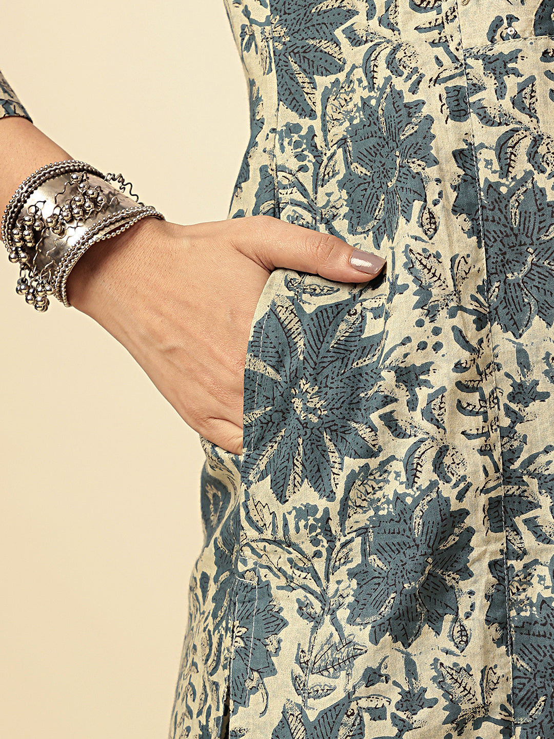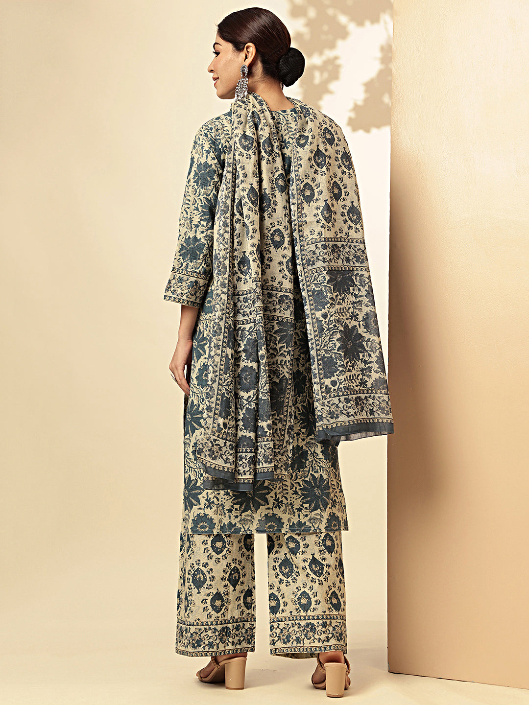 Aqua Blue Floral Printed Straight Cotton Stitched Kurta Set
