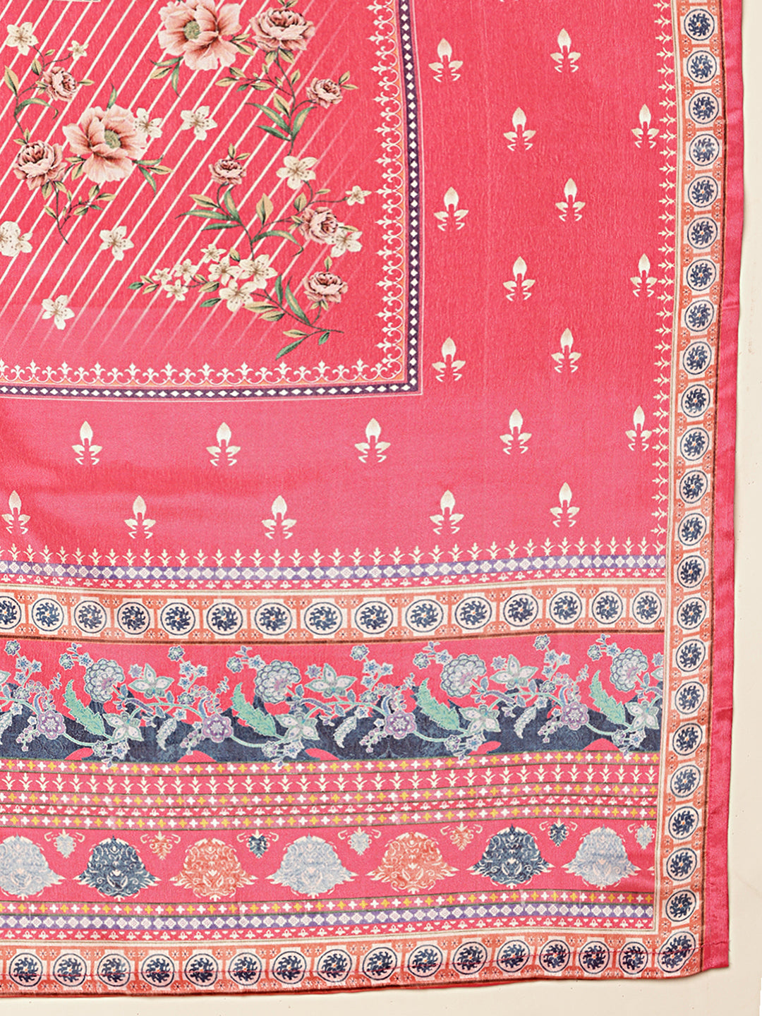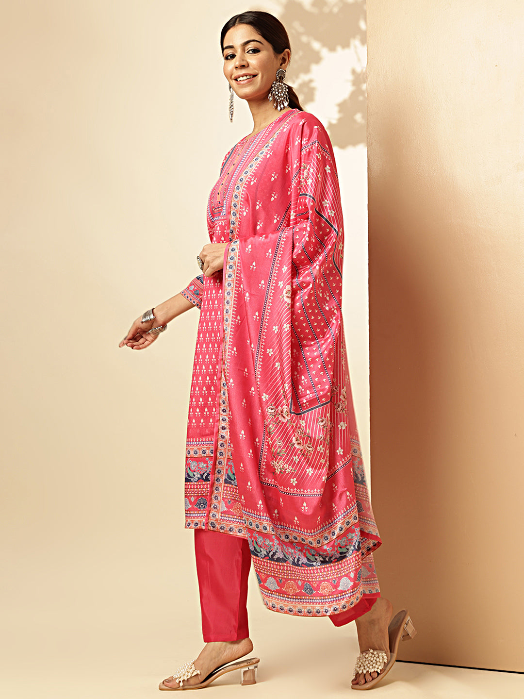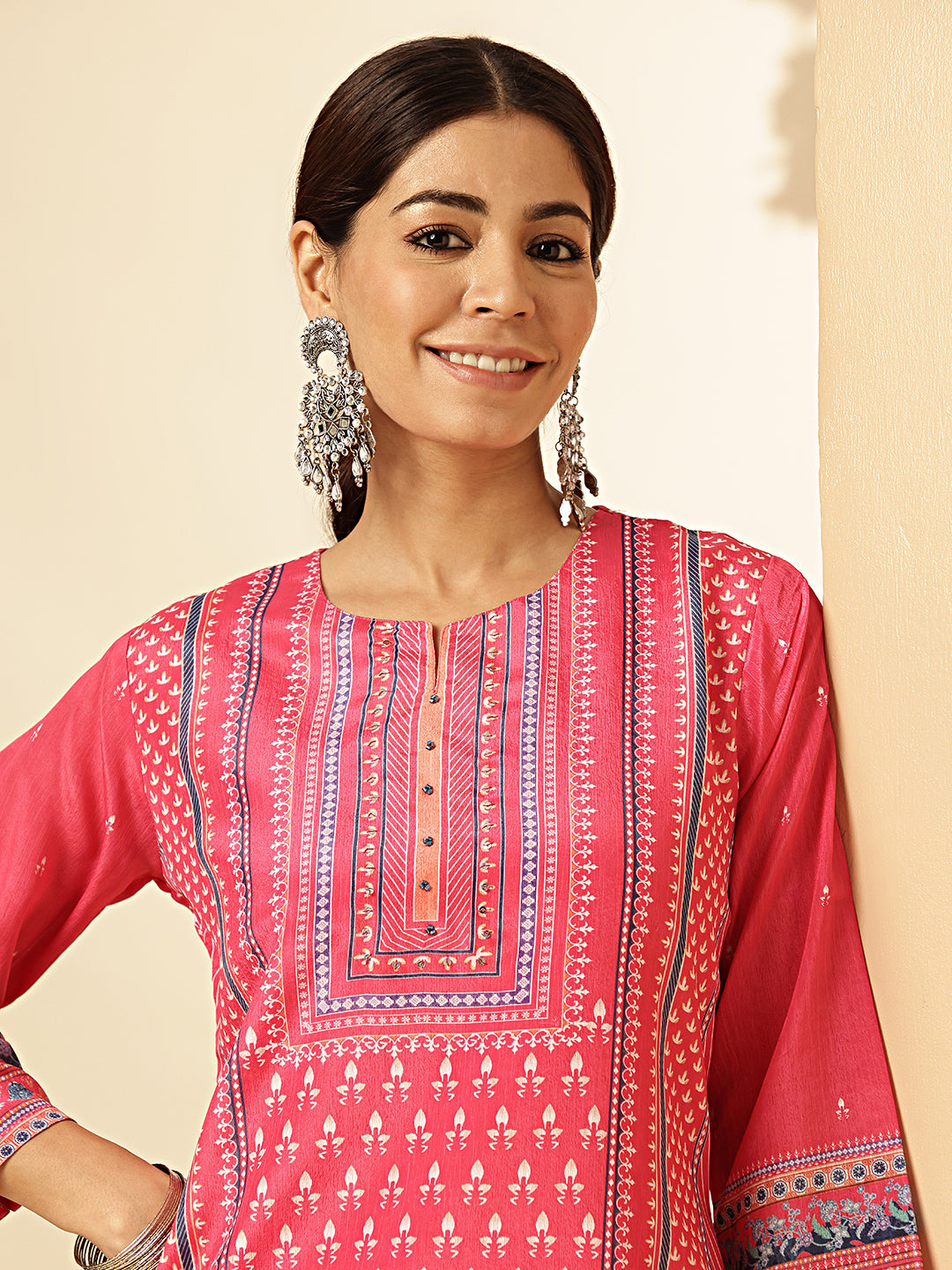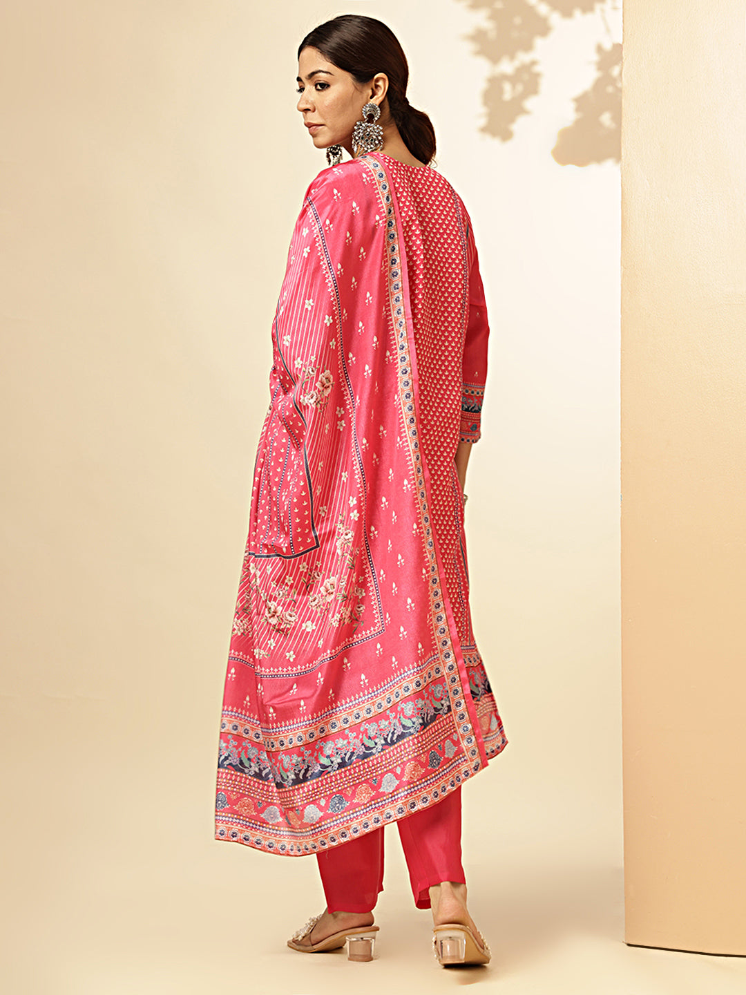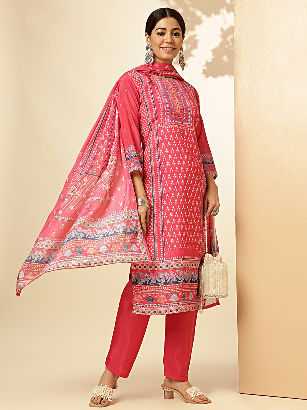 Geometric Print Straight Chinon Dark Pink Stitched Kurta Set
