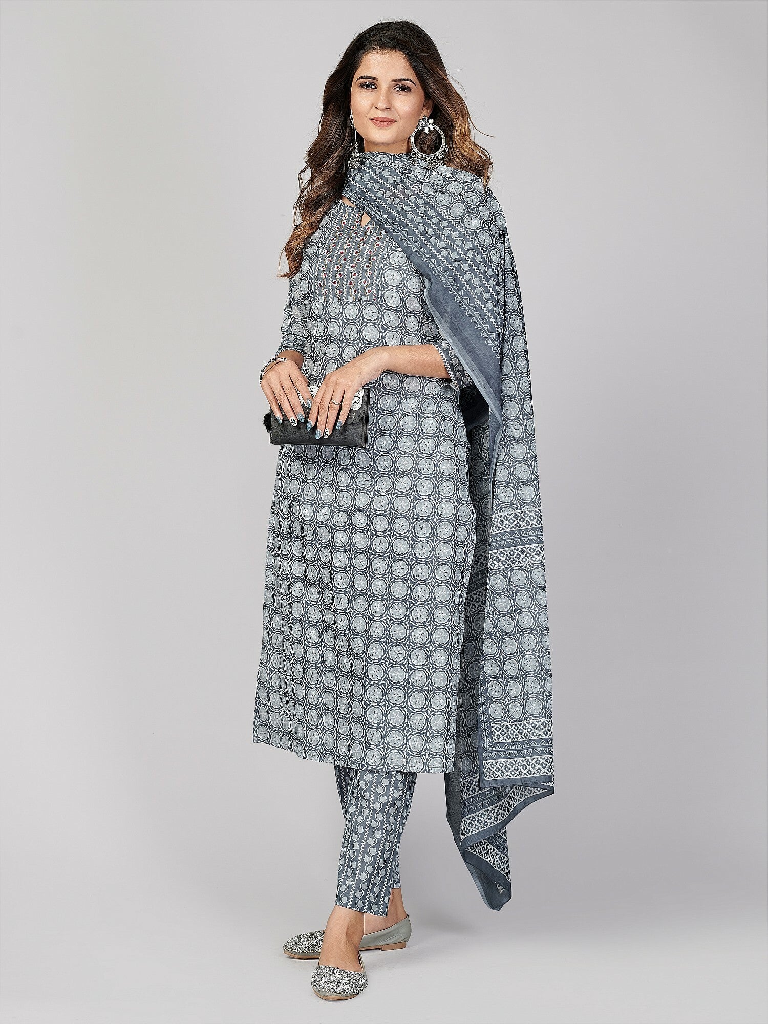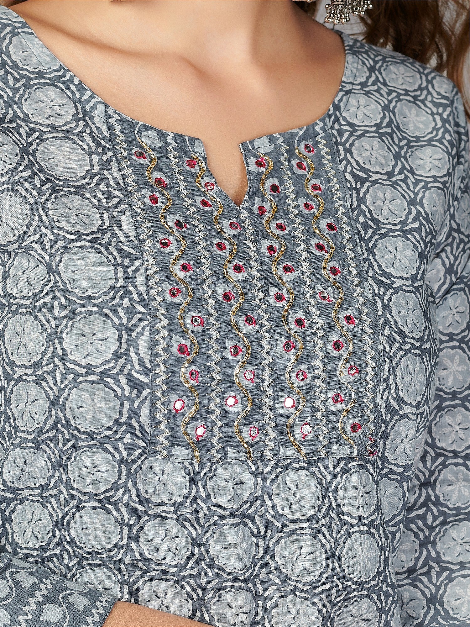 This Grey Embellished Straight Cotton Kurta Set is the perfect balance of casual and professional style! Crafted from cozy cotton and embellished with eye-catching details, it'll make getting dressed for the office a breeze! Plus, it's uniquely stylish and comfortable enough for all occasions. Get ready to 'suit up' in style! π