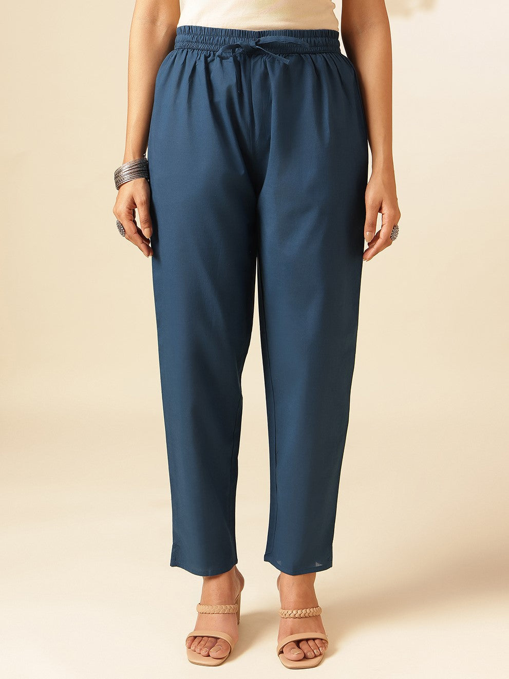 Indigo Blue Cotton Geometric Print Anarkali Kurta Set