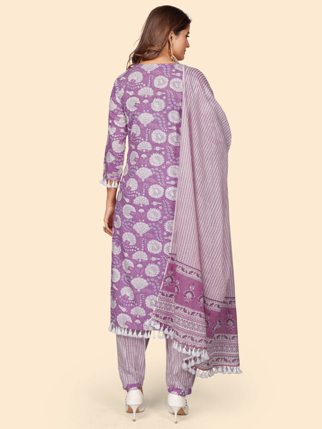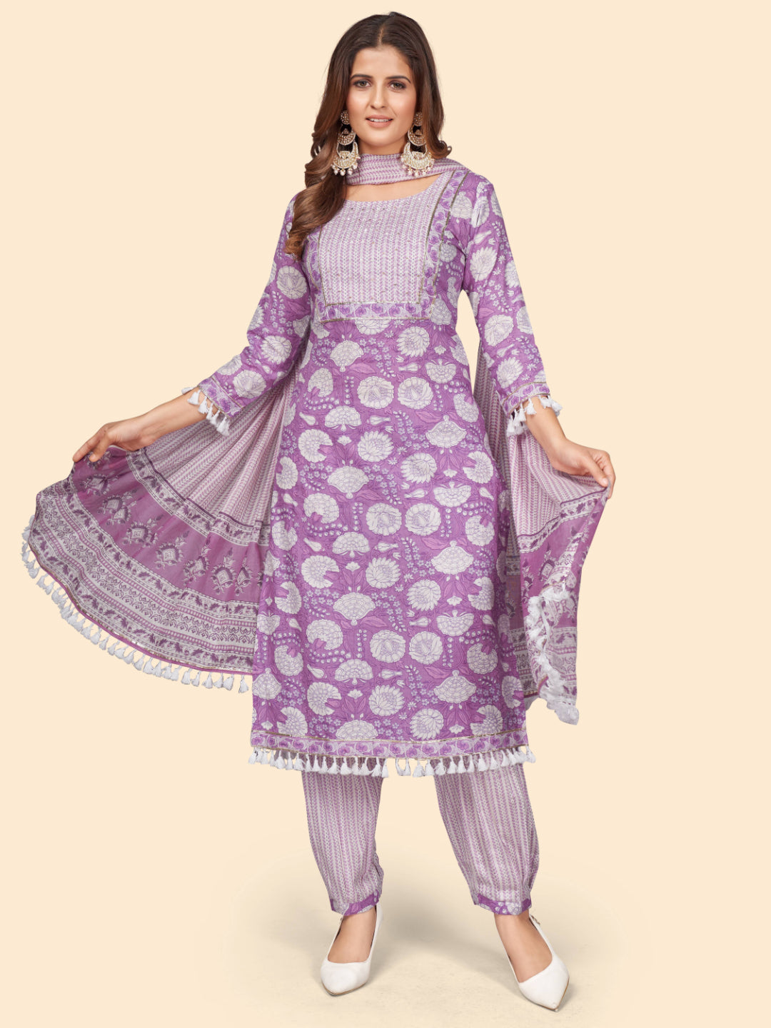 This Lavender Sequience Straight Cotton Kurta Set is perfect for both casual and office wear. It is made from cotton fabric, giving it a soft, lightweight feel. Its straight silhouette is classic and stylish, and the lavender color is sure to turn heads.