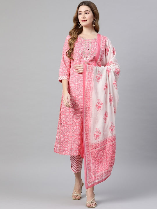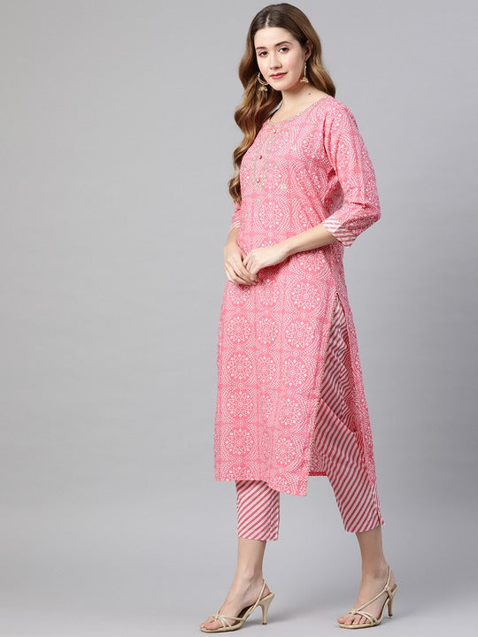 Be bold and embrace feminine style in this Light Pink Embroidered Straight Cotton Kurta Set. Crafted with cotton fabric and a straight cut, it's perfect for building a look that captures your unique personality. Walk the path less travelled and make a statement for casual or office wear!