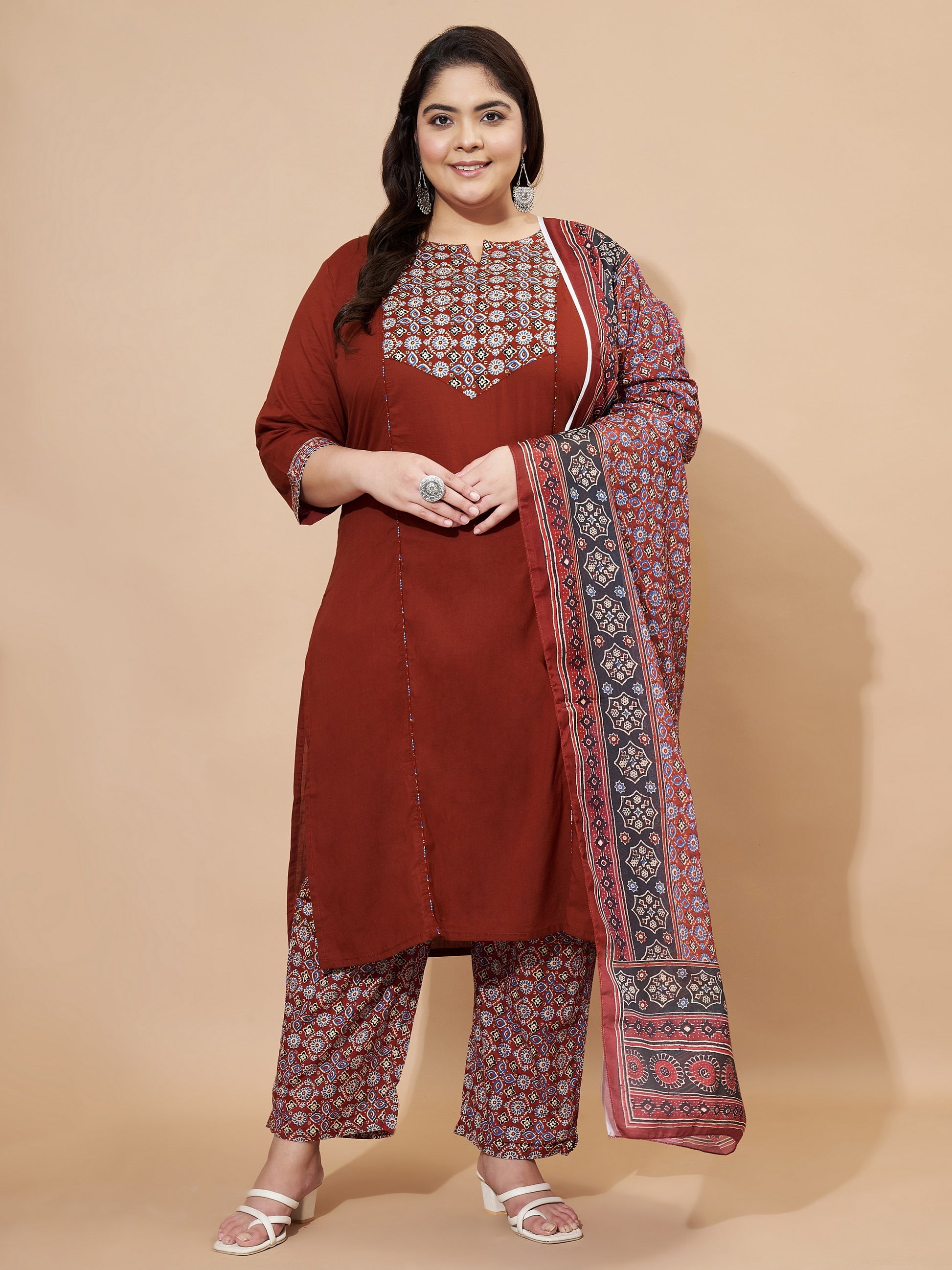 Get ready to bloom in style with our Maroon Floral Print Cotton Stitched Kurta Set! This quirky and playful outfit features a stunning maroon floral print on soft, comfortable cotton fabric. Perfect for any occasion, this kurta set will have you feeling confident and chic all day long!