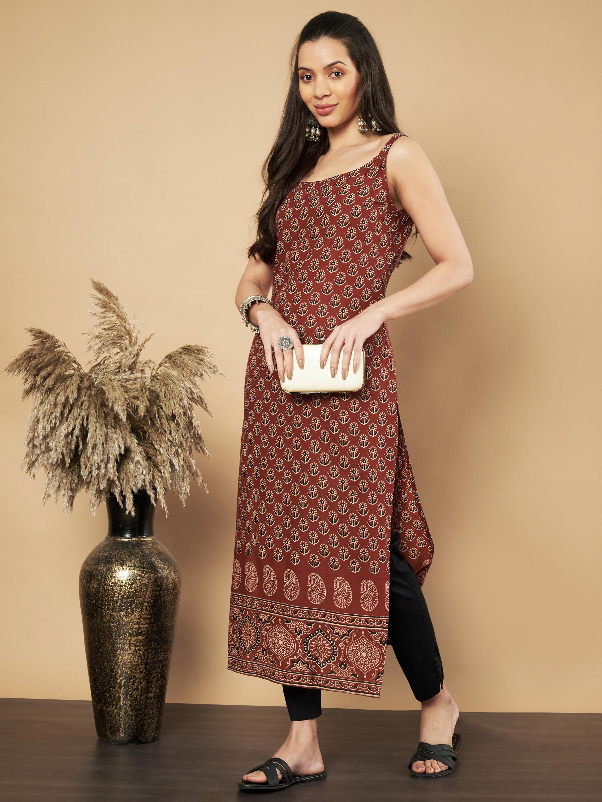 Embrace your boho style with our Maroon Floral Print Straight Cotton Kurta. This kurta features a beautiful floral print that adds a touch of femininity to the classic straight silhouette. Made with soft cotton, this kurta is perfect for everyday wear and can be dressed up or down for any occasion.