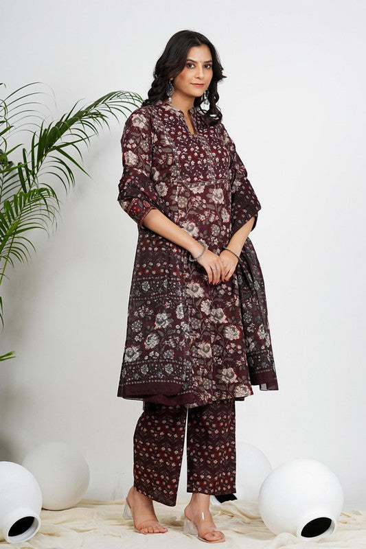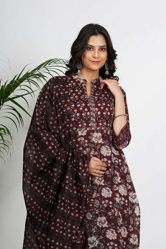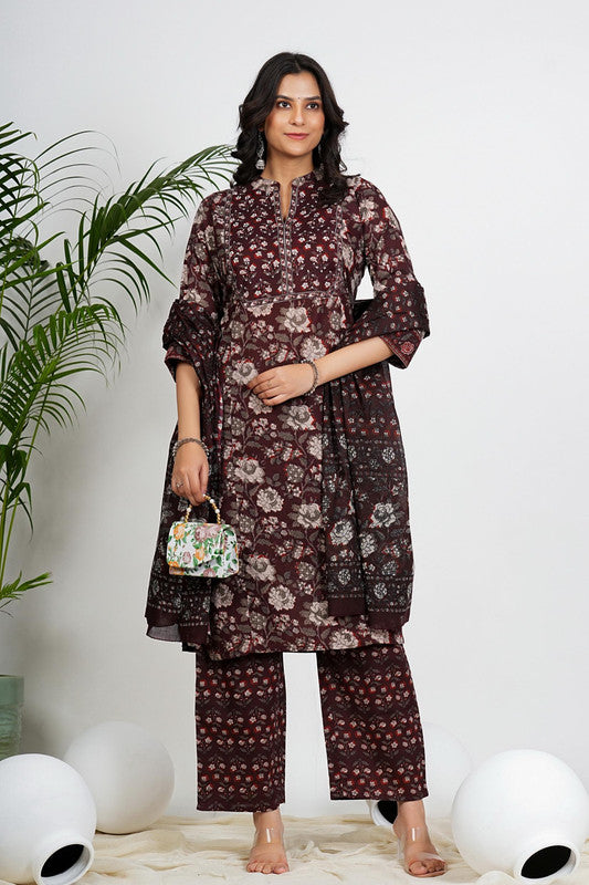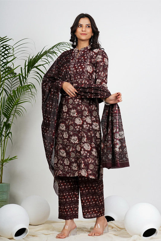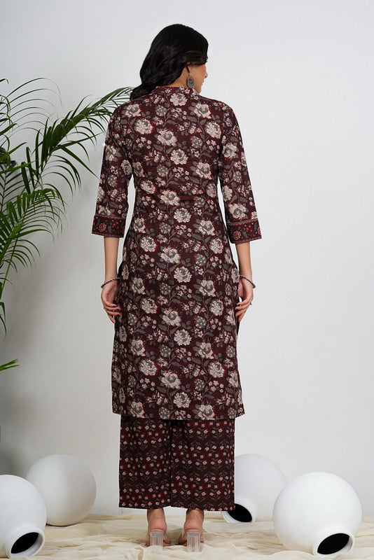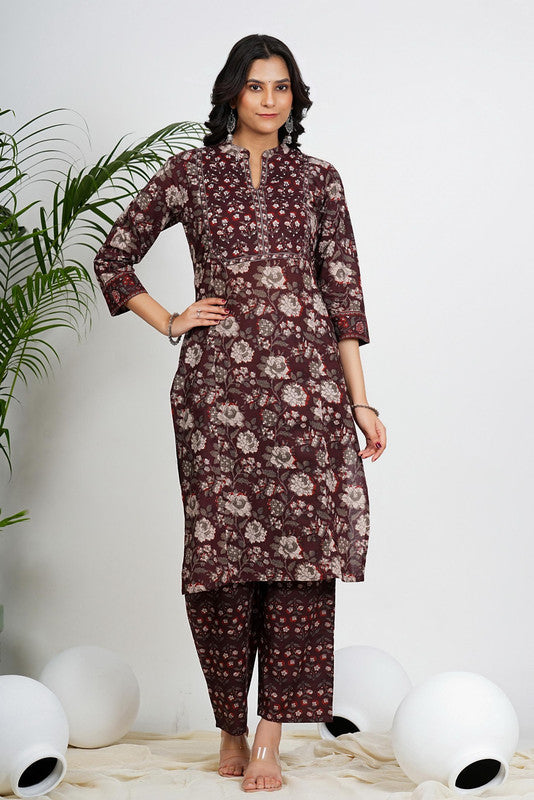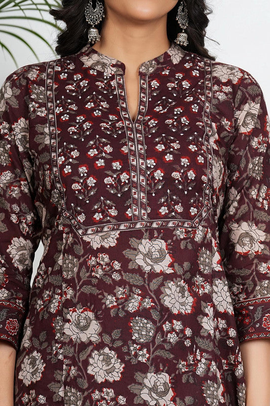 Add some floral charm to your wardrobe with this Maroon Floral Print Straight Cotton Kurta Set. Made from soft and breathable cotton, this set features a flattering straight cut kurta with a stylish floral print design. Perfect for any casual or formal occasion, this kurta set will have you looking and feeling stylish and comfortable.