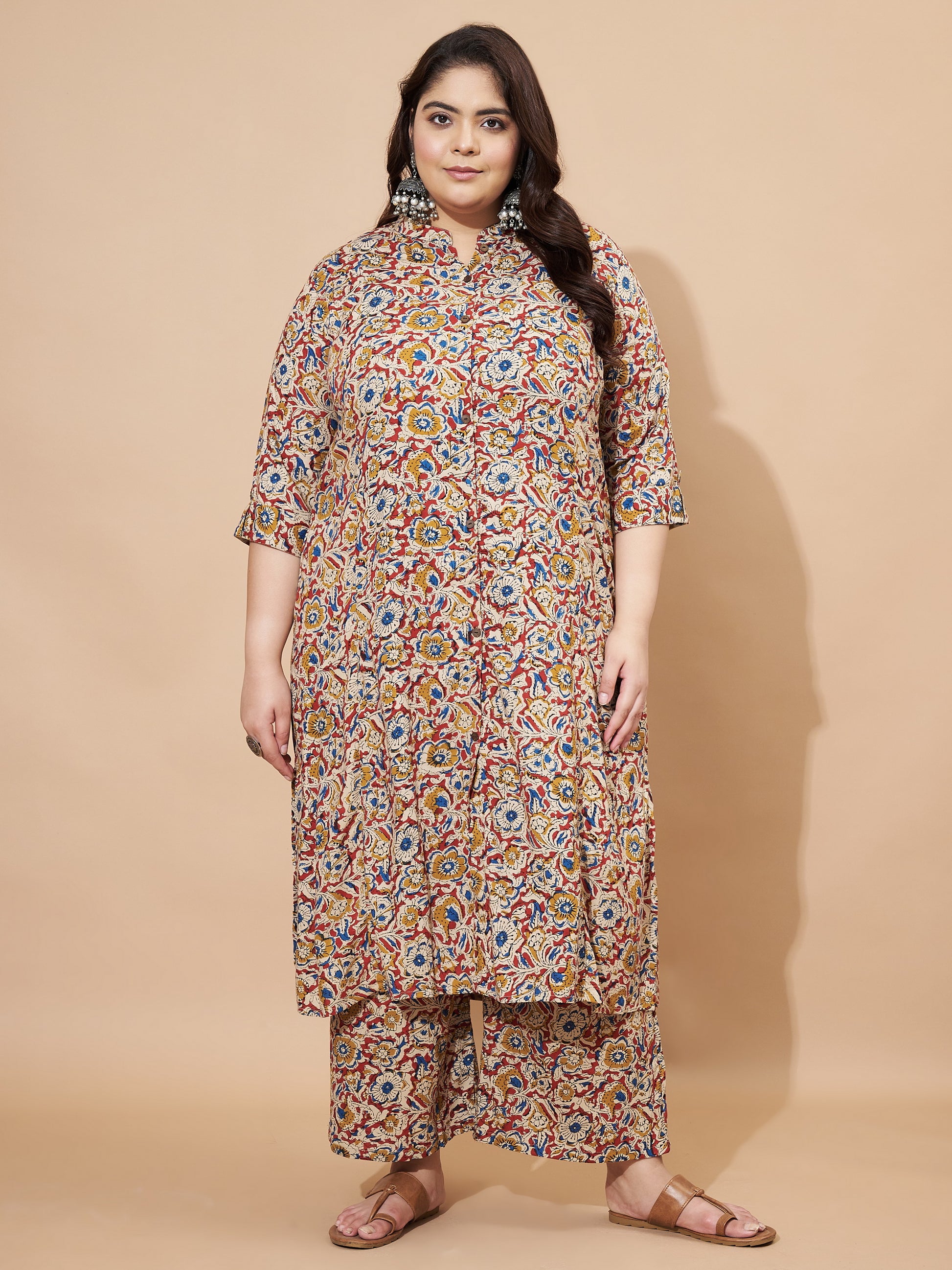 Maroon Rayon Floral Printed A-Line Co-Ord Set