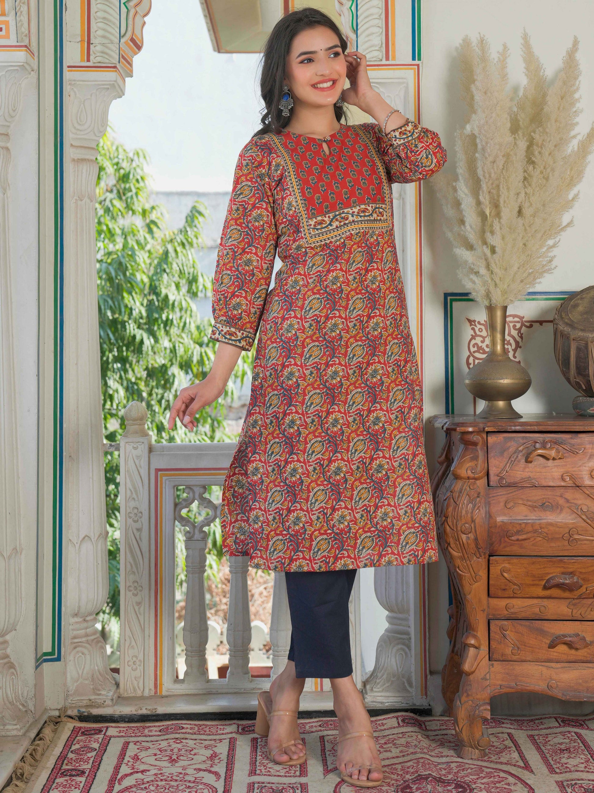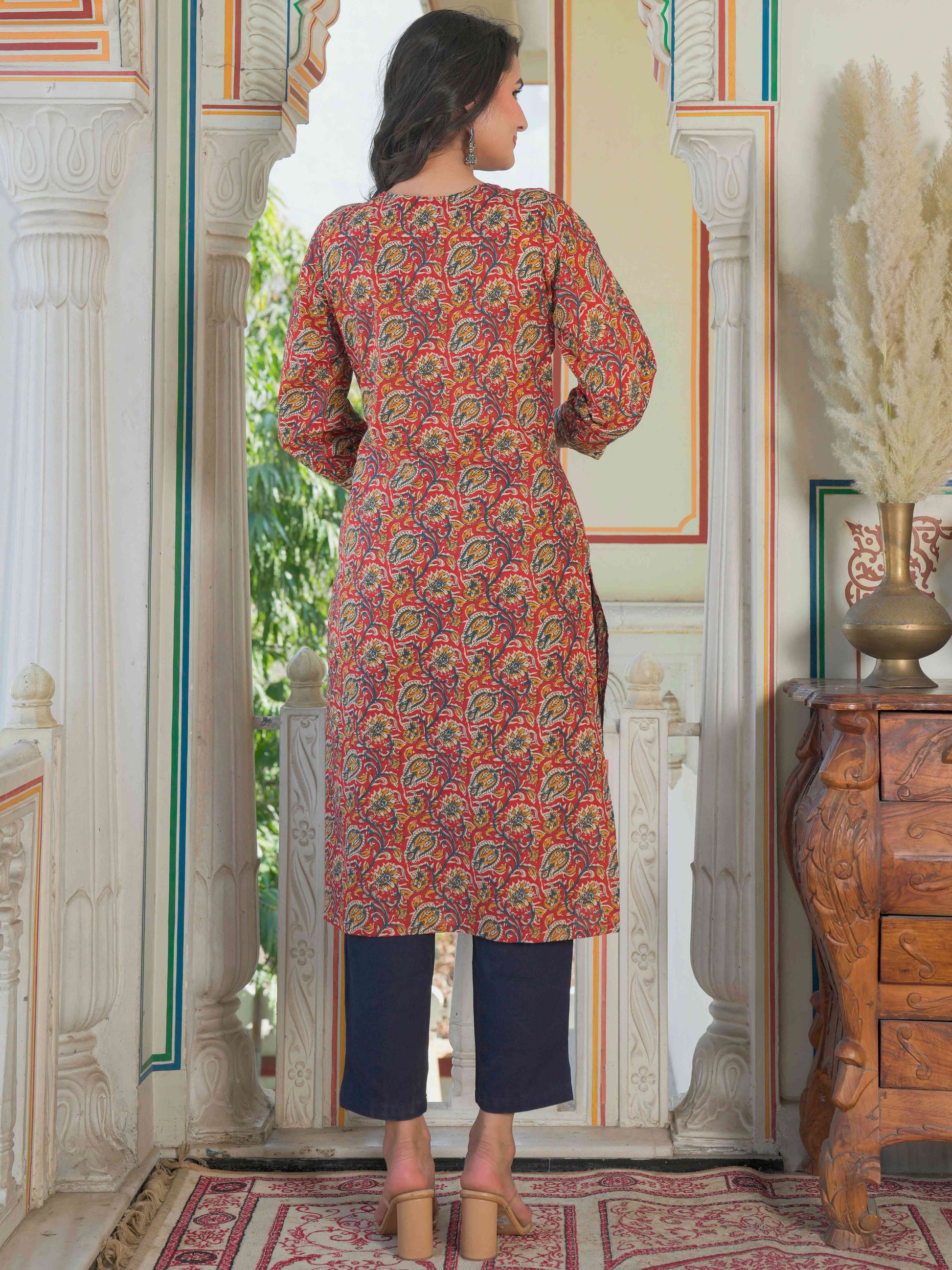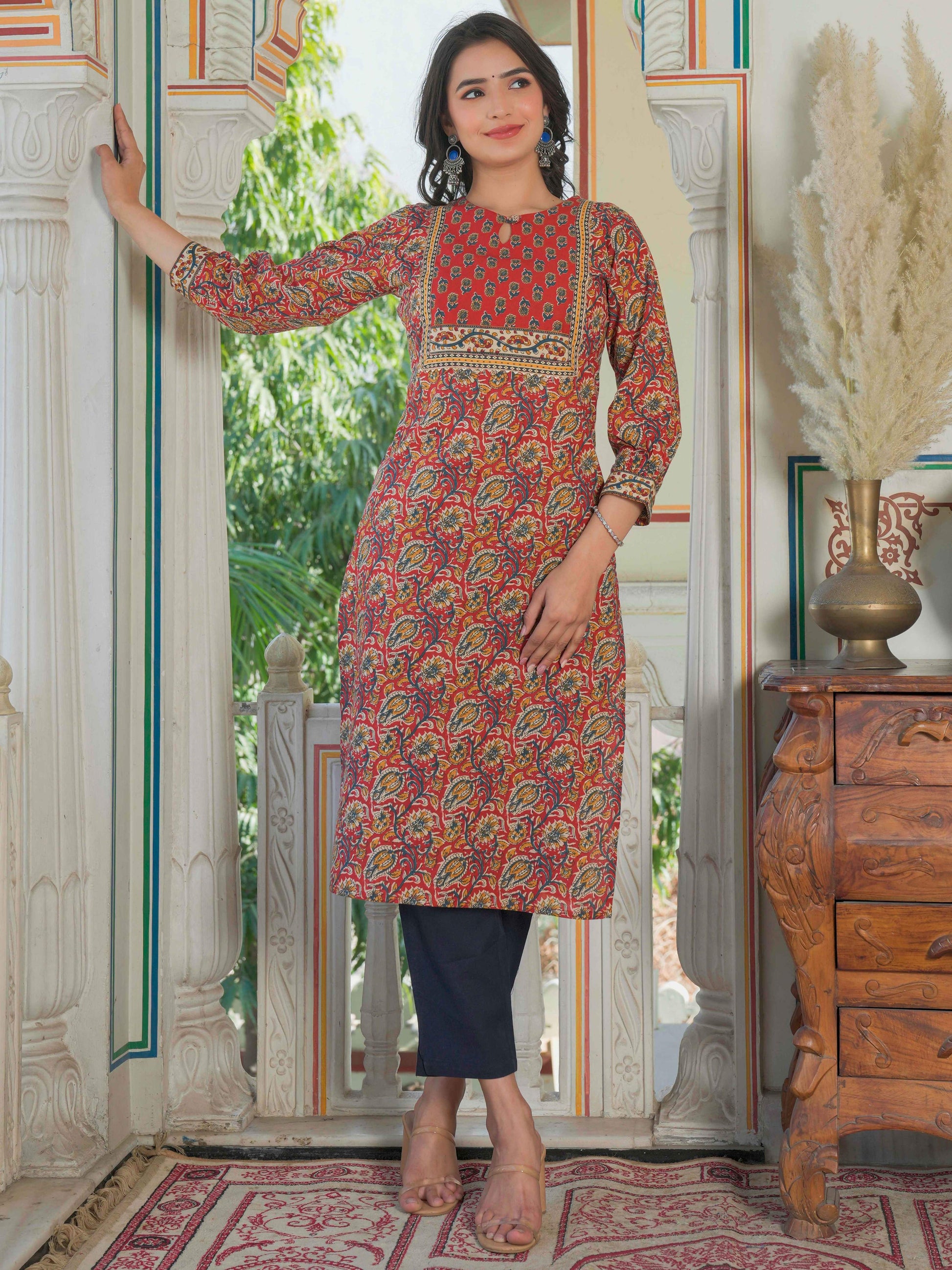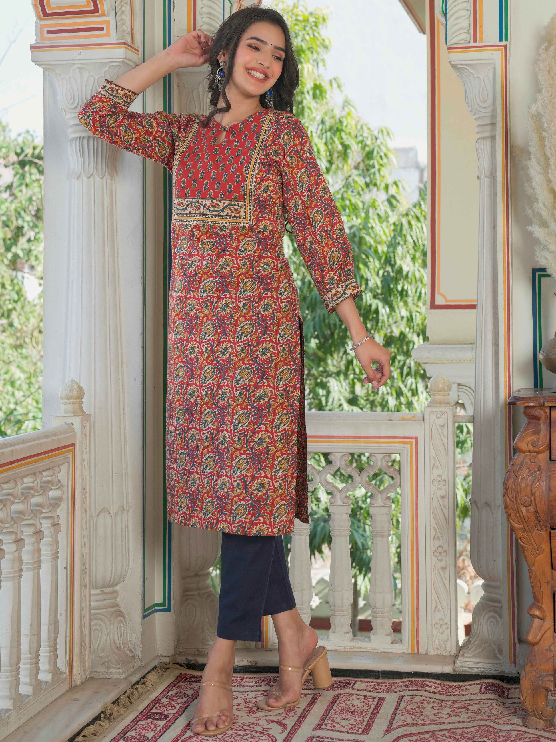 Introducing our Maroon Straight Printed Cotton Kurta - the perfect addition to your wardrobe! Made with high-quality cotton, this kurta boasts a unique print that is sure to make a statement. Stay comfortable and stylish in this quirky (and totally cool) kurta.