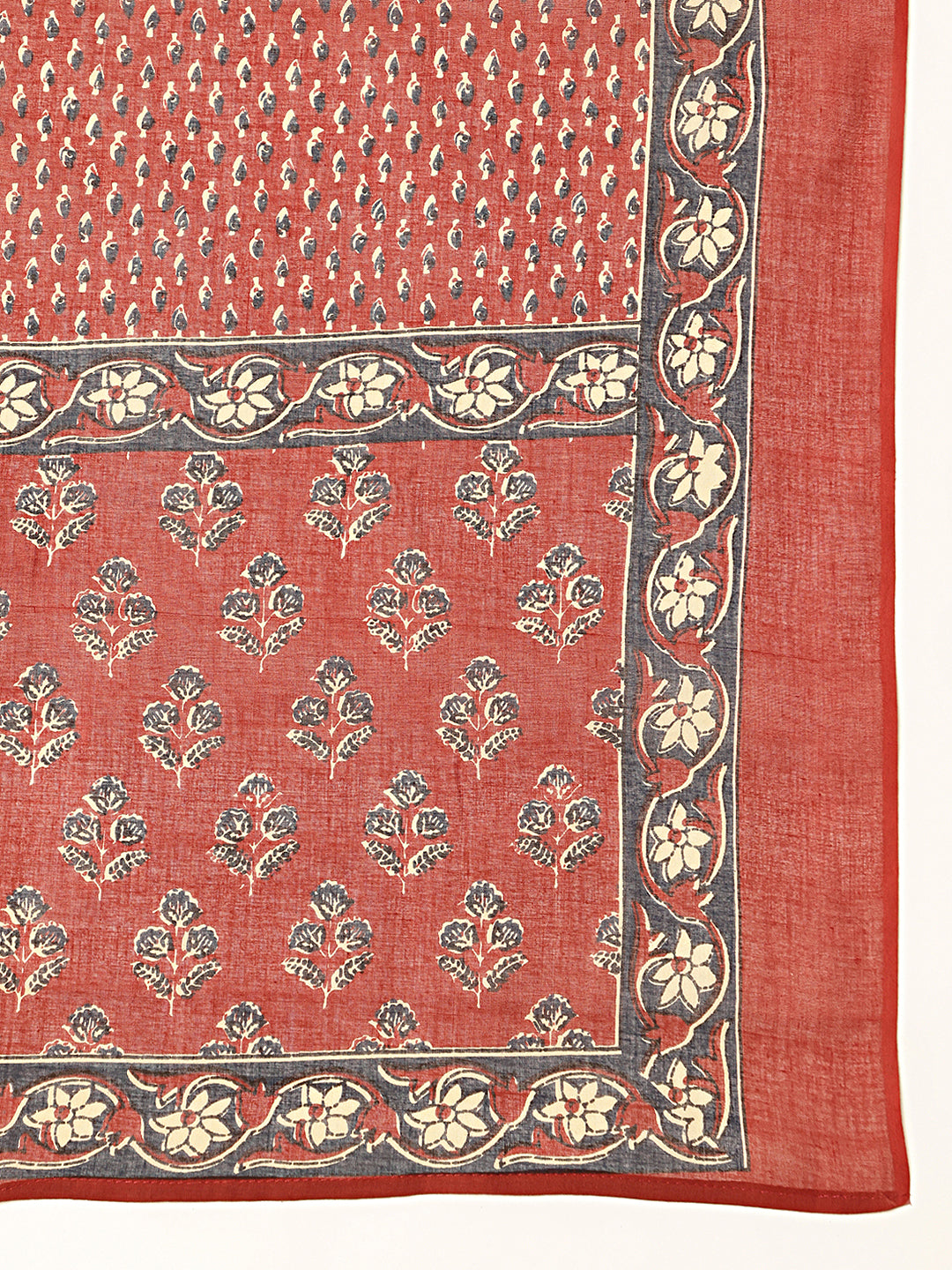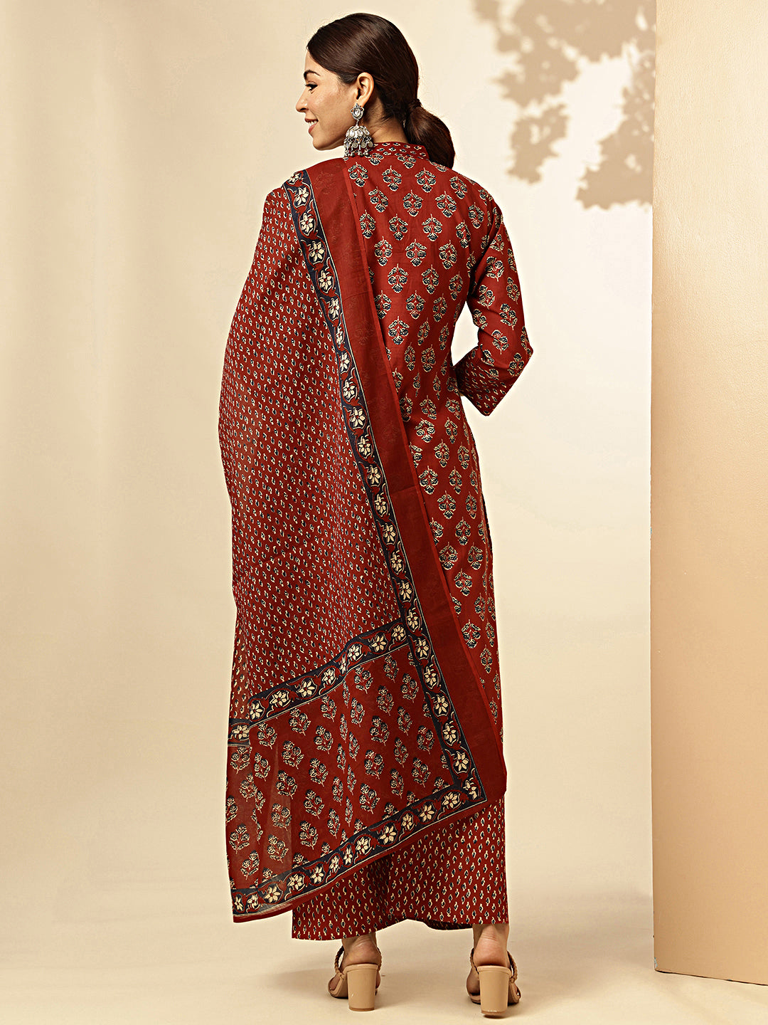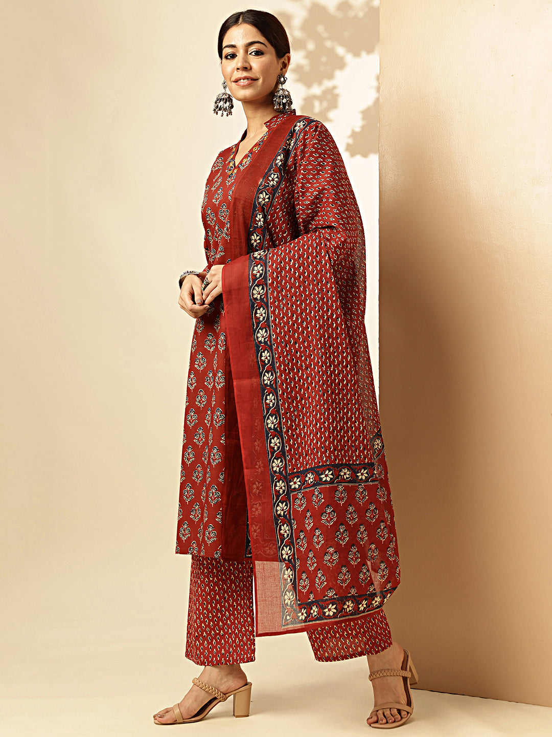 Maroon Floral Printed Straight Cotton Stitched Kurta Set