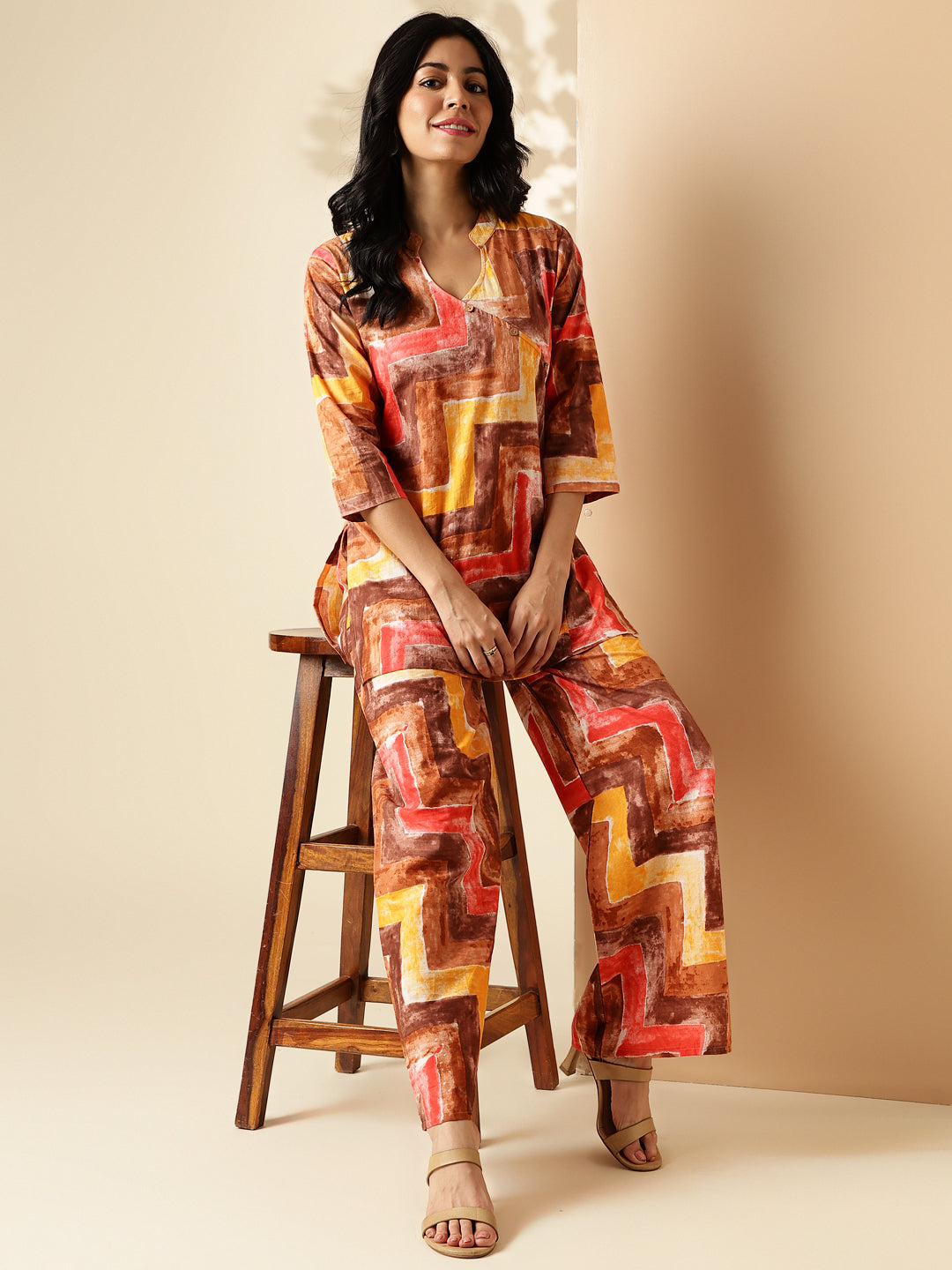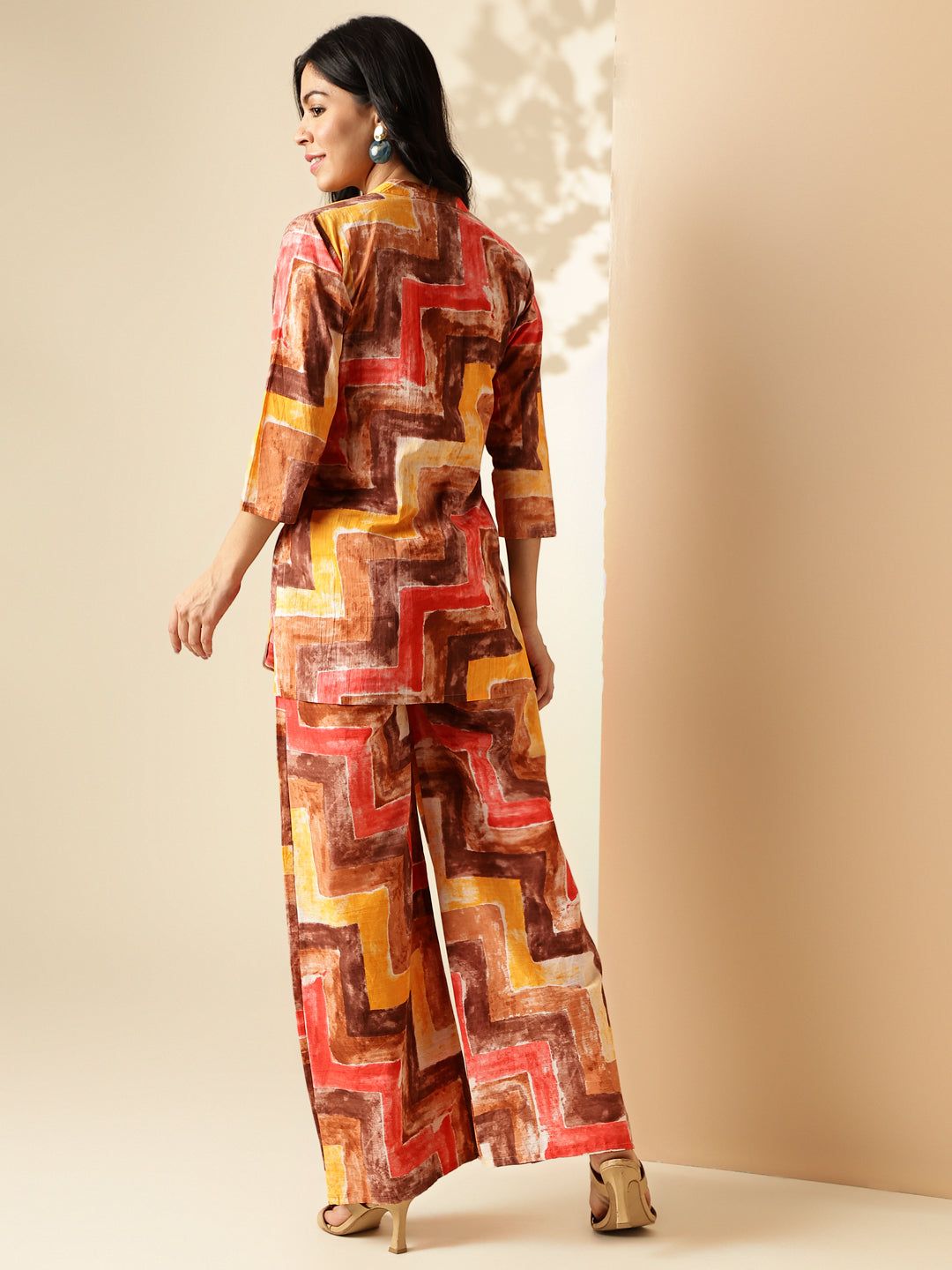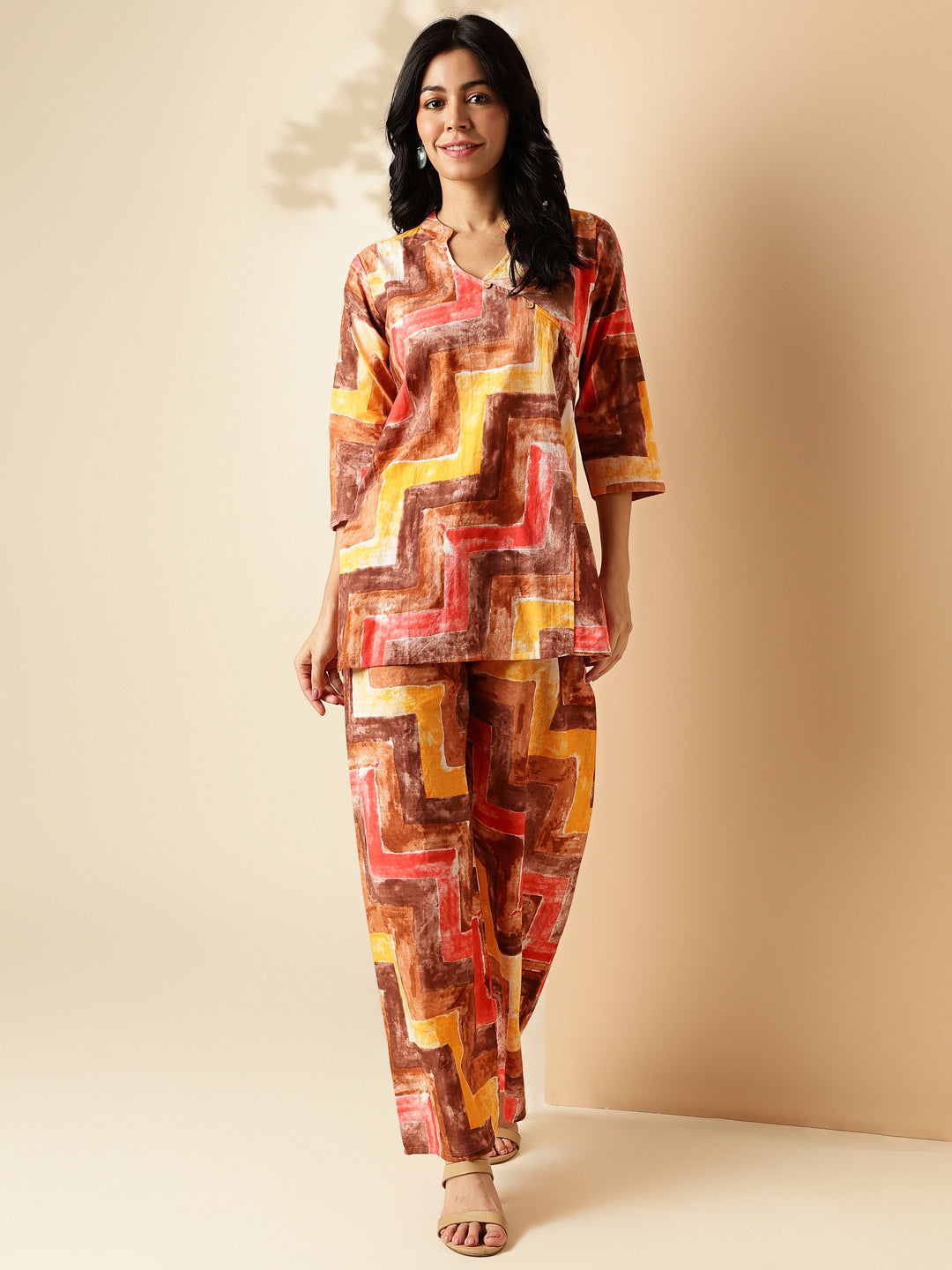 Multi Color Geometric Print Straight Cotton Co-Ord Set