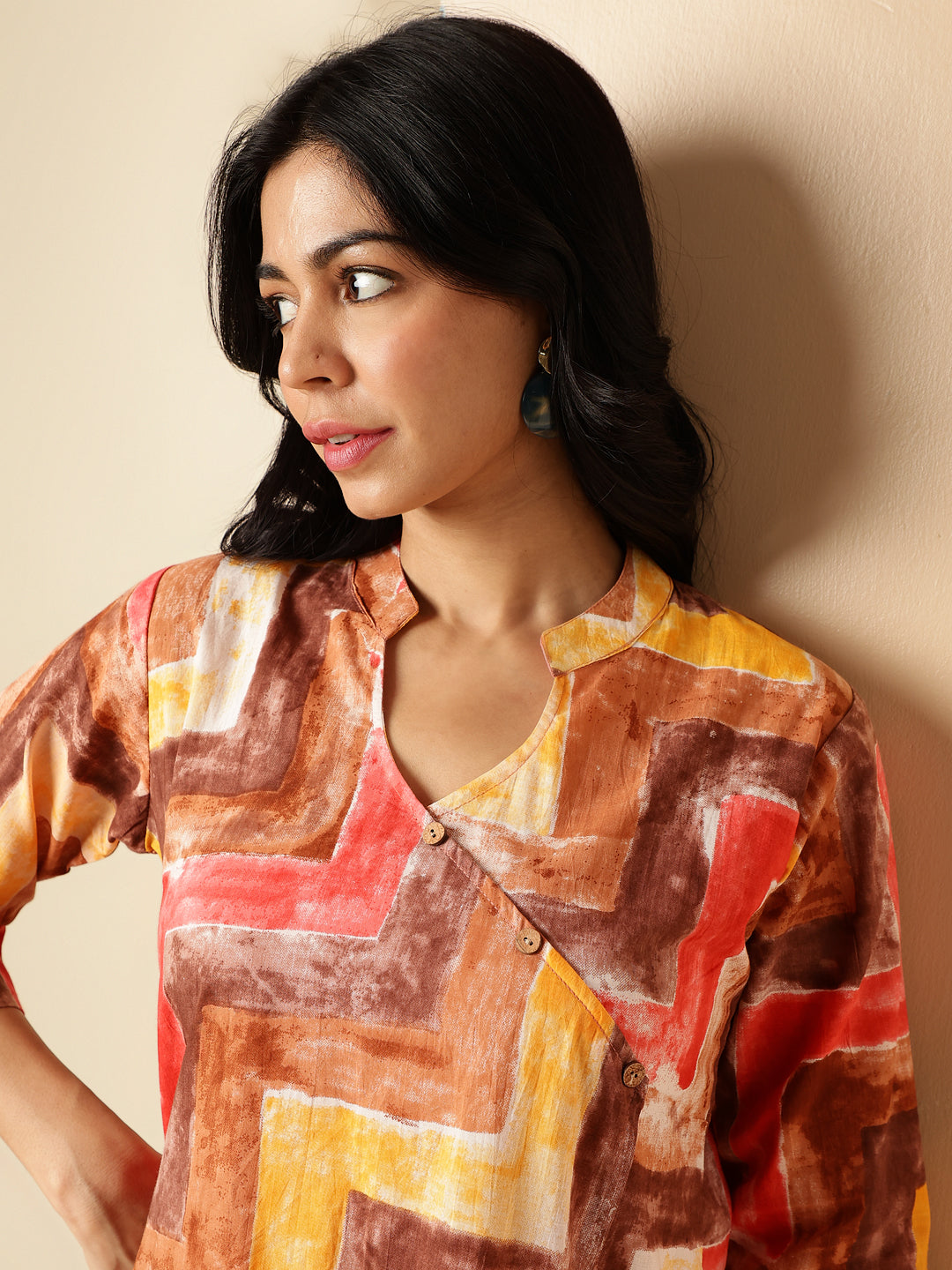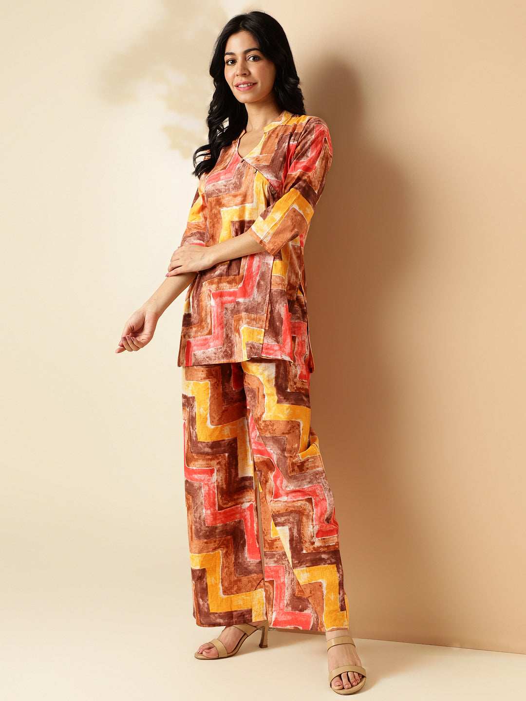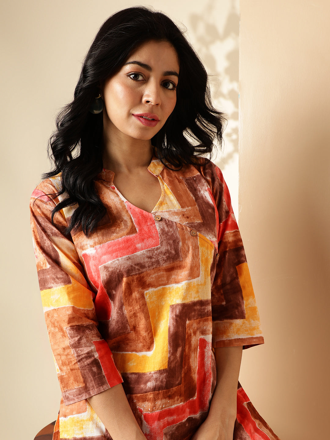 Multi Color Geometric Print Straight Cotton Co-Ord Set