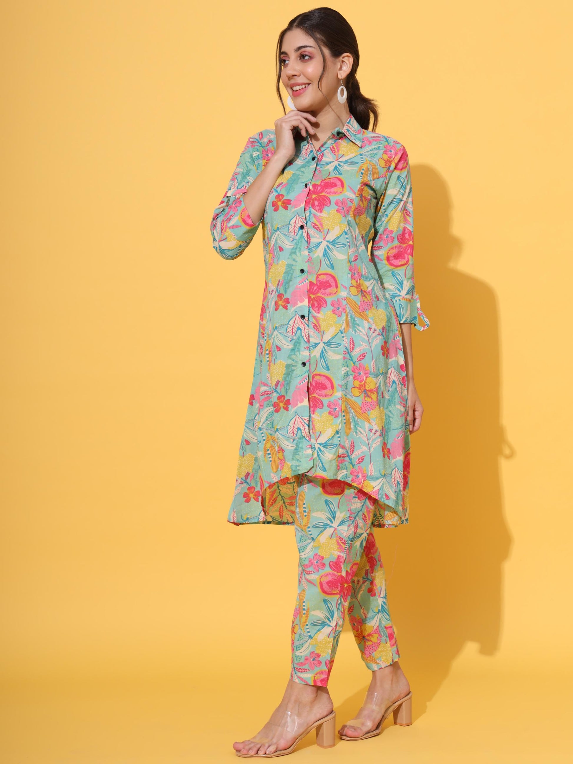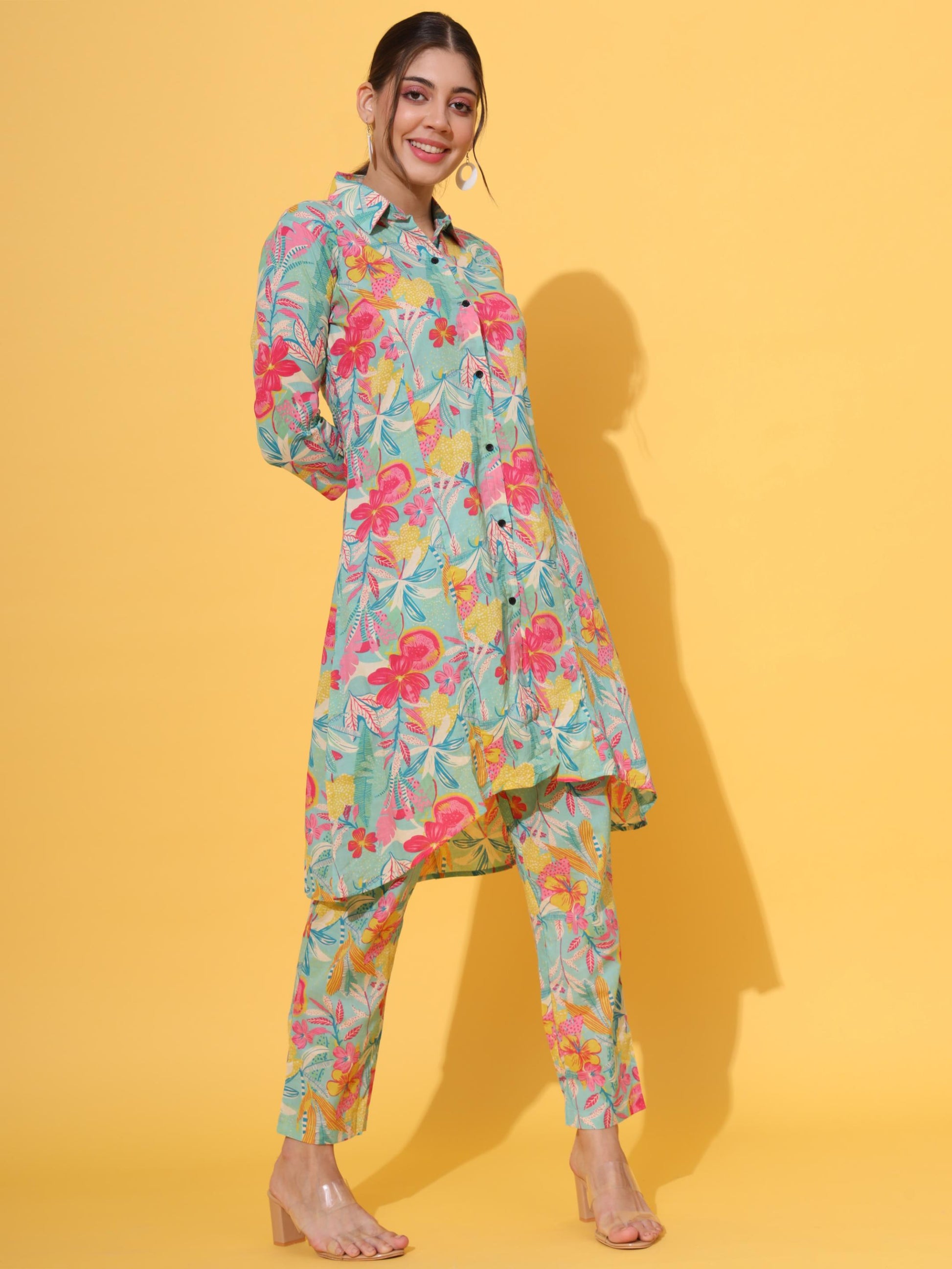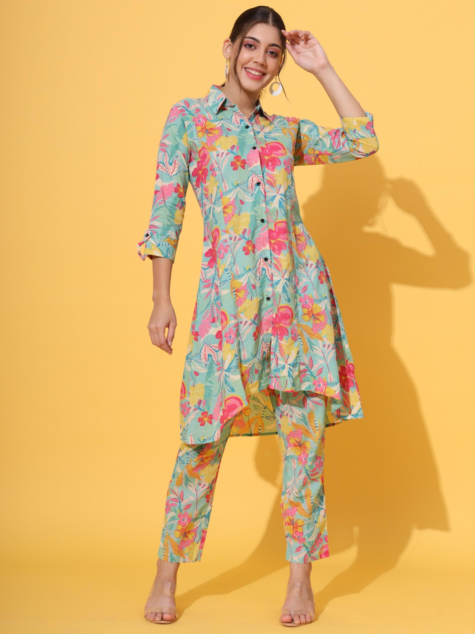 Experience clothing freedom with our Multicolor Cotton Co-Ord Set! This A-line two-piece will have you feeling playful and fashionable while you stay comfortable. Perfect for a casual day out, you'll be looking good and feeling good! So what are you waiting for? Step out in style!