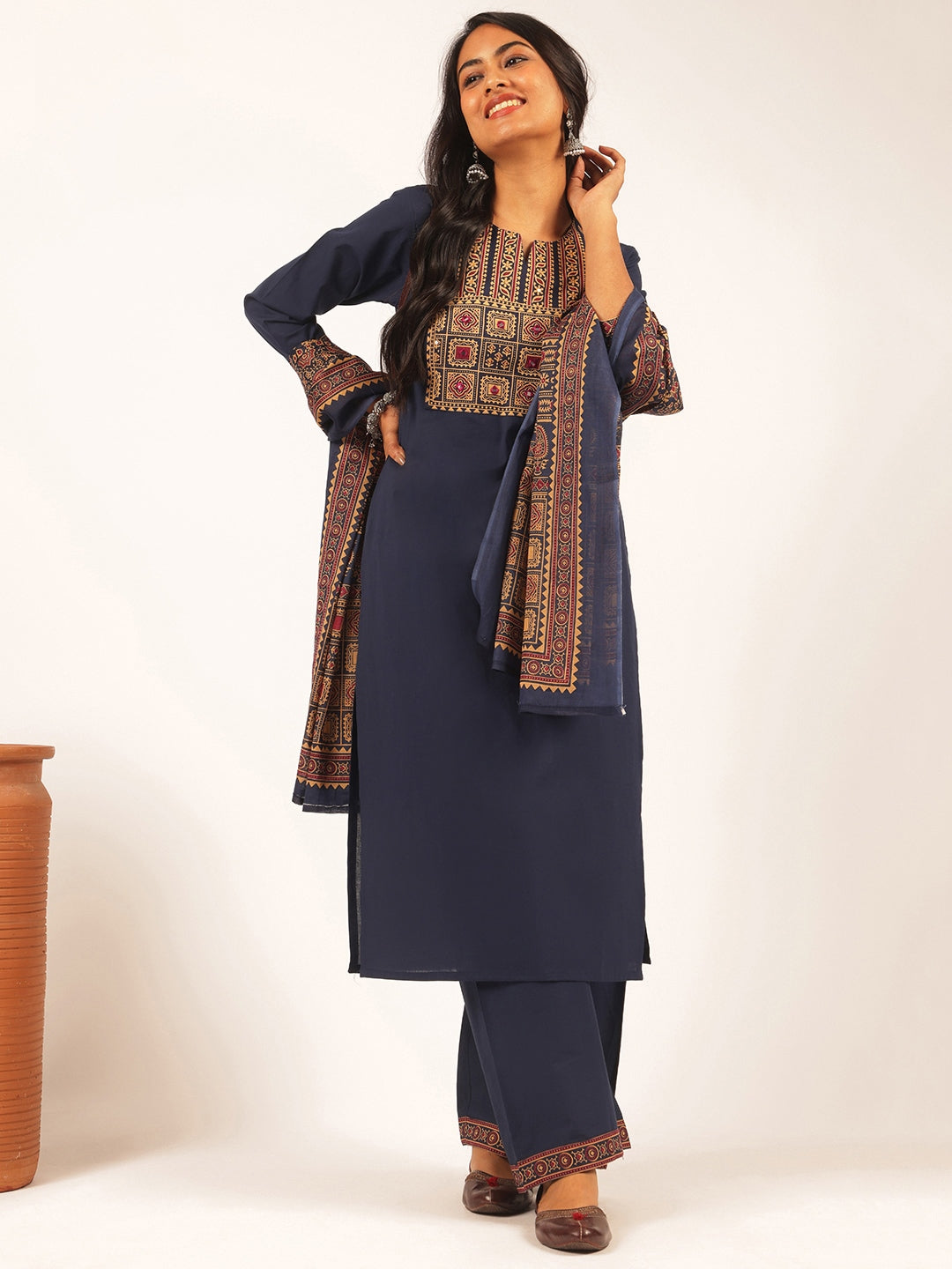 Stay cool and stylish in this Navy Blue Cotton Kurta Set. Made with high-quality cotton, it provides breathability and comfort. Perfect for any occasion, its solid color and straight cut design exudes a timeless charm. Elevate your wardrobe with this must-have piece.