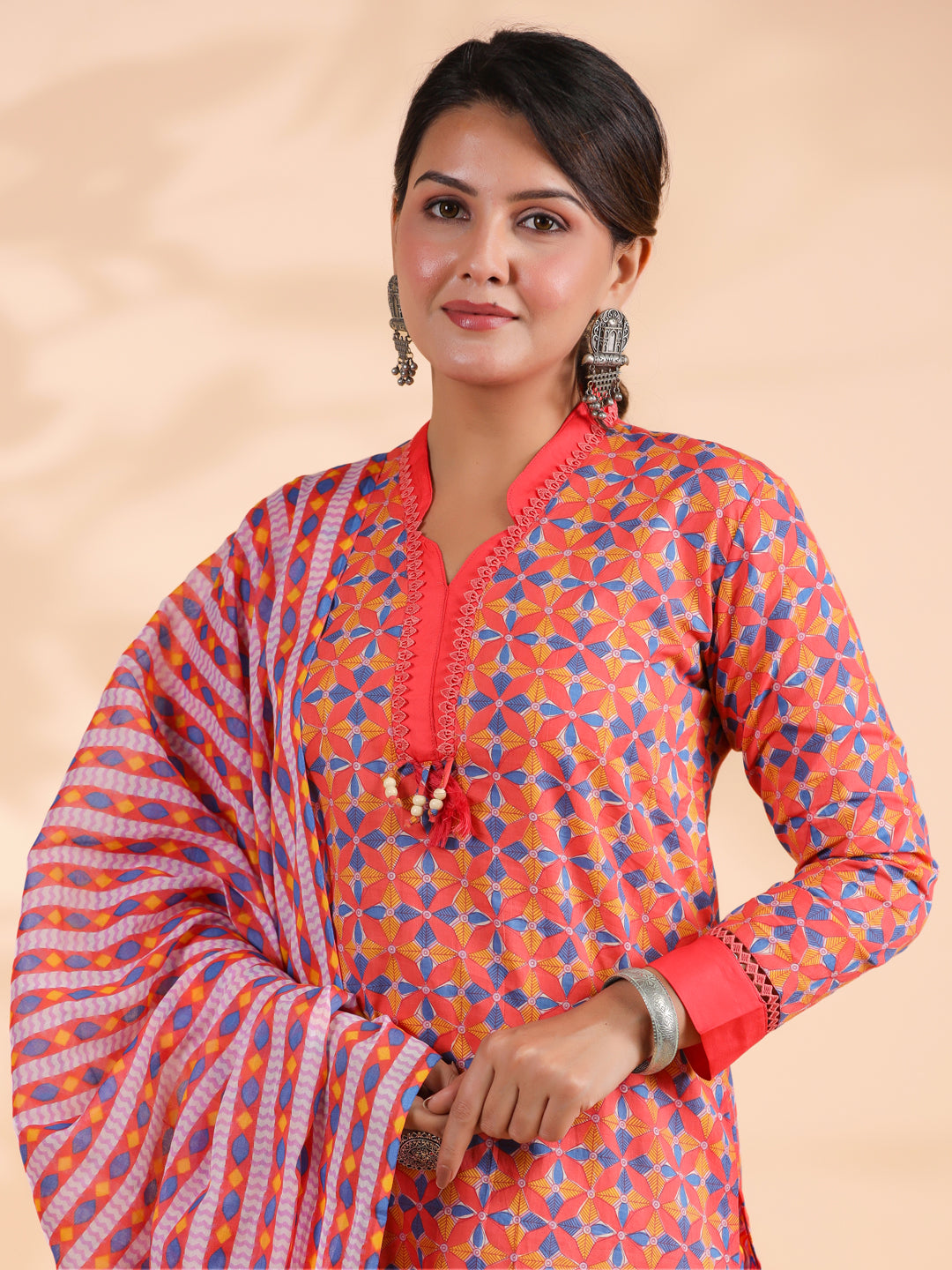 Get ready to make a colorful statement with our Orange Colorblock Print Straight Cotton Stitched Kurta Set! This vibrant ensemble is perfect for any occasion, adding a touch of fun and playfulness to your wardrobe. Made with soft and breathable cotton, you'll stay comfortable and stylish all day long. (Only available in orange. Sorry, the fruit sold separately!)