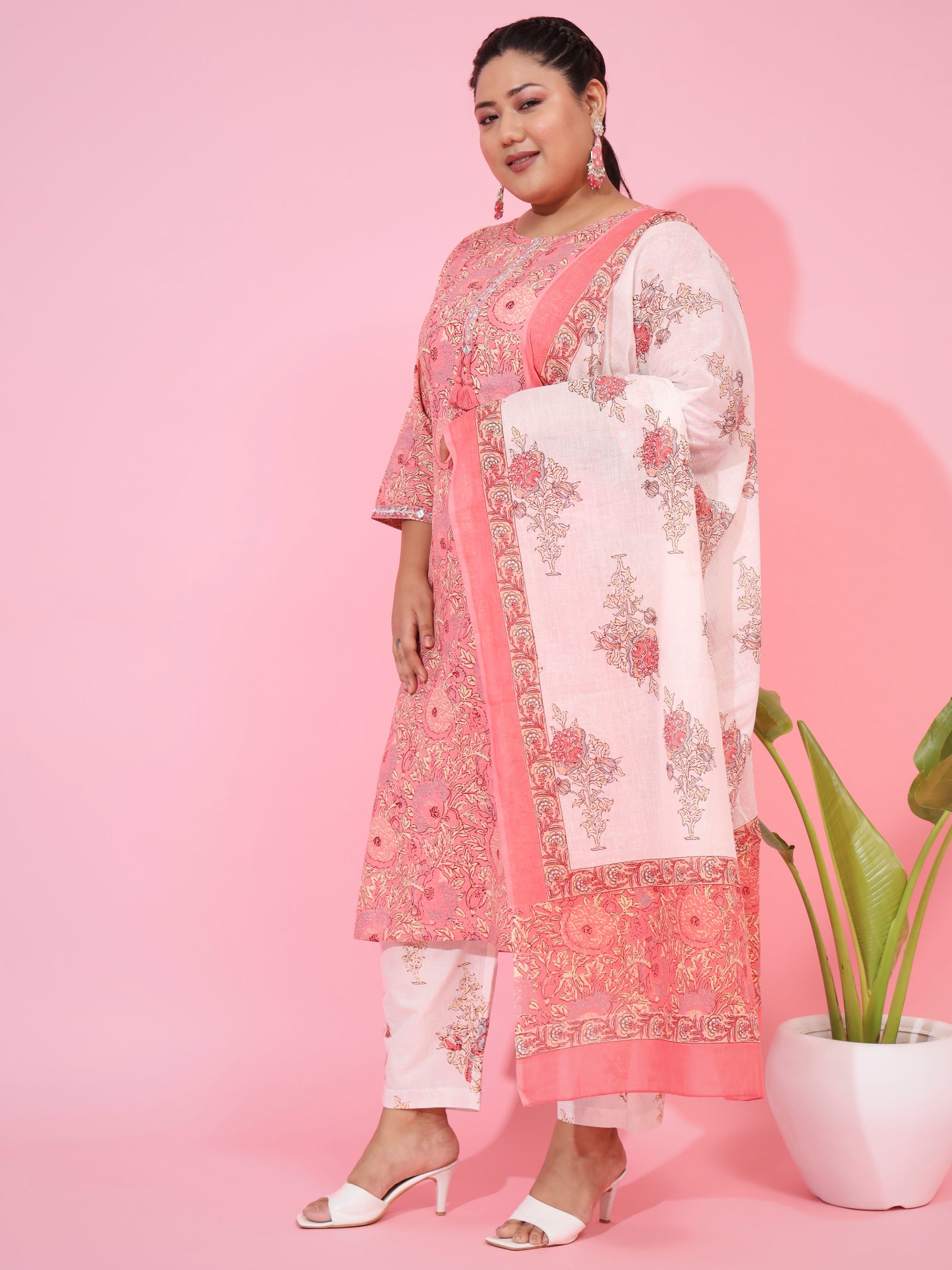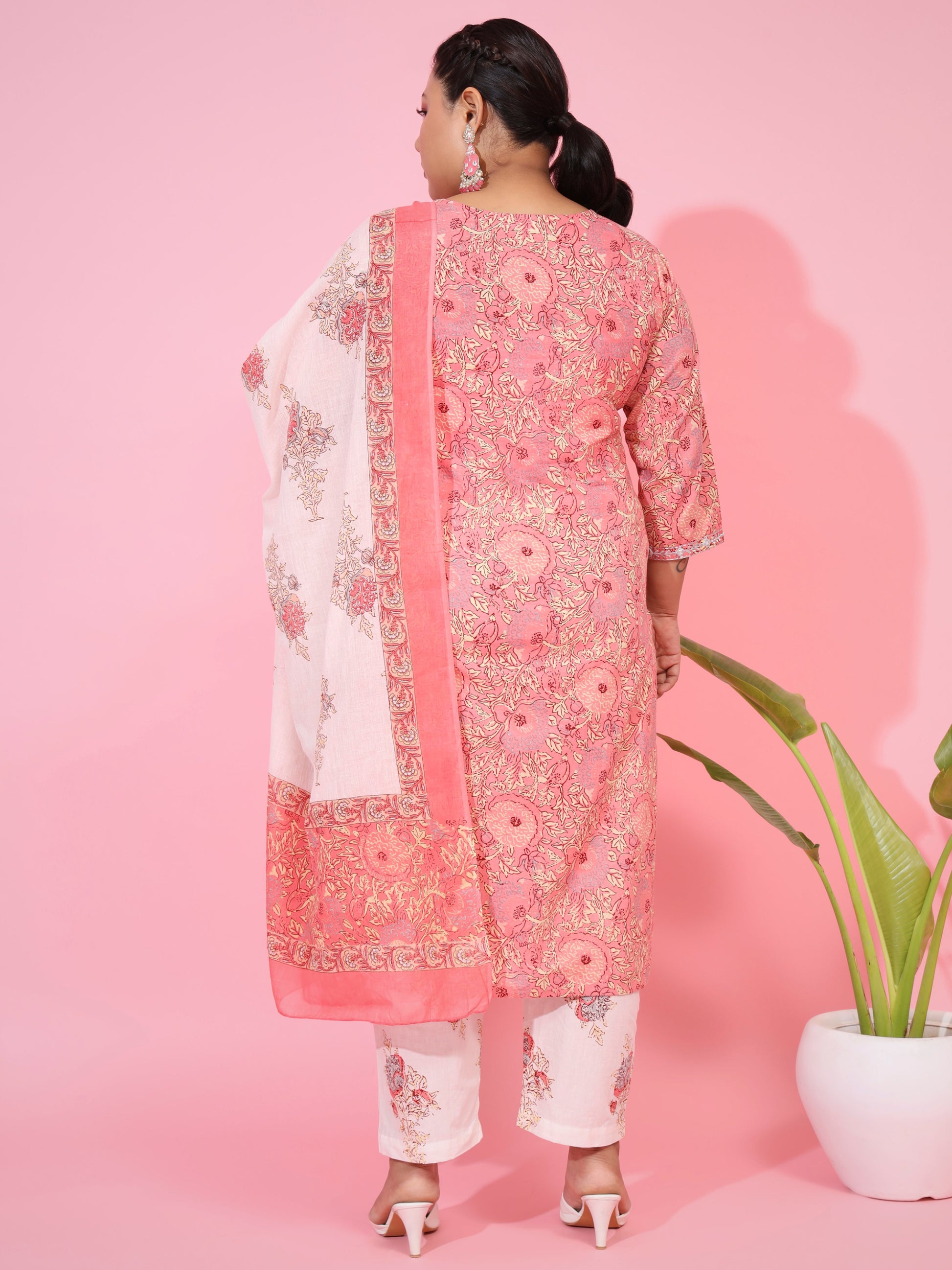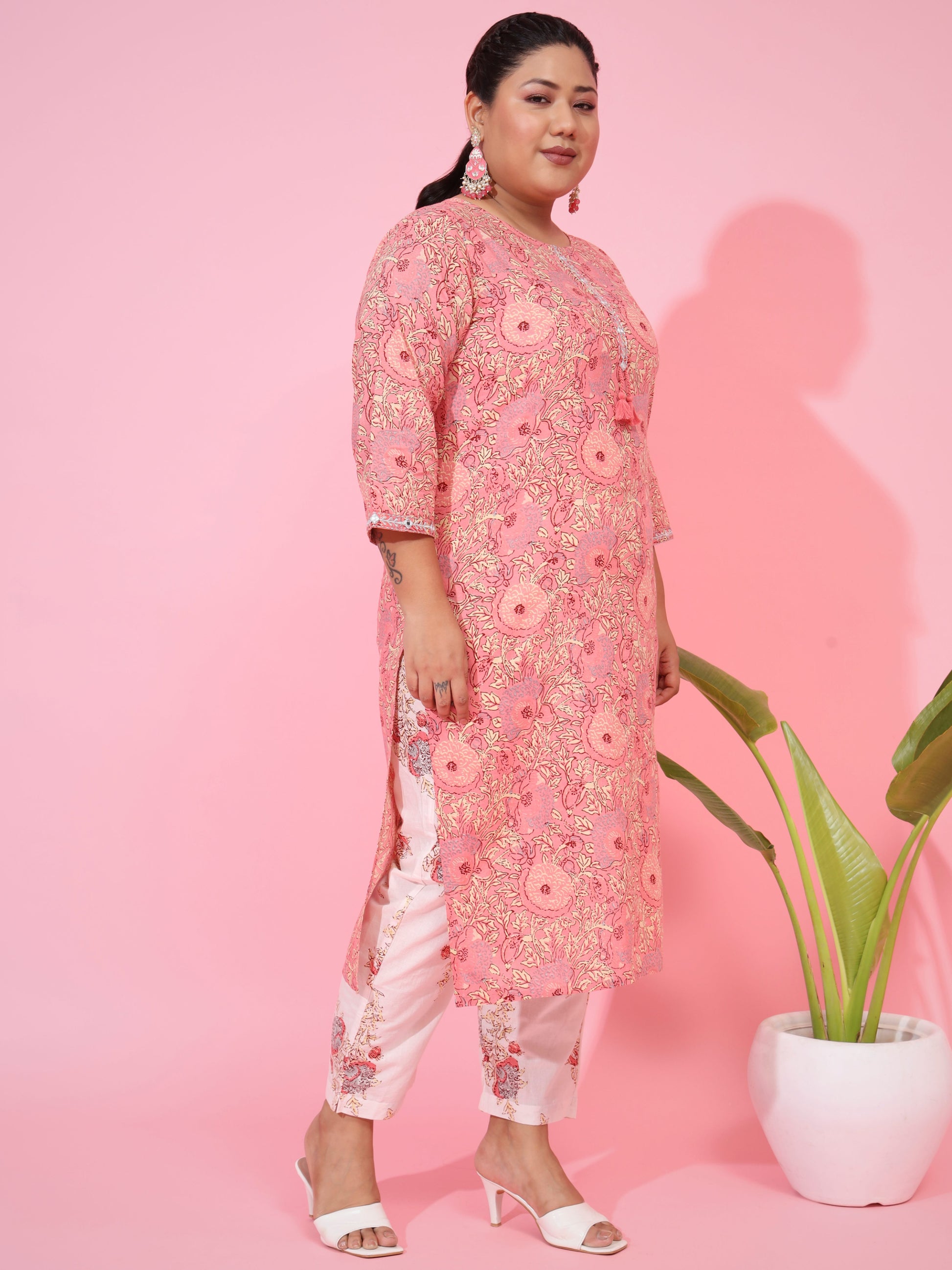 Look effortlessly stylish in Vbuyz Women's Cotton Pink Kurta Set. Crafted from soft cotton, the straight cut kurta features round neck, 3/4 sleeve, printed and embroidered details and side slit for added comfort. Style with high heels for a party-ready look.