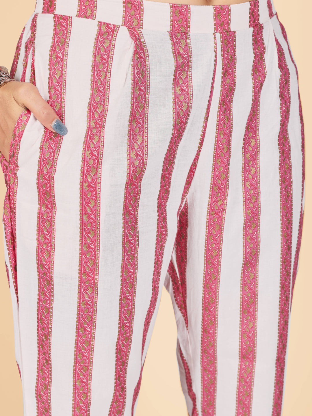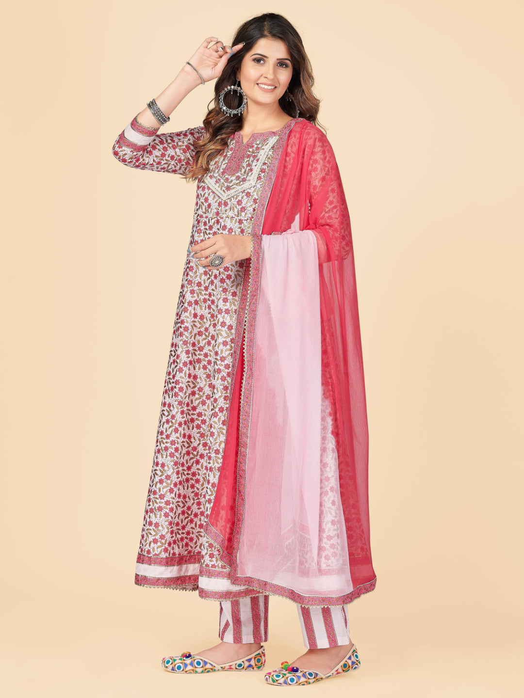 Brighten up your festivities in this Pink Embroidered Anarkali Kurta set! Crafted from cotton for a lightweight, breathable feel, this set will be the perfect choice for a festive day out. Fun and quirky prints add that unique finishing touch- you'll be sure to make a statement!