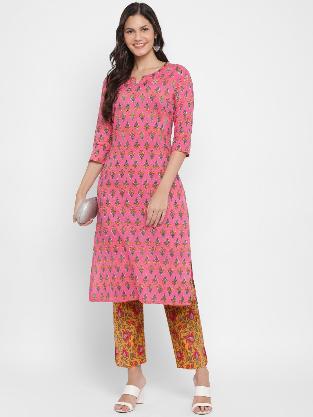 Look stylish yet comfortable by slipping into this vibrant pink kurta-pant set from our latest collection! Crafted from the finest quality of cotton, it features intricate embroidery that will give you an enviably sophisticated look. Perfect for any casual occasions, this kurta-pant set will make you look upmarket in no time.