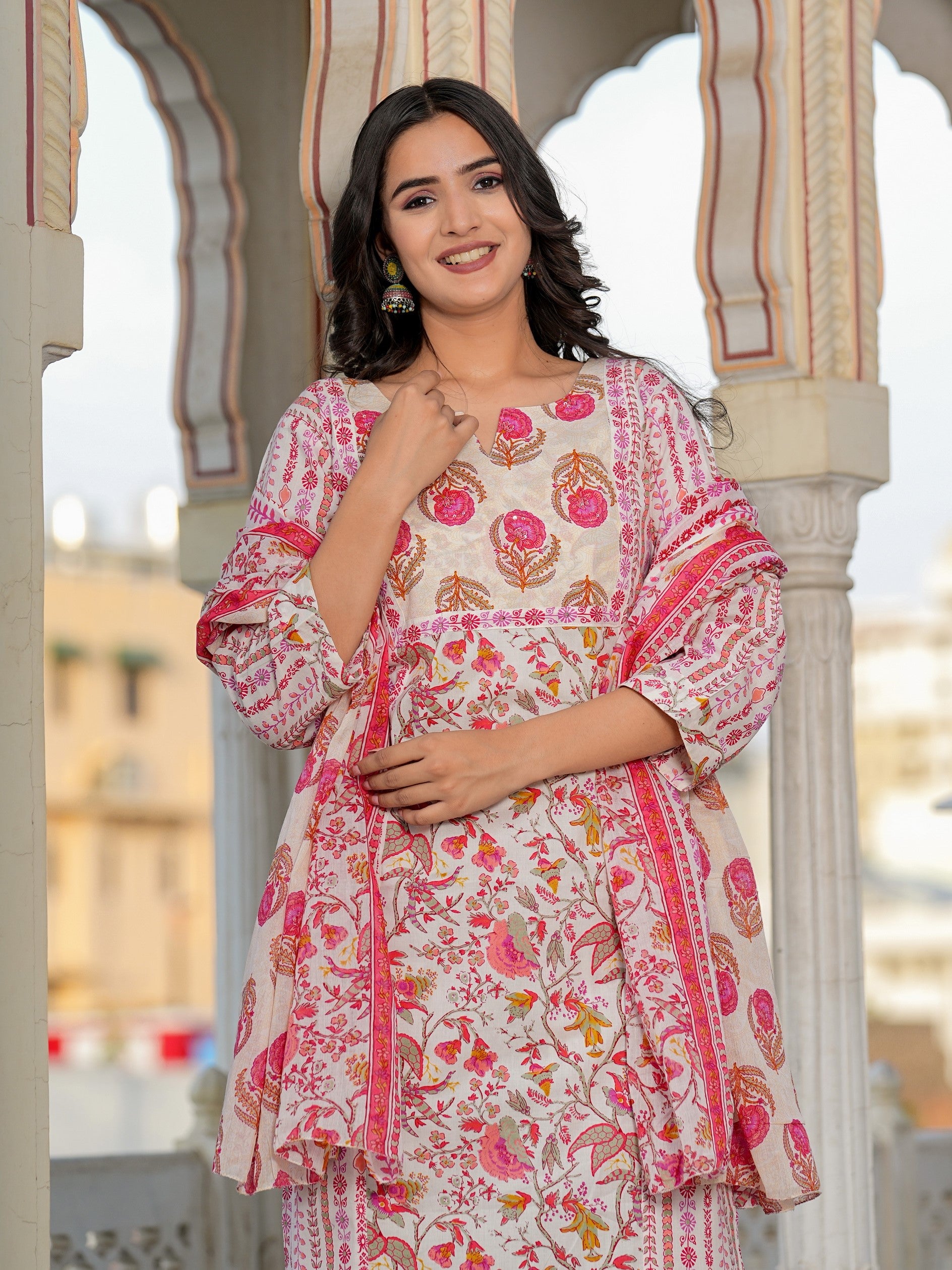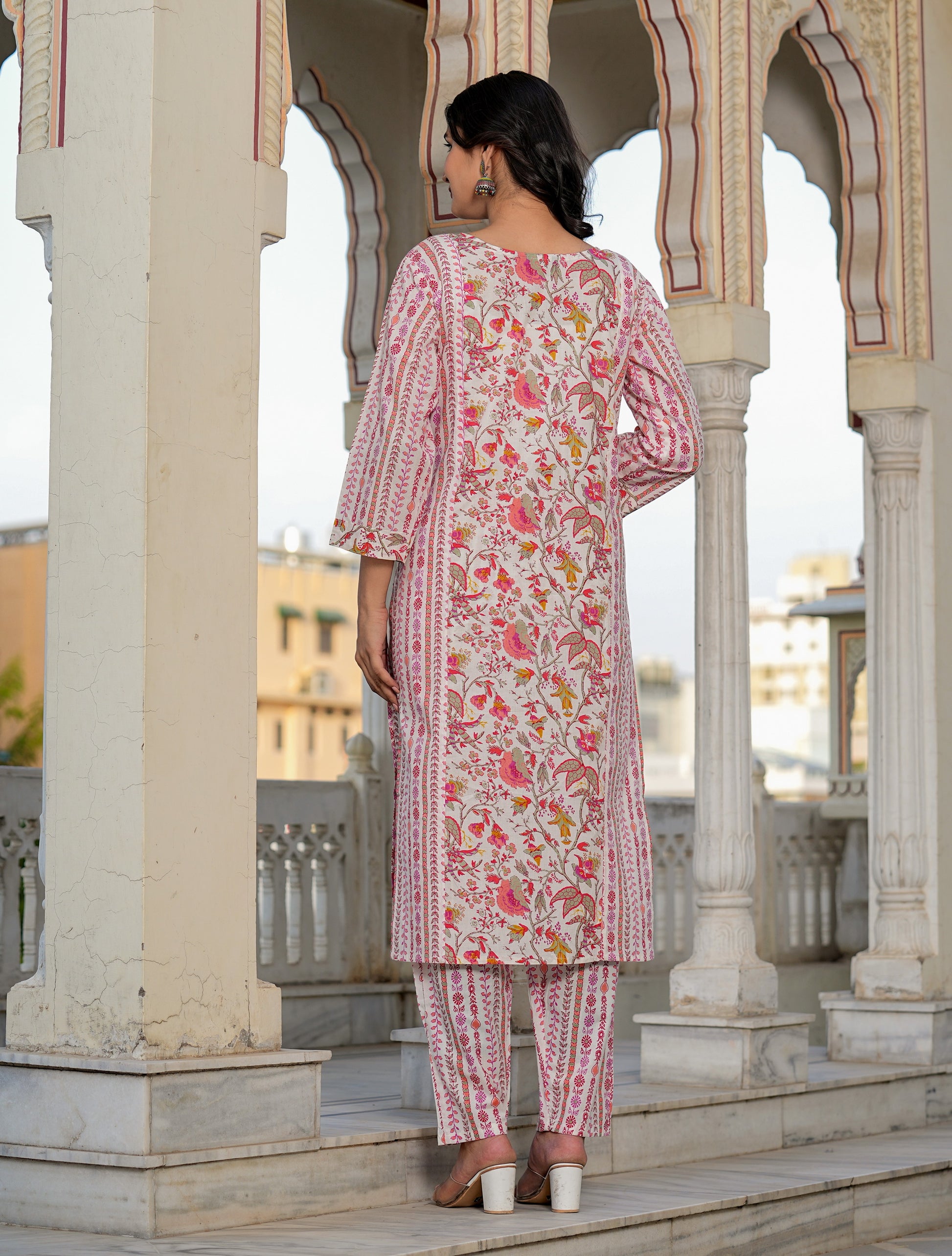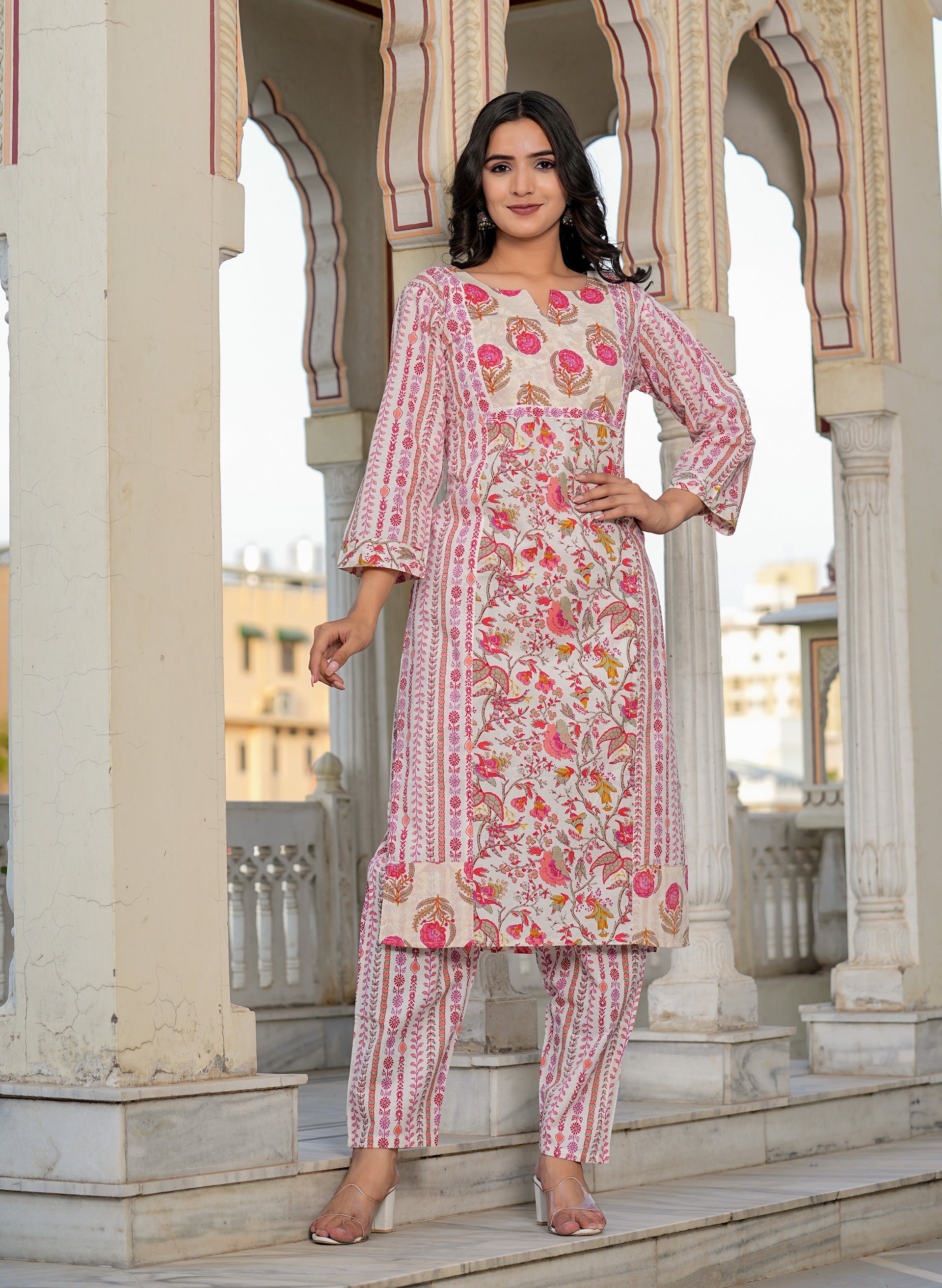 Pink Floral Printed Straight Cotton Kurta Set