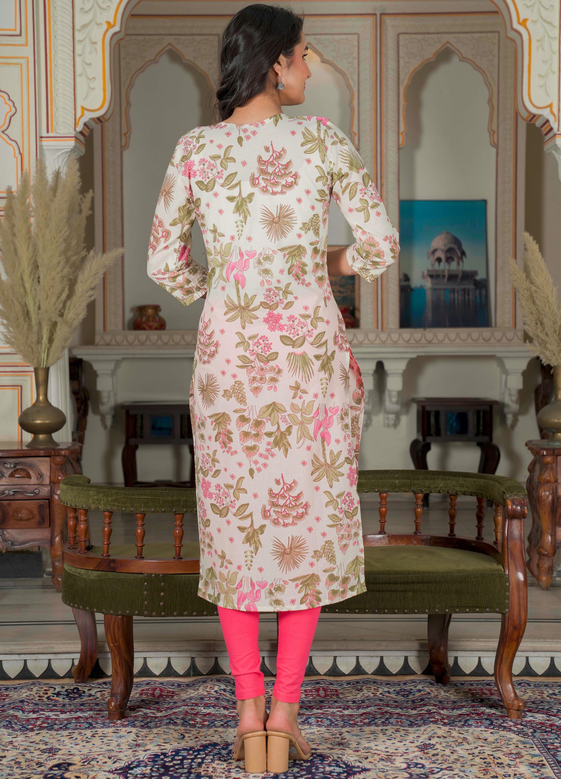 Introducing our super comfy Pink Print Straight Cotton Kurta! Now you can make a statement without sacrificing comfort. Made with soft cotton fabric, this kurta features a fun and bold pink print that will surely turn heads. Express your unique style with this must-have piece!