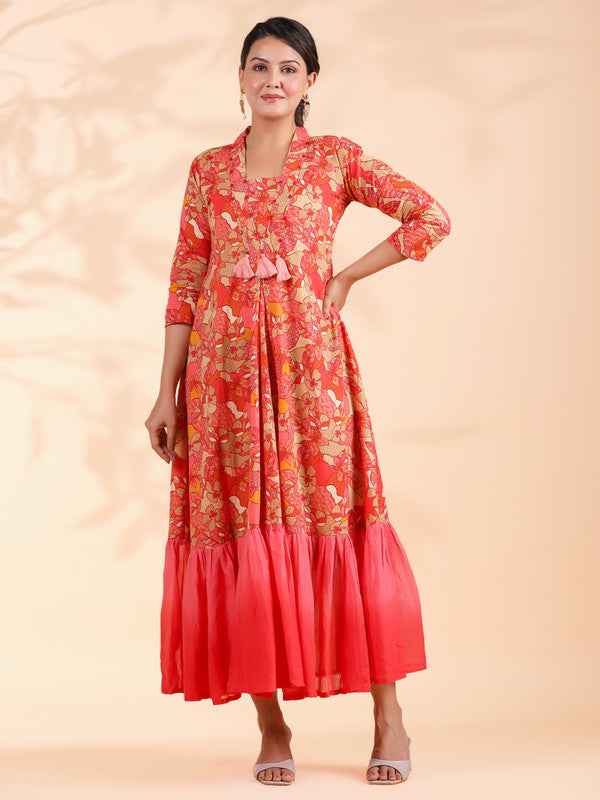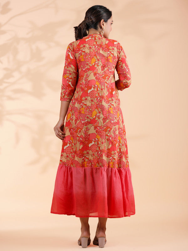 Pink Tie And Dye Work Flared Cotton Dress