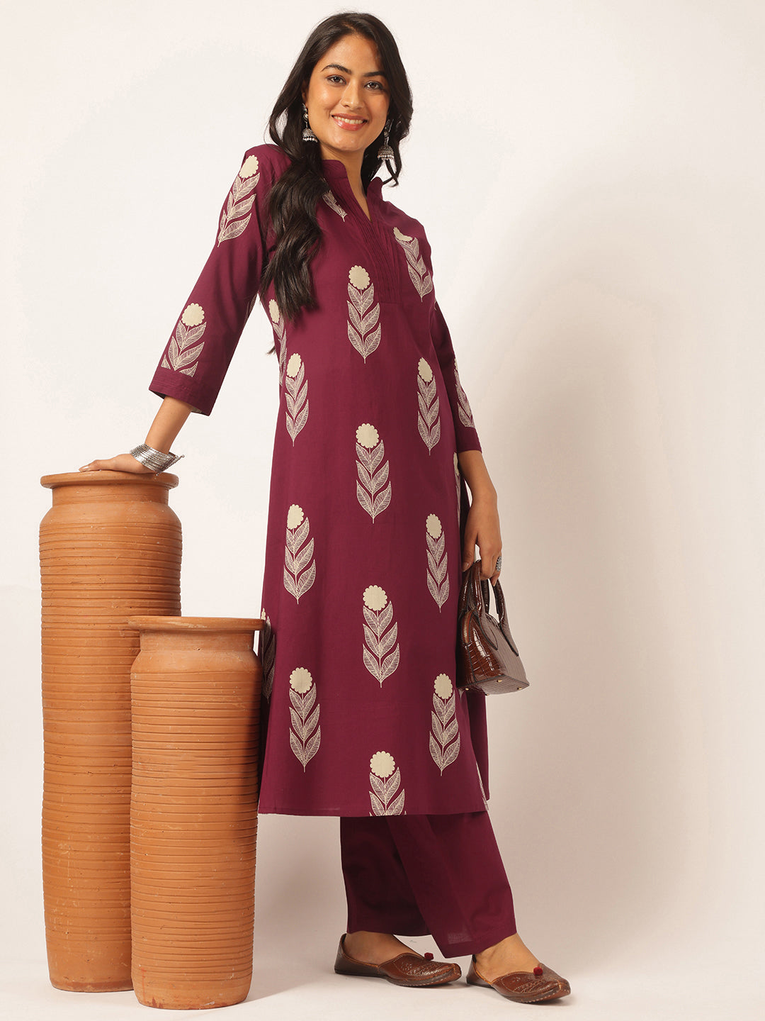 This oh-so-pretty Purple Cotton Floral Printed A-Line Kurta Set is a must-have in your wardrobe. Made from high-quality cotton, it showcases a beautiful floral print that is perfect for any occasion. The A-line cut flatters the figure, while the soft and breathable fabric ensures comfort all day long. Don't miss out on this versatile and stylish set!