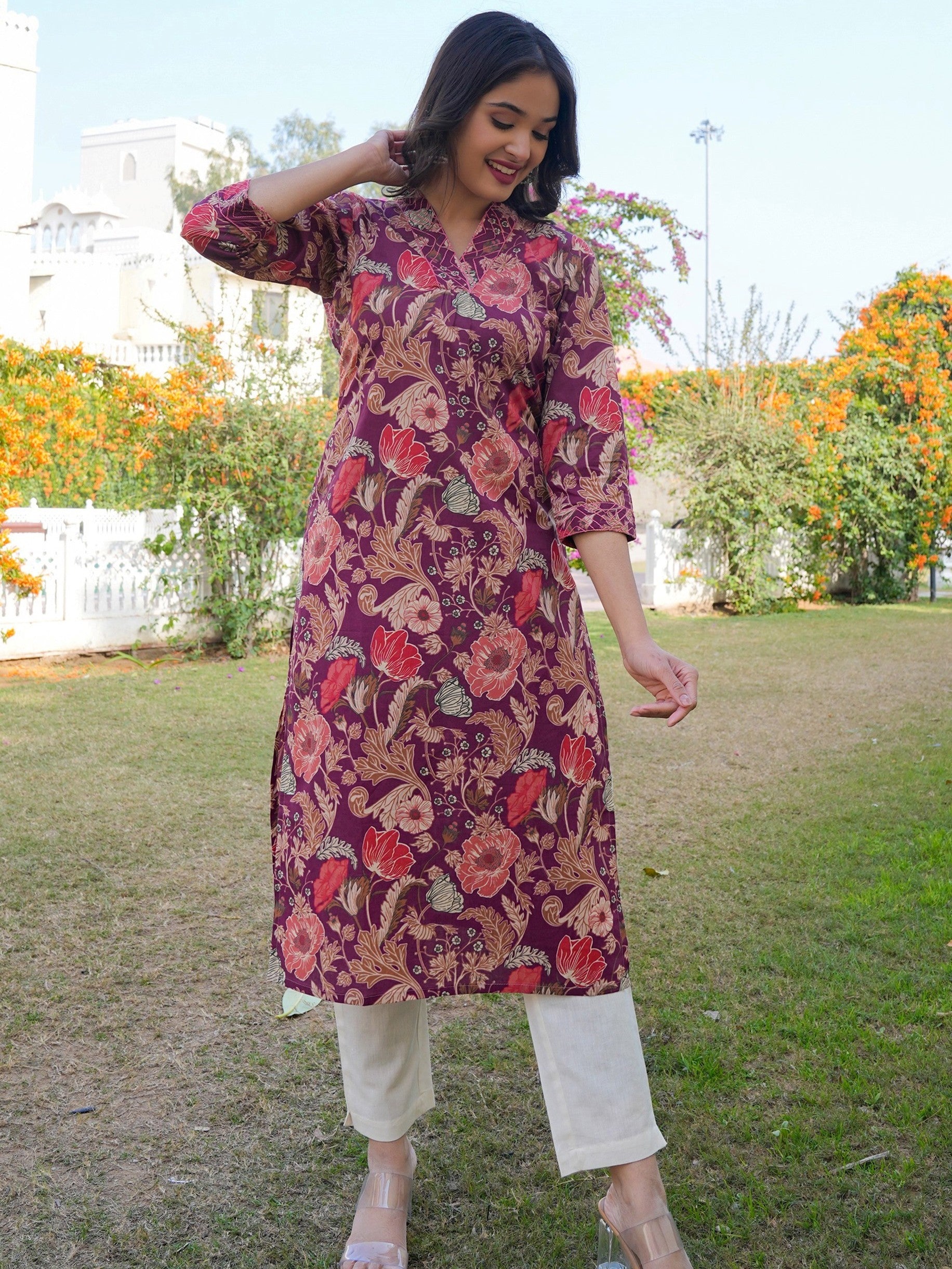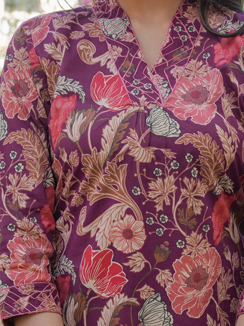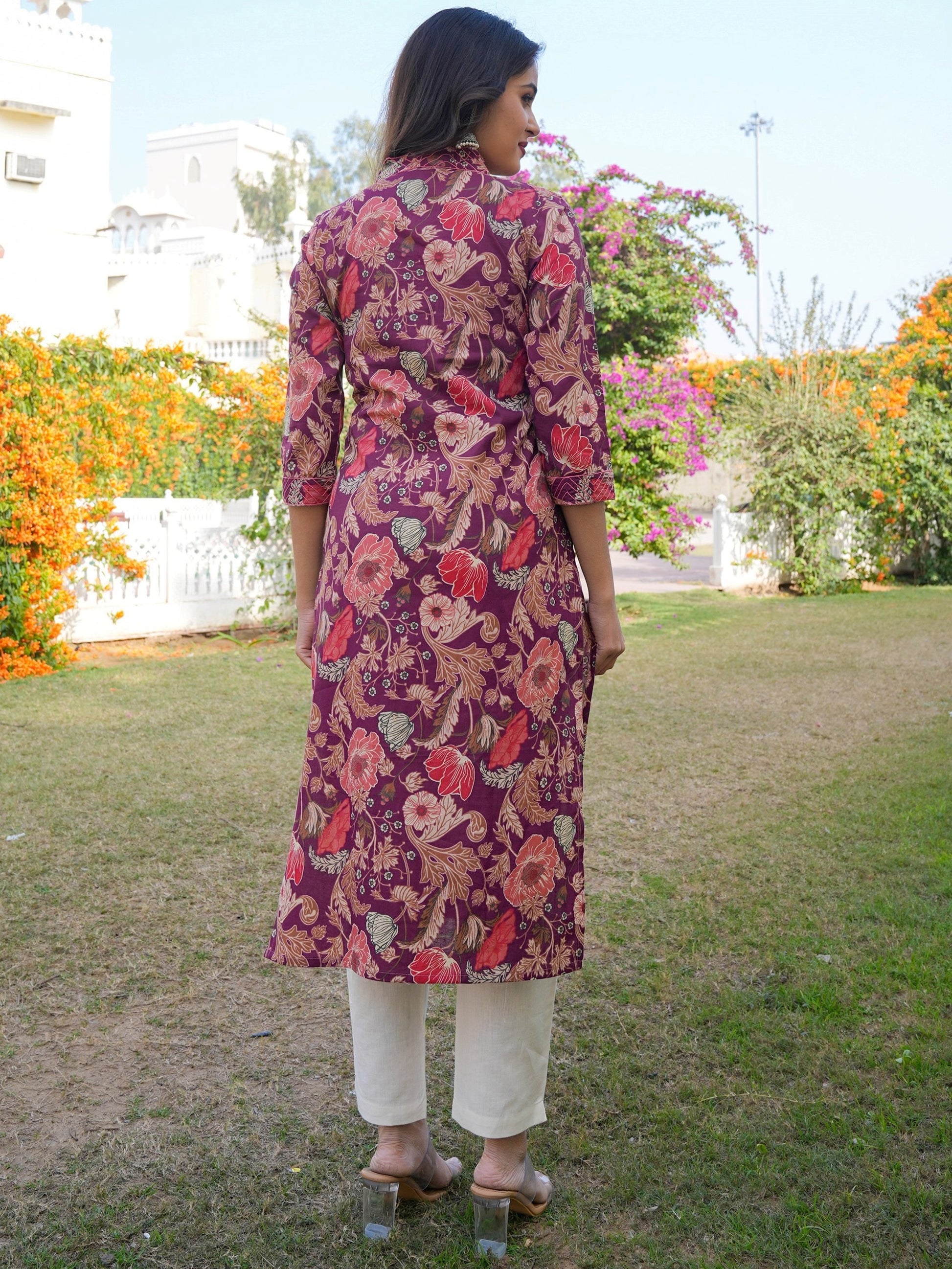 Add a pop of color to your wardrobe with this Purple Floral Print Cotton Kurta! Made from soft, breathable cotton, this kurta features a vibrant floral print that will surely make a statement. Perfect for any casual or dressy occasion, this kurta is both stylish and comfortable.
