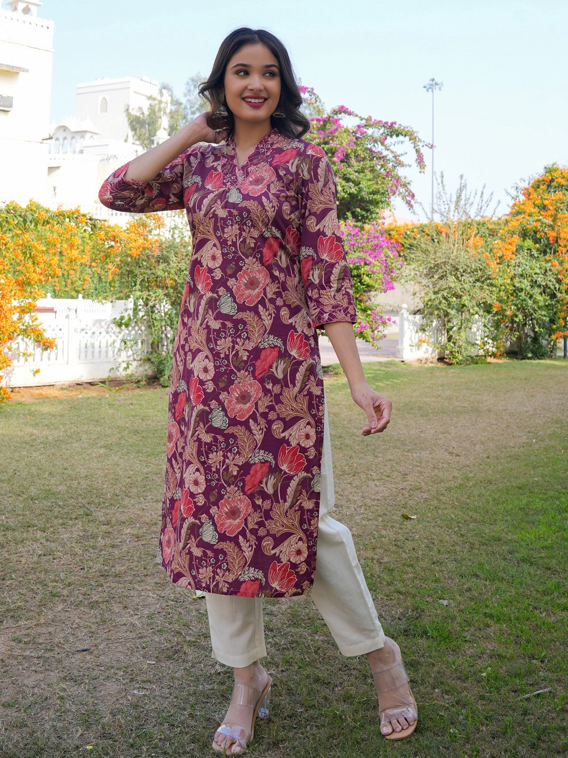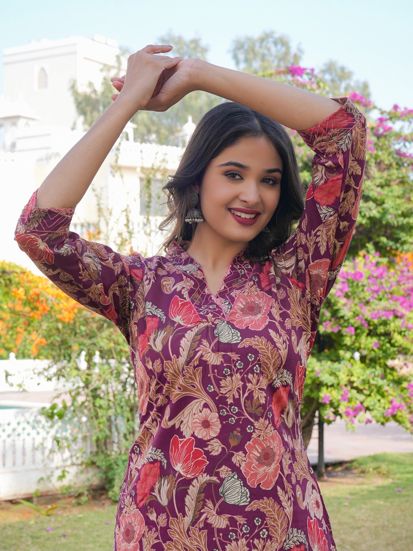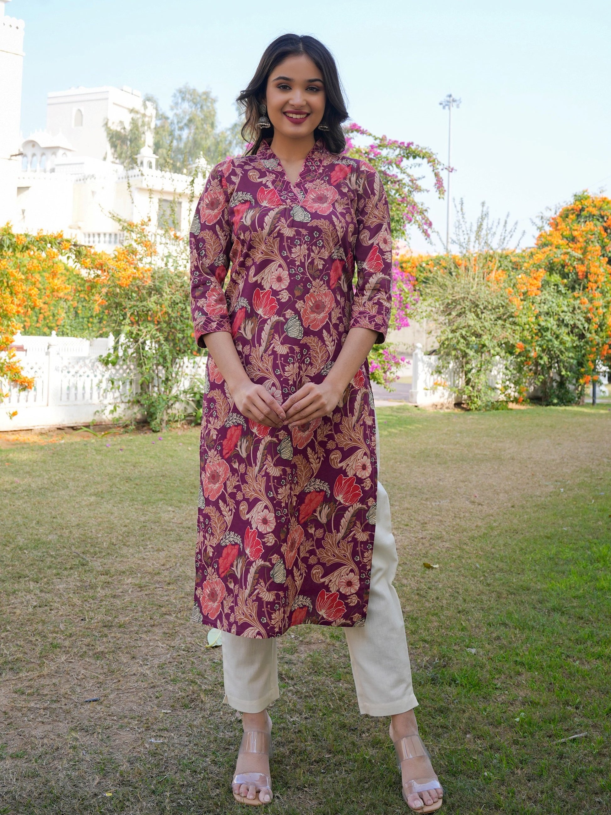 Add a pop of color to your wardrobe with this Purple Floral Print Cotton Kurta! Made from soft, breathable cotton, this kurta features a vibrant floral print that will surely make a statement. Perfect for any casual or dressy occasion, this kurta is both stylish and comfortable.