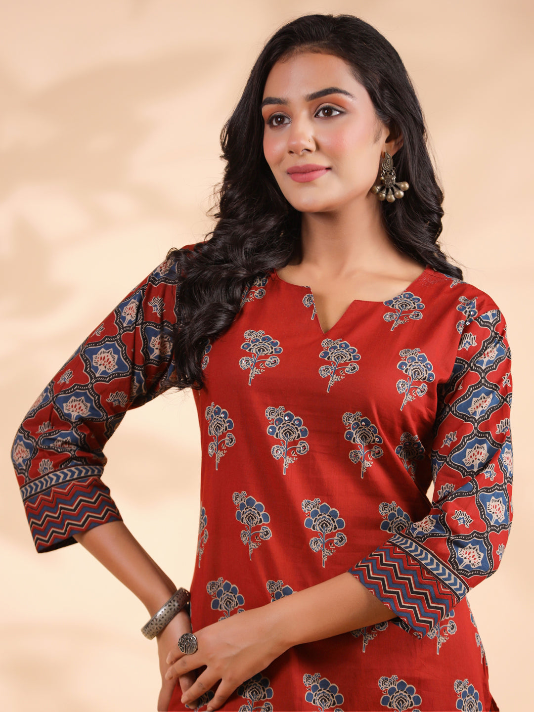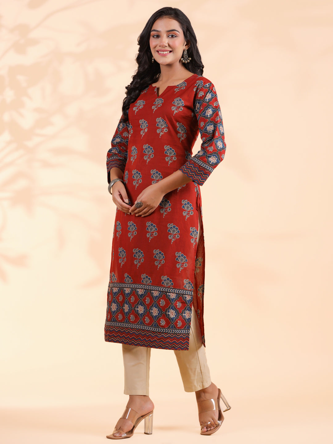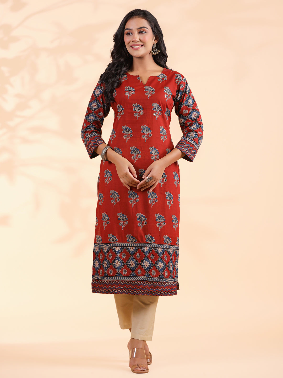 Style blooms with this Red Floral Print Straight Cotton Stitched Kurta! Made from soft, breathable cotton, this kurta is adorned with a vibrant floral print. It's perfect for a casual day out or a fun night out. Add a pop of color and personality to your wardrobe with this must-have piece.