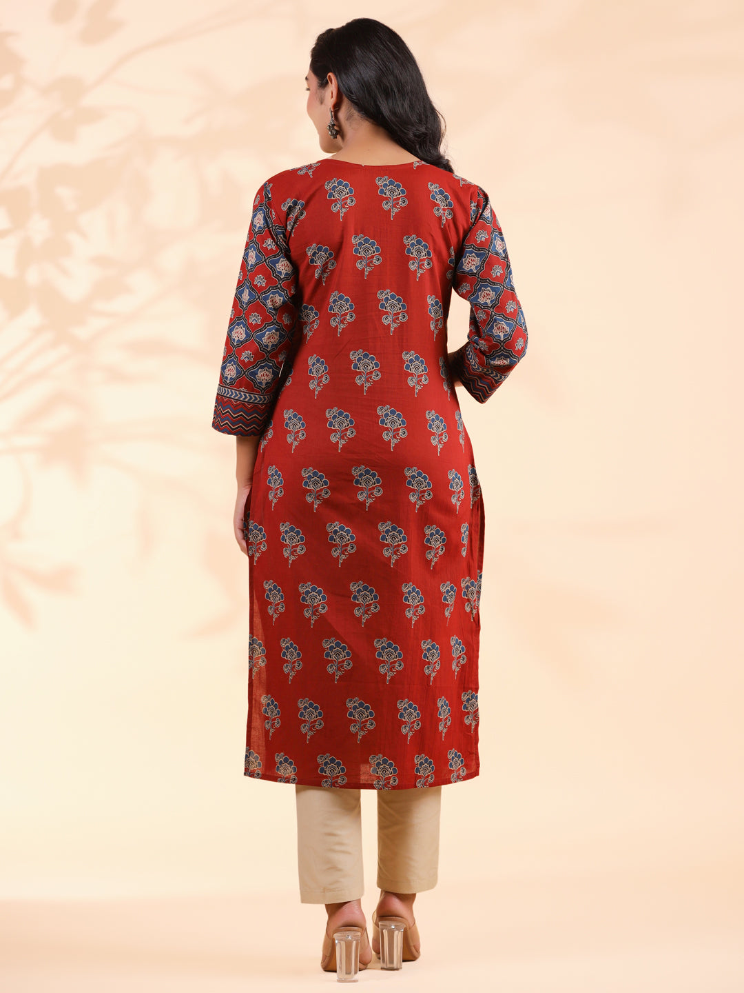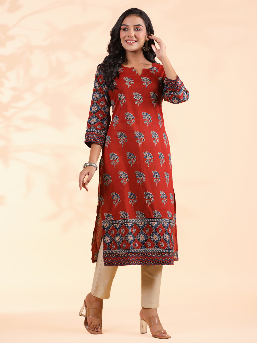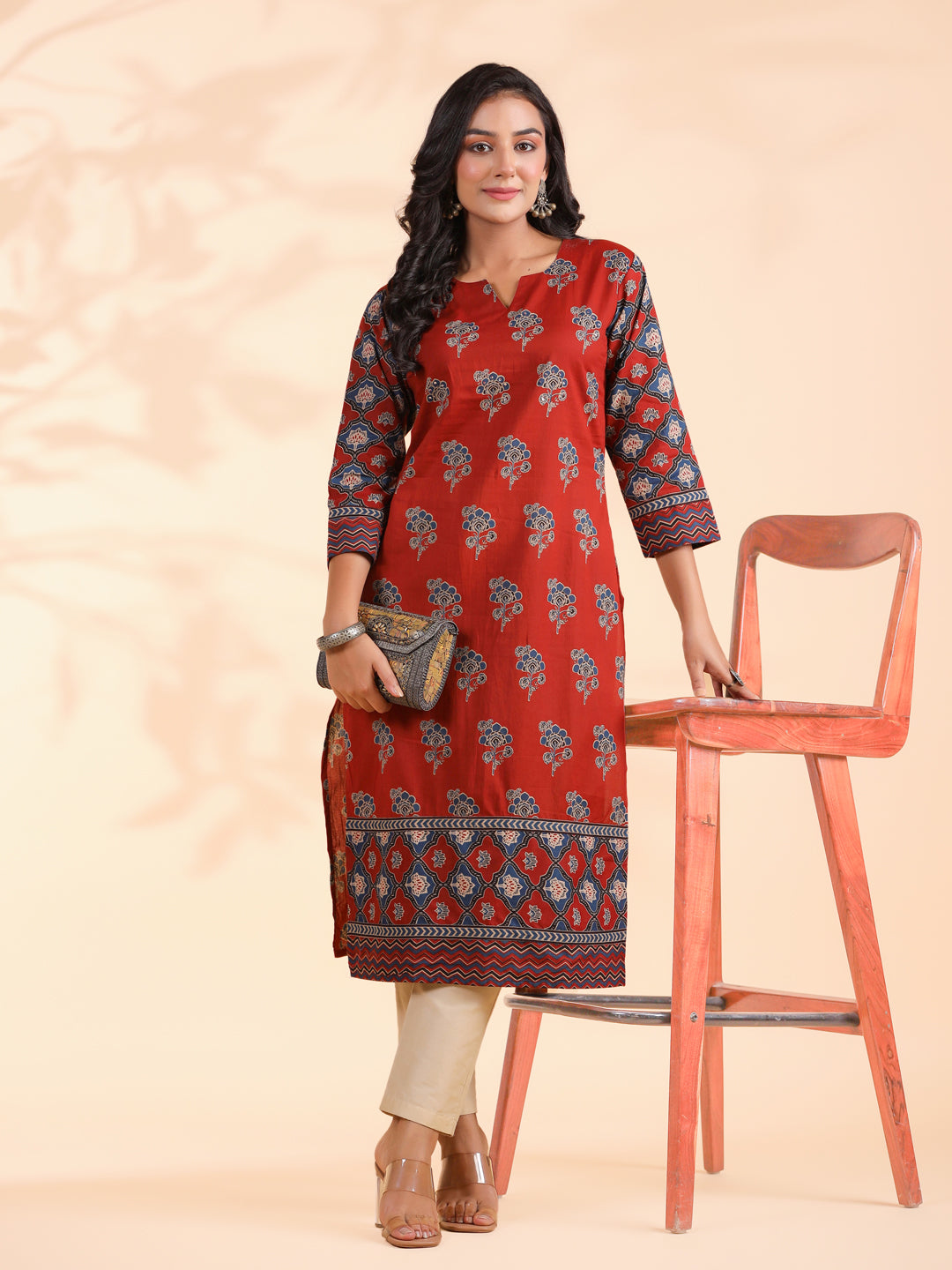 Style blooms with this Red Floral Print Straight Cotton Stitched Kurta! Made from soft, breathable cotton, this kurta is adorned with a vibrant floral print. It's perfect for a casual day out or a fun night out. Add a pop of color and personality to your wardrobe with this must-have piece.